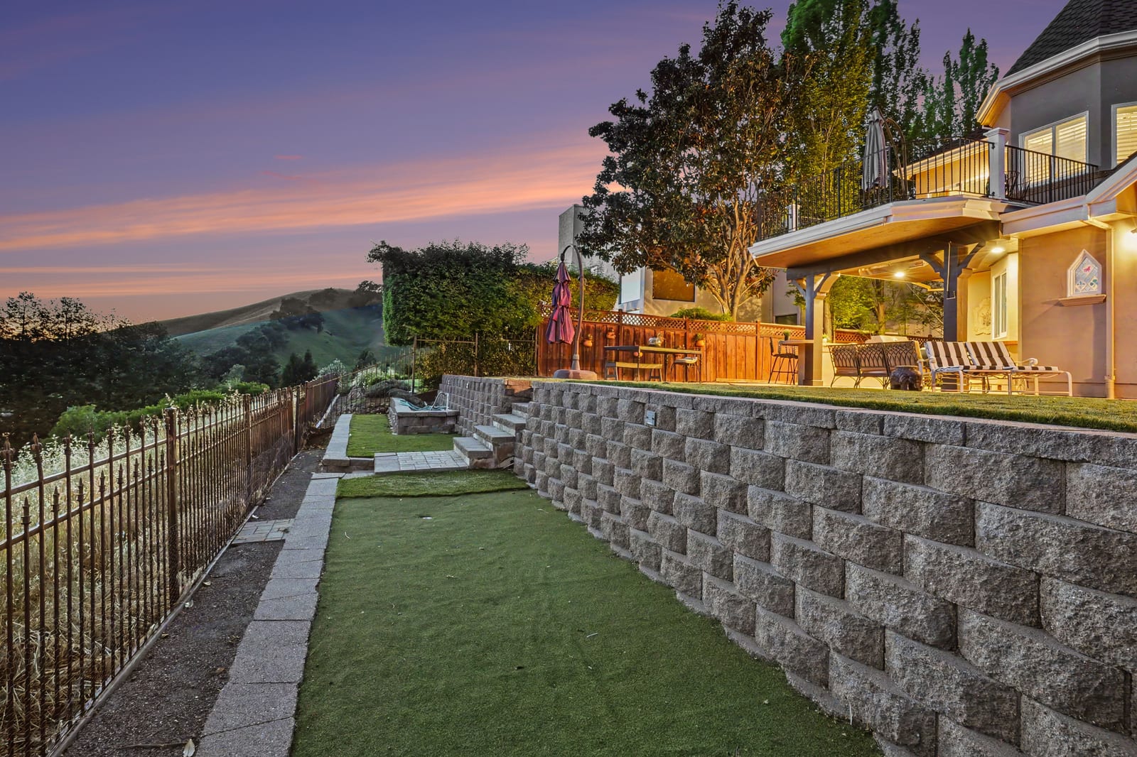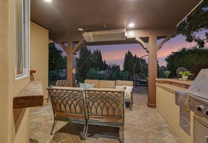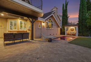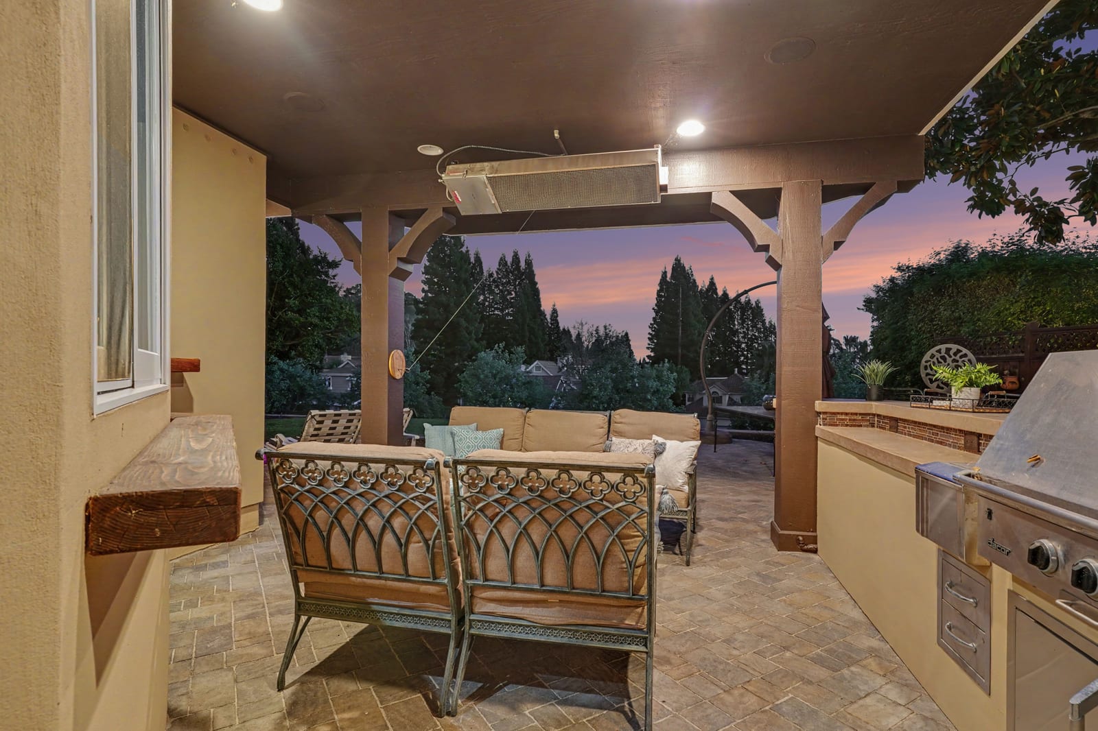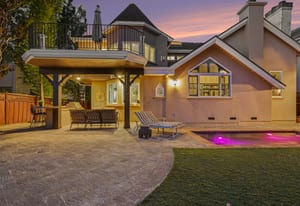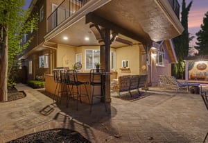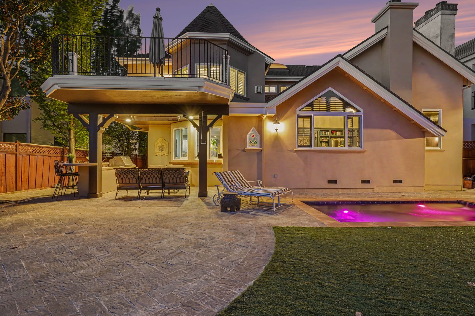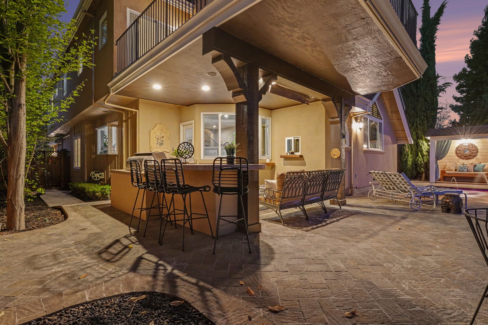 The home showcases hand-milled crown moldings, marble inlays, a remodeled kitchen, high-end finishes throughout, an Executive Office, and a stunning custom bar, all with hand-milled woodwork creating inviting spaces for both everyday living and memorable gatherings.