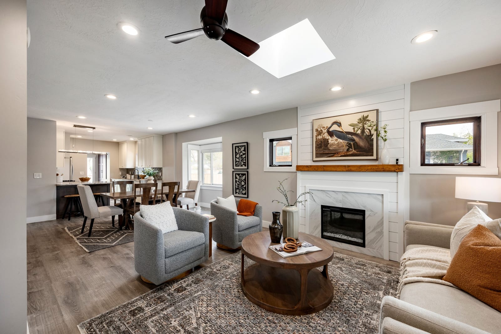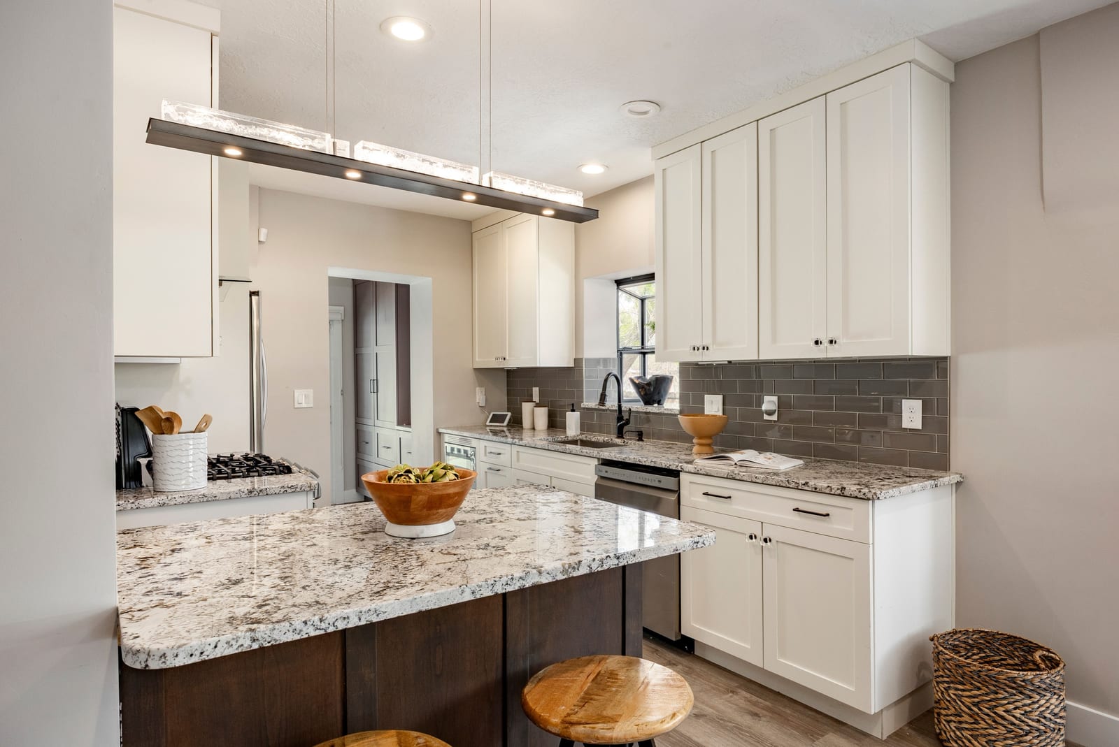 Set on a corner lot along the tree-lined streets of Salt Lake City's vibrant Sugar House neighborhood, this classic bungalow offers a noteworthy blend of historic charm, thoughtful updates and exceptional walkability. Ideally located just minutes from Sugar House Park, downtown Salt Lake City and the University of Utah, this property offers a welcoming residential setting and convenient access to the city's top amenities and offerings. Carefully renovated with an eye toward preserving its original character, this home seamlessly balances timeless architectural details with modern comforts. Natural light fills inviting living spaces; the front sitting and dining rooms flow effortlessly into an open concept gourmet kitchen designed for both everyday living and gathering with extended friends and family. The custom kitchen features shaker style cabinetry, abundant storage, granite countertops and bar seating for four. A gas cooktop and vented hood provide both functionality and style, while nearby built-ins and a dedicated laundry area add convenience to this home's thoughtful layout.