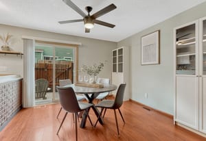 Welcome to your dream townhouse, perfectly situated just southwest of downtown Colorado Springs! A beautifully maintained 2-bedroom, 3-bathroom home blends comfort, style, & functionality—filled w/natural light that creates an inviting atmosphere whether you're unwinding or entertaining. An open main level featuring sleek luxury vinyl plank flooring that flows effortlessly through the living, dining, & kitchen spaces. The living room is warm and welcoming, highlighted by a charming bay window that fills the space with sunshine. The kitchen shines w/stainless steel appliances, a modern full backsplash, & convenient breakfast bar that opens to the dining area. From there, step out to your private patio—perfect for sipping morning coffee or hosting relaxed evening gatherings. At the heart of the home, vaulted ceilings & a skylight elevate the space, offering endless possibilities for a home office, fitness area, or creative retreat. Upstairs, you’ll find 2 generously sized bedrooms, each w/private bathroom. The primary suite is a true escape, featuring beautiful mountain views & walk-in closet. Upper-level laundry area adds everyday convenience. Ideally located w/in blocks from school, park, shopping, dining, & Fort Carson, this home offers the perfect balance of tranquility & accessibility. Whether you're looking for a place to call home or a smart investment opportunity, this townhouse delivers.