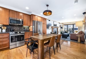 Top-floor with expansive ski-slope views, this Sandstone townhouse-style 2BR/1.5BA checks every box -- and then some, with effortless access to Vail Village, Lionshead, and world-class skiing. Wood floors throughout, an open-concept kitchen with Bosch stainless steel appliances, a gas fireplace with custom Arigoni mantle, and a private deck made for après. Southern exposure floods the interior with light, making this the kind of place that feels just as good on a powder day as it does on a lazy summer evening. The upper bedroom wakes up to Vail Mountain views. So does the living room.The second bedroom is generously sized -- equally as a guest suite or a work-from-home setup. Large closets and ample storage handle the gear. Dedicated parking handles the rest.Weekend escape, full-time mountain base, or short-term rental play: this home is ready for whatever you need it to be.
