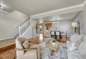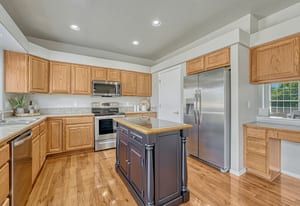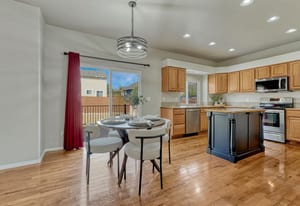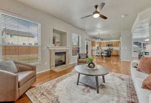 This move in ready home reflects thoughtful upgrades throughout. With five bedrooms, three and a half bathrooms, and a two car garage, the location offers convenient access to parks, schools, shopping, and both Peterson and Schriever Space Force Bases. Natural light fills the main level, highlighting hardwood floors, fresh interior paint, and updated fixtures with no carpet on the main. The kitchen features a newly added island, stainless steel appliances installed in 2023, and cabinetry that flows into the dining and living areas, creating a layout that works well for everyday living and gatherings. Upstairs offers newer carpet, three spacious bedrooms, and a private primary suite designed for comfort. The basement offers a large, ready for anything recreation space with a large bedroom and full bathroom. Outdoor living extends to a Trex deck added in 2024, overlooking a fenced yard with refreshed landscaping. A Class IV shingle roof installed in 2023 adds lasting durability.