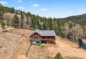 Tucked away in the heart of Colorado’s natural beauty, this 3 bedroom home offers the perfect blend of peaceful seclusion and breathtaking scenery. Set on an expansive 35 acre property, this charming cabin captures sweeping, unobstructed mountain views that stretch for miles—providing a stunning backdrop in every season. The land is ideal for those seeking space and freedom, with plenty of room for horses, livestock, and outdoor pursuits. Whether you envision a small hobby ranch or simply want room to roam, this property delivers the flexibility and privacy you’ve been looking for. The land isnt the only show stopper here- the home itself embraces warm, rustic charm with inviting cabin vibes—creating a cozy, welcoming atmosphere that perfectly complements the surrounding landscape. The main level boasts 2 bedrooms, fully equipped kitchen/dining area, a wide open living room with wood burning stove and floor to ceiling windows in addition to the most beautiful back deck views. Need more? Check out the walkout basement hobby space-perfect for all your outdoor gear and comes complete with a 3rd bedroom/bathroom combo. Outside, you’ll find the perfect yard for your chickens and garden, beautiful aspen covered trails and a spacious second detached garage/workshop. If you’ve been dreaming of mountain living with wide-open spaces, fresh air, and endless views WITH proximity to work, school and social life- this Divide property is a rare opportunity to make it a reality.