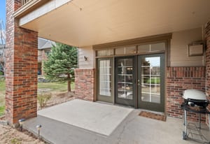 Out back, the covered patio provides a quiet place to unwind, whether you’re enjoying a morning cup of coffee or a calm evening overlooking the green.