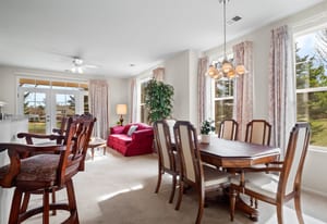 The dining area accommodates a variety of table sizes, while the family room offers a cozy fireplace and direct access to the covered patio - perfect for enjoying fresh air and watching the changing seasons over the course.