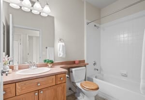 The primary suite is a relaxing retreat, featuring a spacious bedroom, a five-piece bath, large linen closet and a walk-in closet. Two additional bedrooms offer flexibility for guests, hobbies, or a home office, with a full bath nearby.