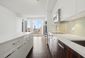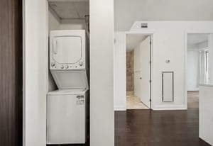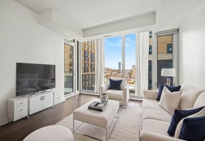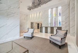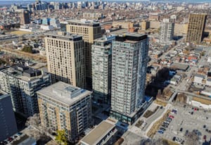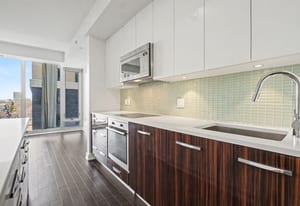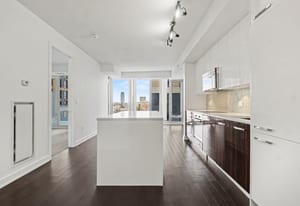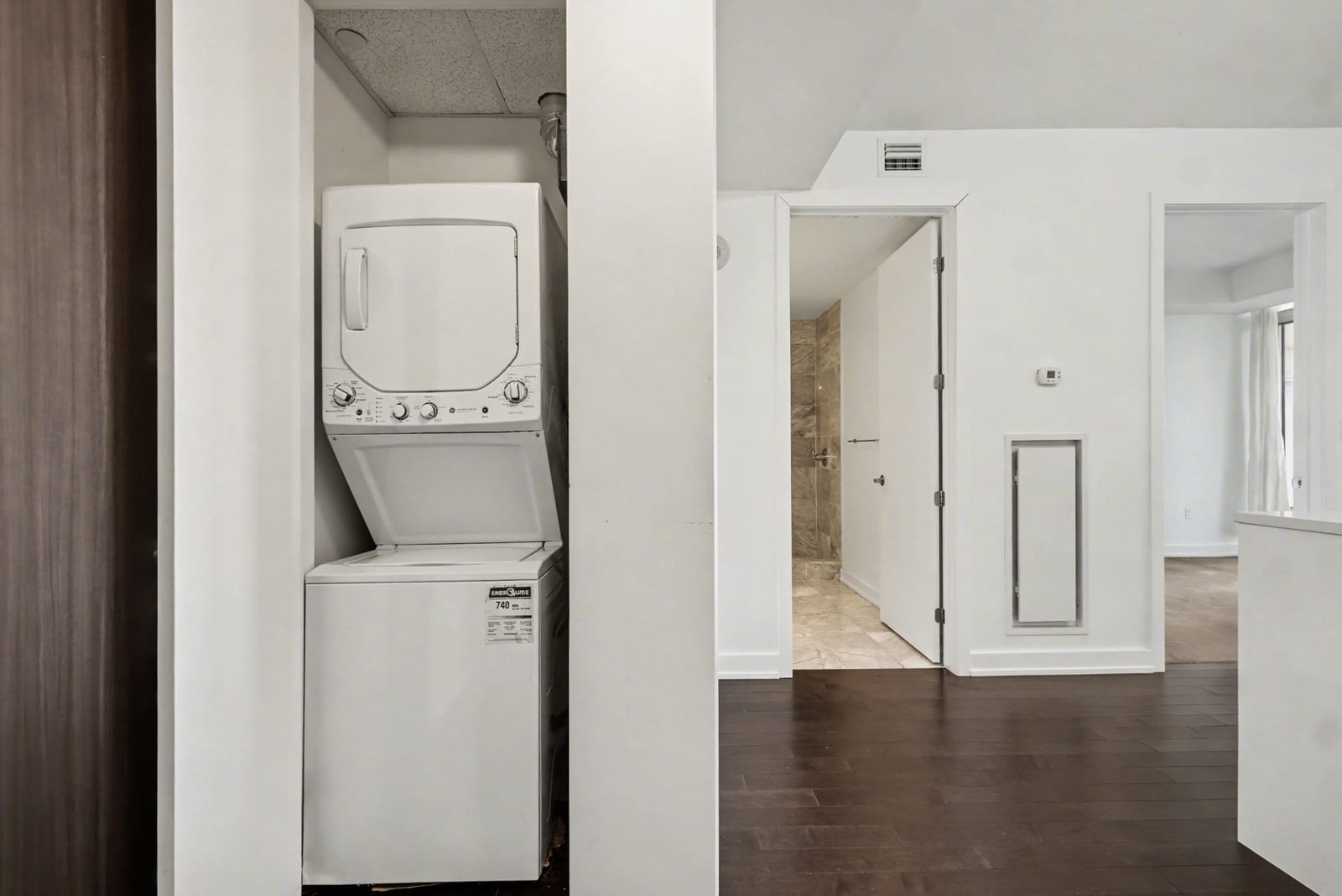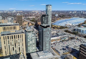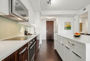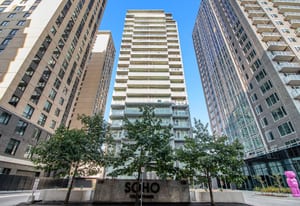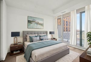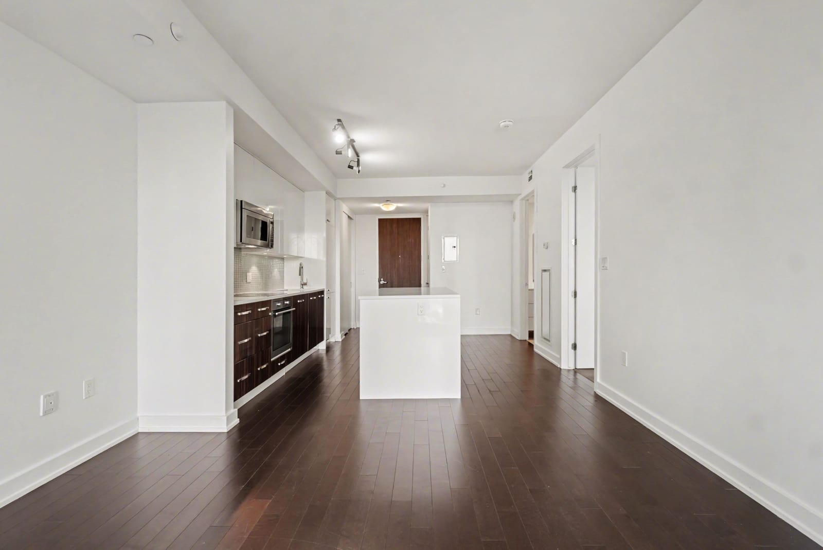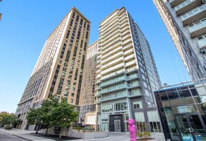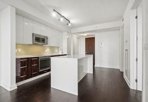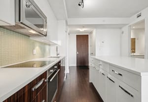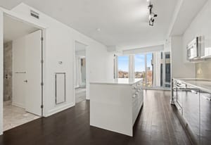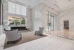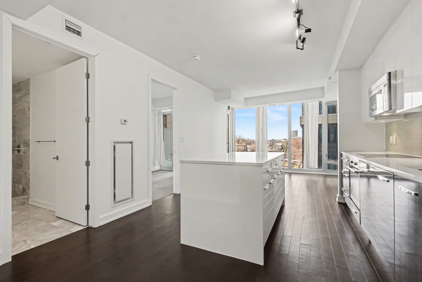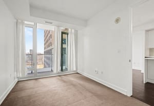Experience the height of urban sophistication at 111 Champagne Avenue South, Suite 404, where the renowned SOHO lifestyle meets the historic charm and vibrant energy of Little Italy. This sleek, freshly painted one-bedroom retreat offers a premier living experience defined by a seamless open-concept layout, floor-to-ceiling windows, and rich engineered hardwood flooring. At the heart of the home is a chef-inspired kitchen that balances form and function, finished with premium quartz countertops, high-end cabinet-matched appliances, and a versatile three-stool breakfast bar perfect for casual dining or entertaining. The transition to the private quarters reveals a spacious, quiet haven featuring plush carpeting, complemented by a sophisticated three-piece bathroom that boasts a luxurious walk-in tile shower and a custom quartz vanity.