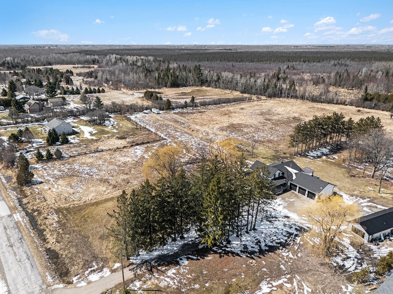 Exceptional hobby farm located just a 5 minute drive to beautiful Perth. Enjoy the serene landscape of this property with mature trees & greenery. The property encompasses 9 acres with 6 acres converted into 3 fenced paddocks. Perfect for raising horses or other animals. The barn is fully equipped with hydro, running water, 4 generous sized stalls a tack room, 3 pc washroom & a common room. Now lets move onto the gorgeous farm house that has gone through an amazing transformation in 2021. The covered front porch wraps around to the side of the house & the main entrance. As you enter the foyer there is a large walk-in closet providing plenty or storage for out door wear. Then you enter the stunning kitchen with center island & seating for 4. There is also a good sized pantry & bar fridge & propane stove for cooking . At the one end of the kitchen is the inviting dining room with plenty of space for family gatherings, you also have access to the front porch. Adjacent to the dining room is a well appointed home office that could also be used as a formal living room or another bedroom. At the other end of the kitchen is the stunning great room with tall cathedral ceilings & a cozy wood burning fireplace. Off the great room you have access to the powder room, laundry room, closet & the 3 car garage with in-floor heating. The great room opens out to the amazing back concrete patio & hot tub & over looks...