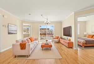 The exterior is equally impressive and designed for low-maintenance enjoyment, featuring a front deck with modern black ...