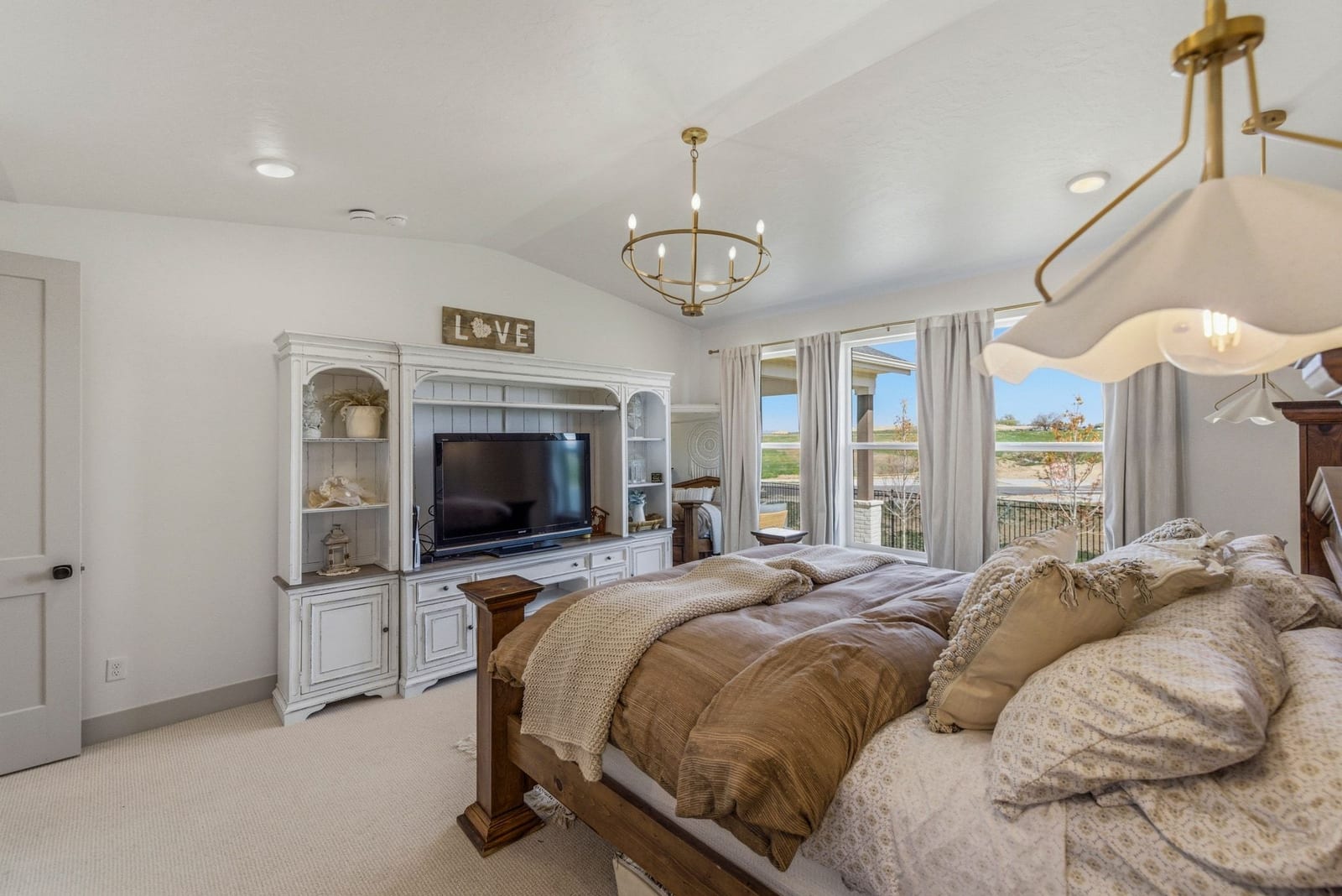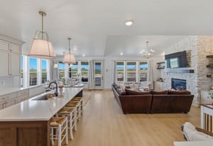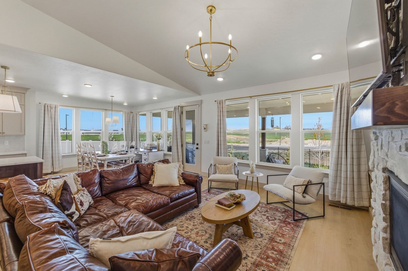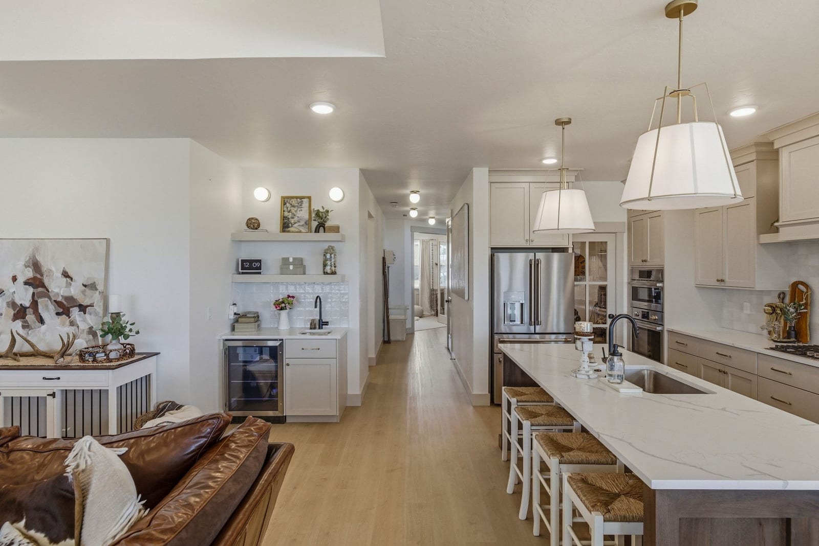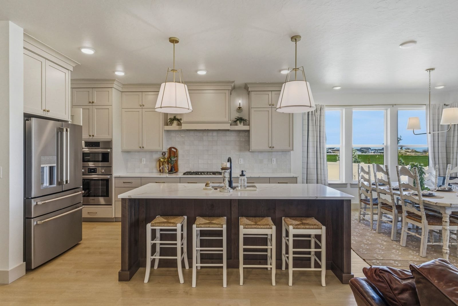 This is the kind of home that just lives well from the moment you walk in. Built by Integrity Homes as a semi-custom home, soaring ceilings and tall doors create an elevated feel, while natural light pours into the great room, drawing you toward a stunning stone fireplace framed by built-ins with soft accent lighting—it’s warm, inviting, and effortlessly elevated. The kitchen is both beautiful and functional, with natural tone cabinetry, quartz counters, double ovens, and a beverage station that makes mornings feel a little more curated. The main-level primary suite feels like a true retreat, with a vaulted ceiling, statement wall, and a walk-in closet that connects directly to the ...