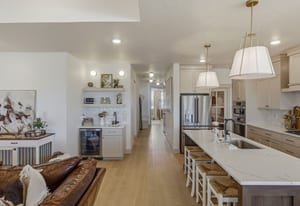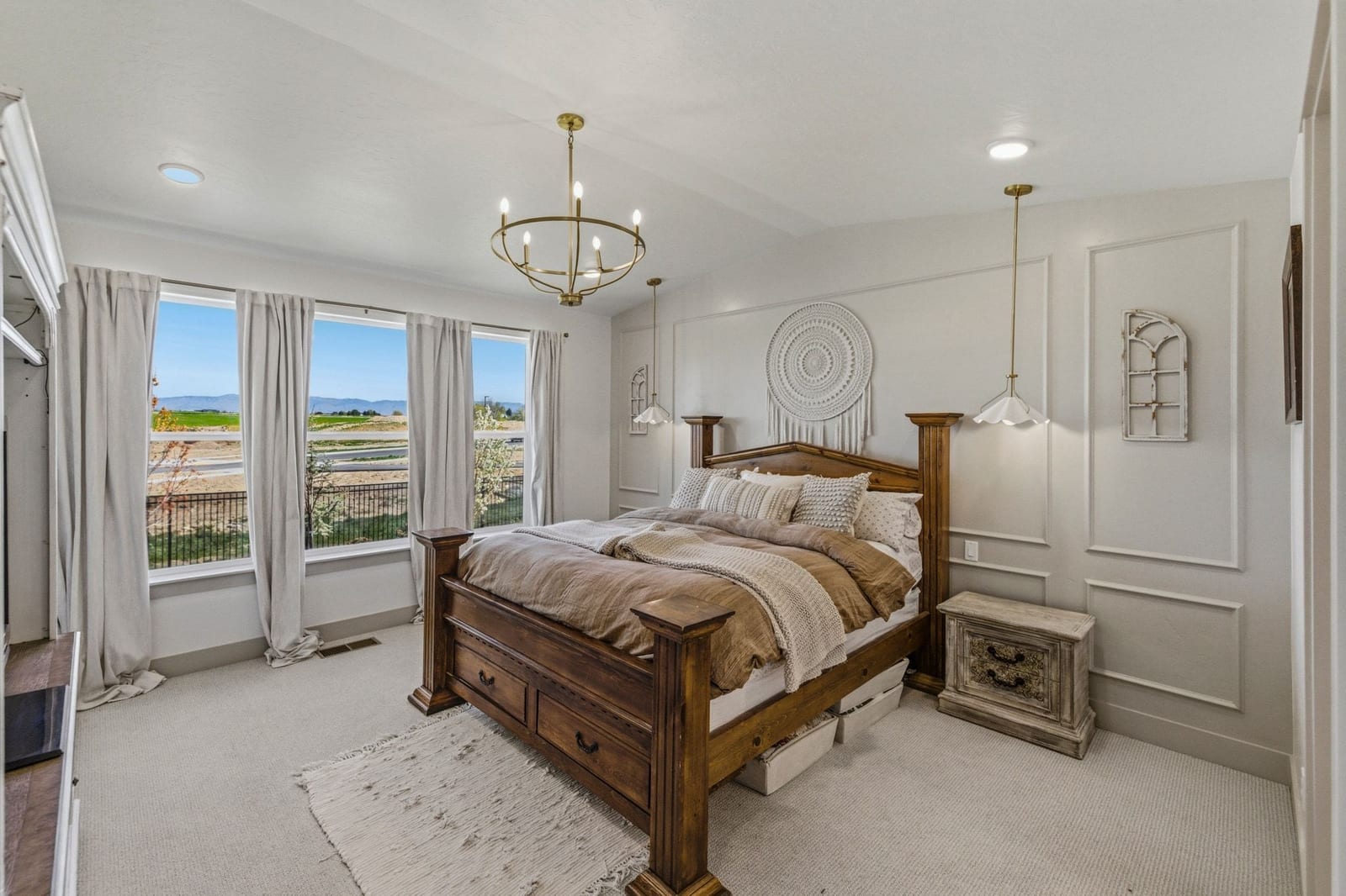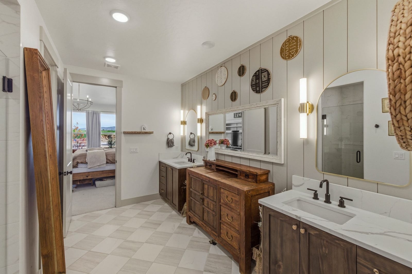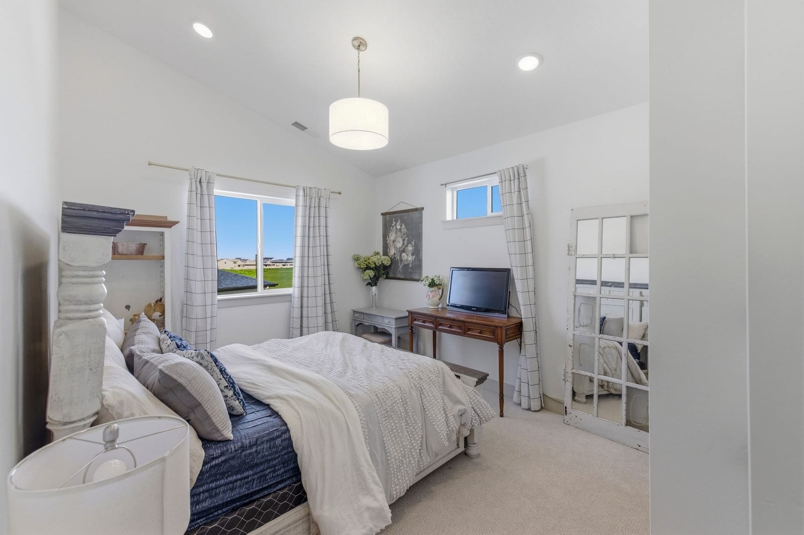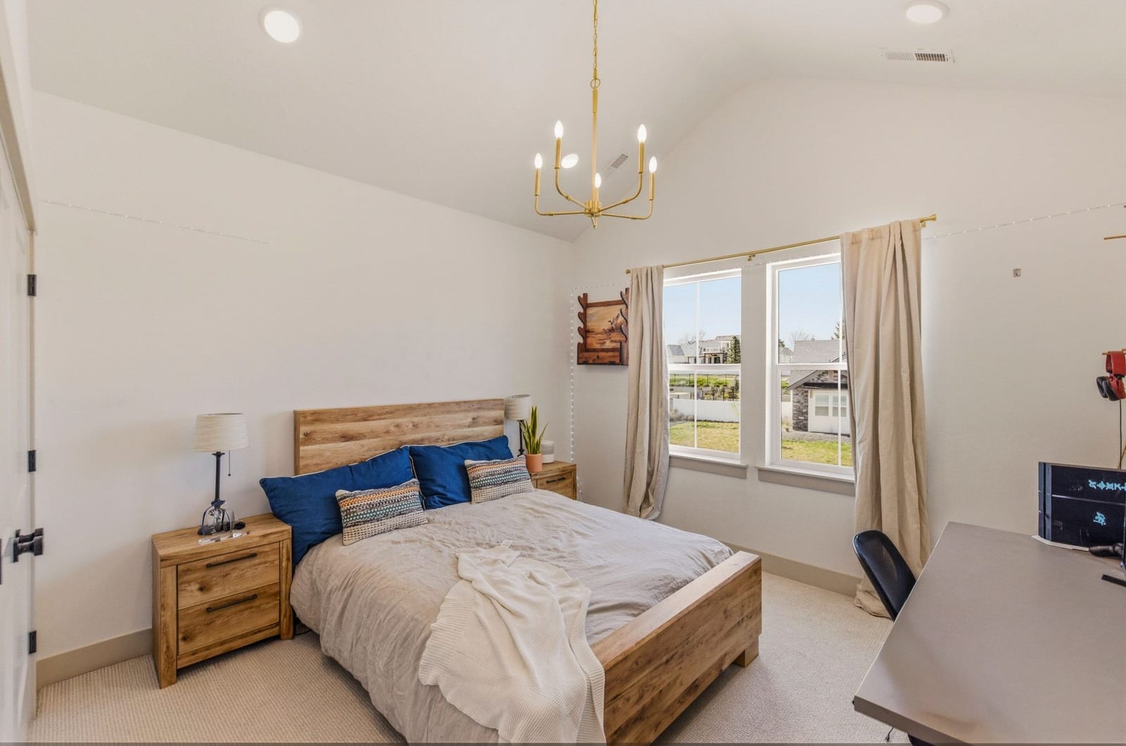 This is the kind of home that just lives well from the moment you walk in. Built by Integrity Homes as a semi-custom home, soaring ceilings and tall doors create an elevated feel, while natural light pours into the great room, drawing you toward a stunning stone fireplace framed by built-ins with soft accent lighting—it’s warm, inviting, and effortlessly elevated. The kitchen is both beautiful and functional, with natural tone cabinetry, quartz counters, double ovens, and a beverage station that makes mornings feel a little more curated. The main-level primary suite feels like a true retreat, with a vaulted ceiling, statement wall, and a walk-in closet that connects directly to the ...