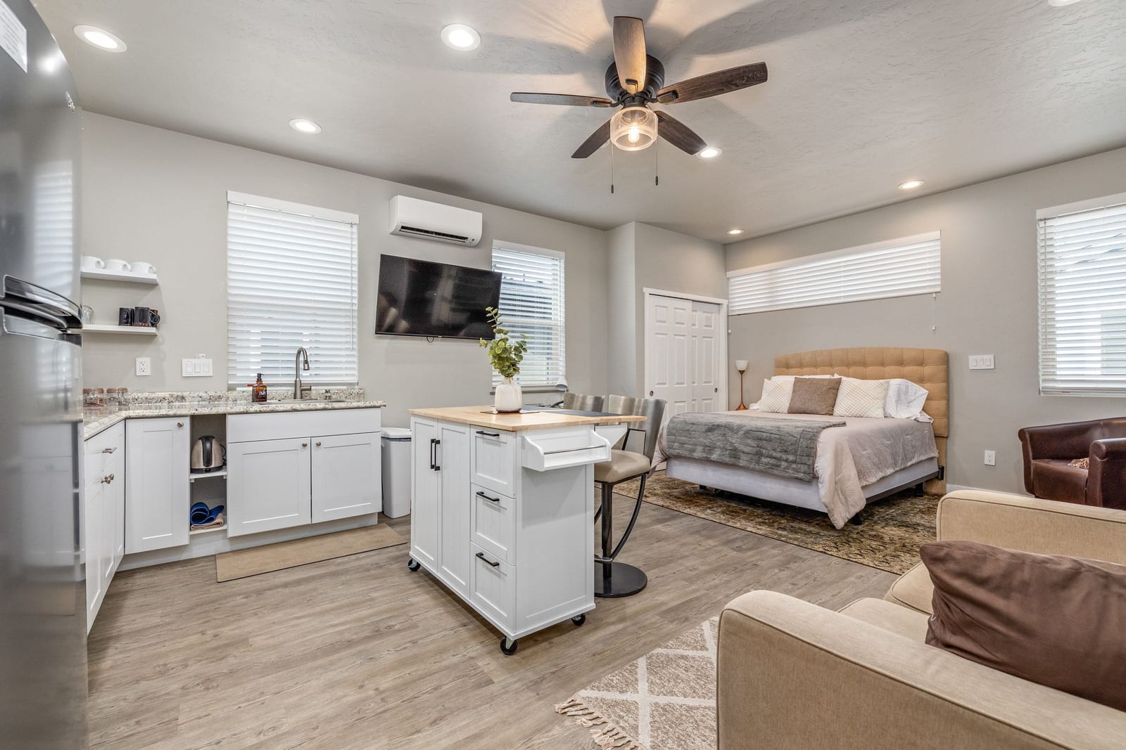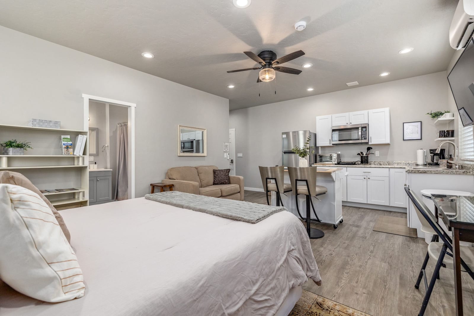 An Investors dream. This is a must see, unique property that offers three separate and unique spaces on one parcel. You’ll have a townhouse 3/2.5, a main level casita with a separate entrance/full bath/ductless mini split - as well as a garage loft flex space with kitchenette/full bath/washer/dryer/ductless mini split/separate entrance. This is the perfect set up for multi-generational living, house hacking or investment. Steps from the Boise Whitewater park, Boise river greenbelt and in the heart of the very hip Waterfront district with dozens of restaurants, wineries, breweries and coffee shops within walking distance. Strong rental history, prime location and no HOA makes this a rare ...