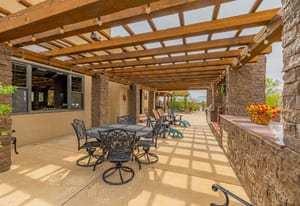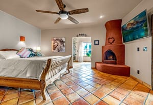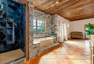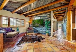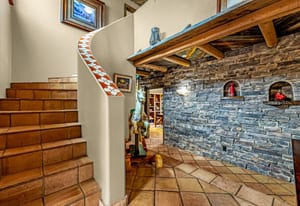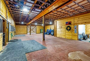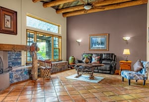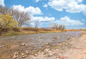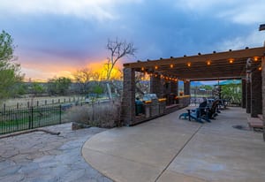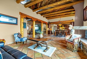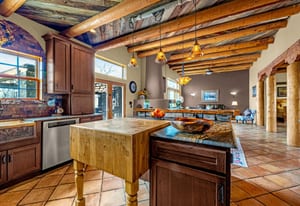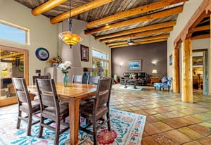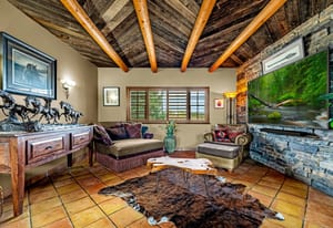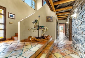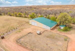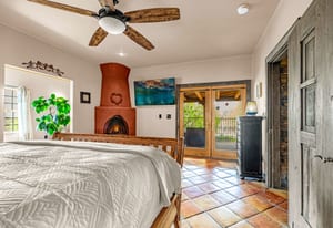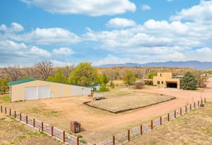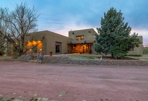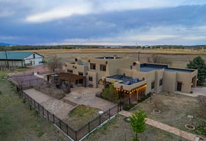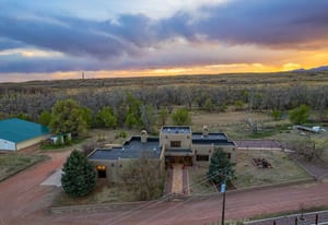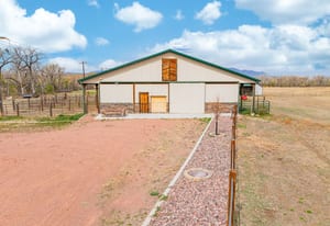 Rare creek side opportunity - 80 close-in acres with almost .75 of a mile of private year round Fountain Creek frontage with towering mature willow and cottonwood trees, wildlife trail corridors throughout the property, a 63x52 4 stall barn, a 90x60 shop and a gorgeous Santa Fe home. Amazing style with exposed wood beams throughout, vigas, antique doors throughout, in-floor radiant heat w/ newer boiler, hand forged gated entry, custom hard maple live edge counters and window seals, stone accent walls, Saltillo tile flooring, expansive high end architectural grade Pella windows. Fully remodeled gourmet kitchen w/ commercial Viking gas range and hood, Subzero refrigerator, antique integrated butcher block, bronze sink, high end cabinetry w/ soft close drawers, beautiful leathered granite counters, pantry, under cabinet lighting. Expansive great room open to the kitchen, Kiva fireplace w/ stone seating, towering ceilings, log beam supports. Main level primary suite w/ Kiva fireplace, walk-out to a large private covered courtyard, 5 piece bath w/ steam shower, jet tub w/ stone surround and a bidet. Phenomenal outdoor entertaining spaces w/ expansive stained patios w/ mature grape vine covered lighted pergolas, wood fireplace, outdoor kitchen, surrounded by lush landscaping, large lilacs, additional paver courtyard, large metal fenced backyard. Large 63x52 barn w/ 4 large stalls w/ runs (and room for additional stalls), rubber mats, metal dividers, tack room, large concrete alleyway, vet room, hay and tractor storage. Multiple fenced pastures w/ lush meadows, outdoor arena, round pen and scenic creek side trails throughout the property for riding. 90x60 insulated and heated workshop/RV garage w/ 16' walls, large vehicle storage area, walk-in cooler, separate workshop and finished room. This property is truly a wildlife haven w/ geese, turkey, fox, Whitetail deer, elk and a variety of birds. Amazing location w/ quick I-25 access and close to amenities.