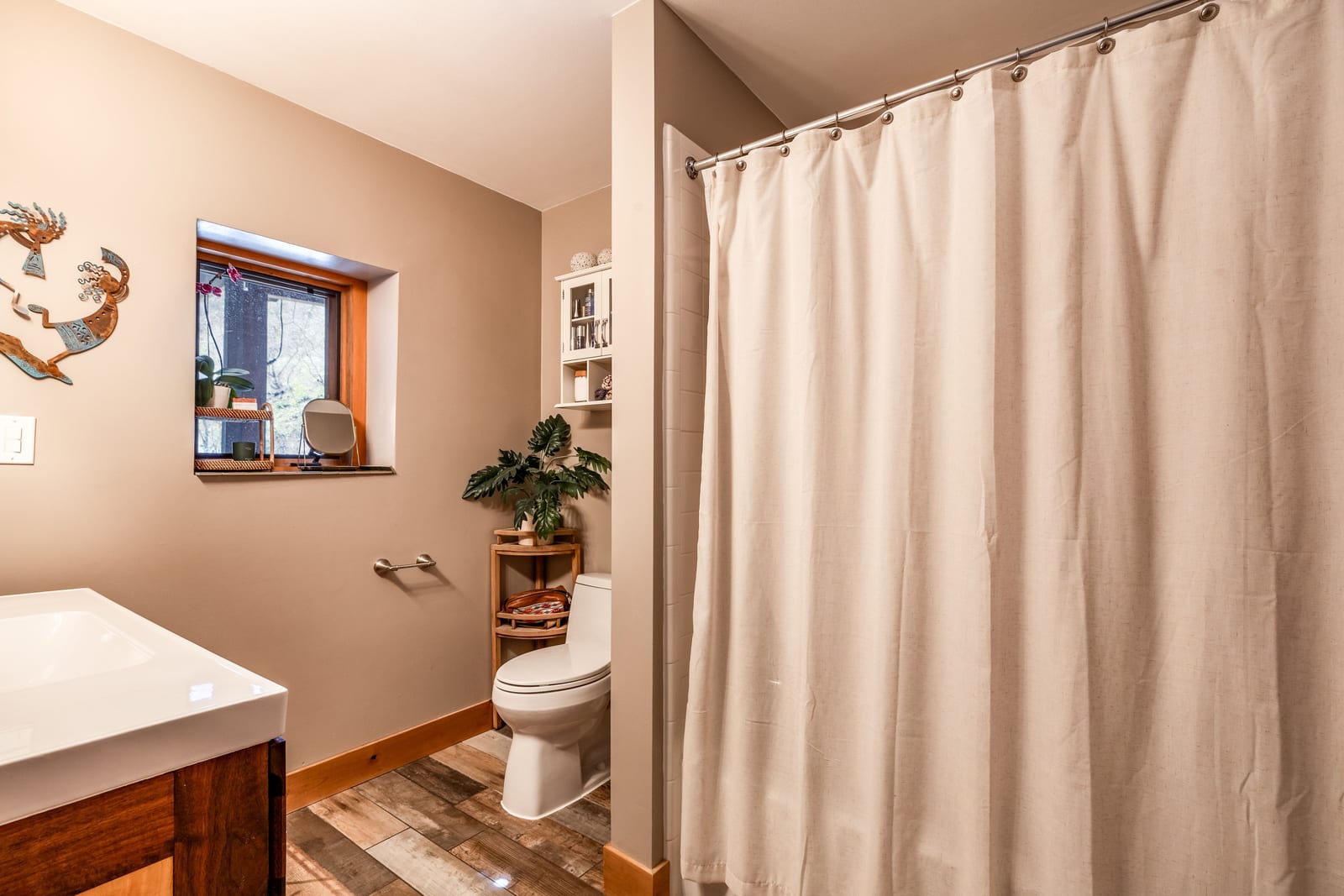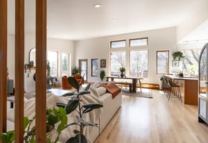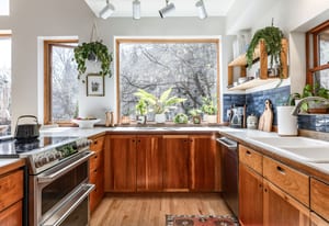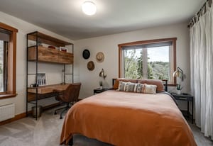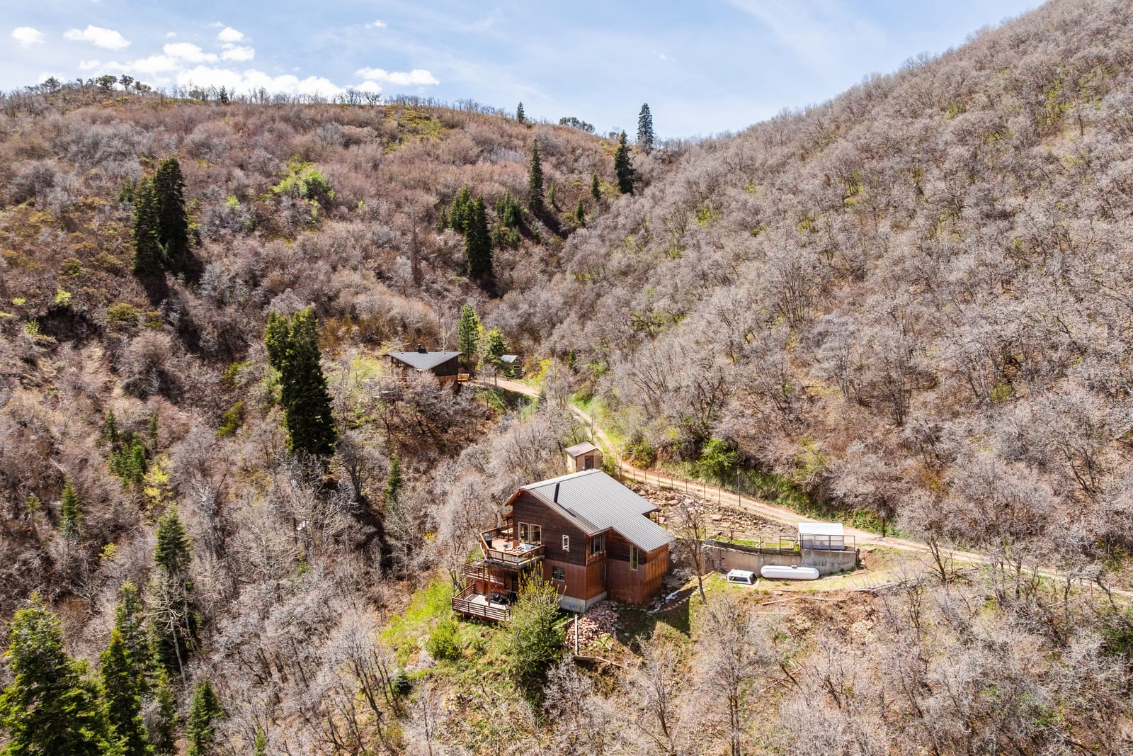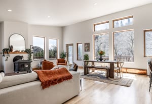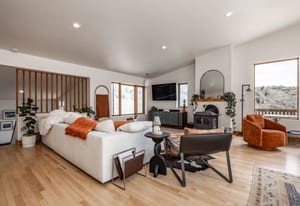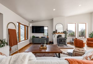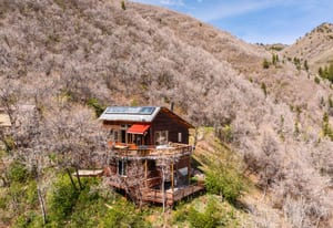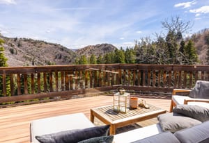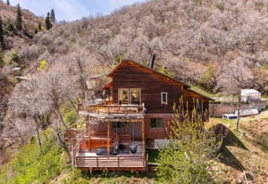 Tucked high along the alpine edge at the top of Pinecrest in Emigration Canyon, this bohemian “surf shack” cabin lives in the sun. Perched above it all, the home soaks in puddles of light throughout the day and opens to sweeping, bird’s-eye views of the canyon in every direction. Inside, the home has real wood floors, a wood burning stove, and lots of other woodsy details to adore. The windows are tall and the decks are wide: made for bare feet, long evenings, and the kind of quiet that settles in your lungs.