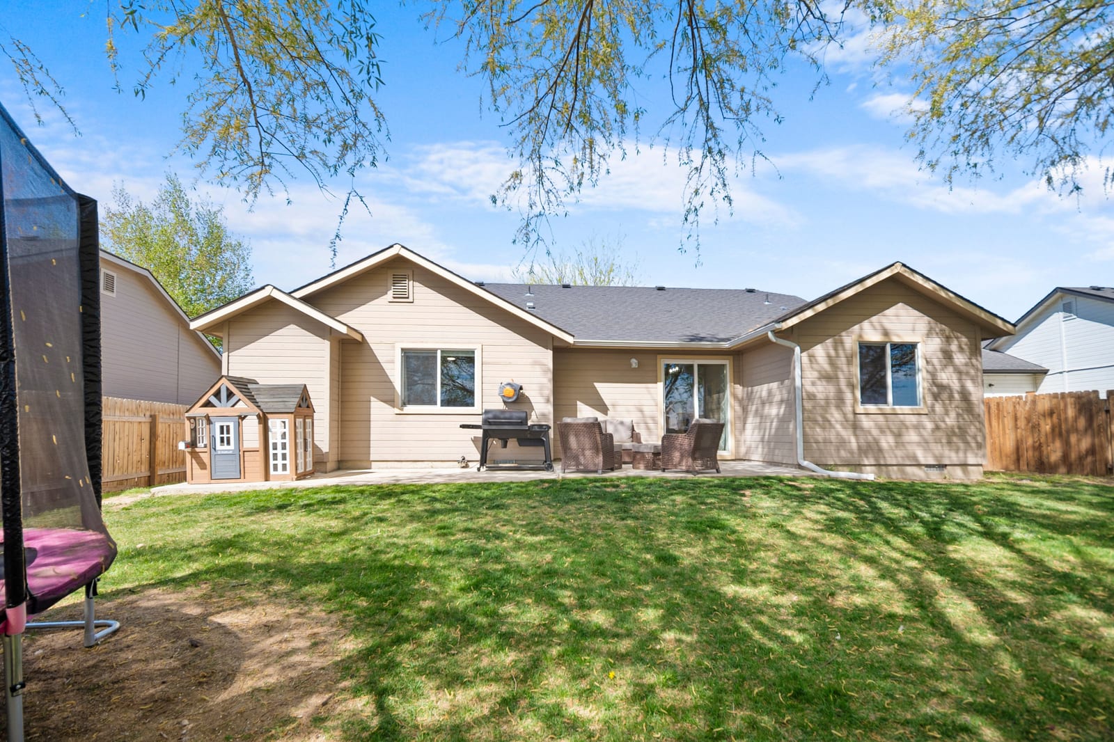 Tucked away in NW Meridian with no immediate backyard neighbors, this single-level home offers both privacy and flexibility. With 4 bedrooms, 2 bathrooms, and a spacious bonus room that can serve as an office, playroom, or 5th bedroom, the layout is designed to fit a variety of lifestyles. A split-bedroom floor plan enhances privacy, while natural light pours into the open great room and kitchen—perfect for gathering and entertaining. Just minutes from 10 Mile Crossing and the new District at Ten Mile, you’ll enjoy a vibrant mix of dining, shopping, and entertainment, plus quick freeway access for easy travel throughout the Boise Valley. This home and other Chesterfield Phase 1 homes ...