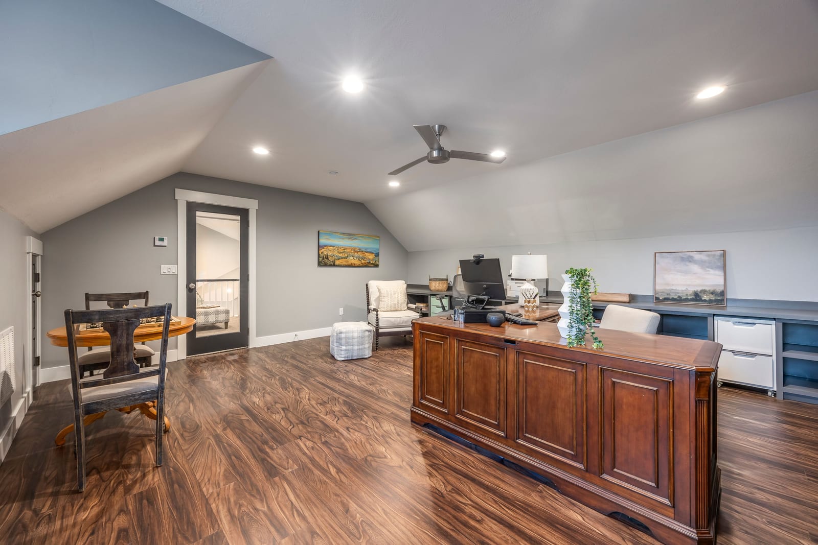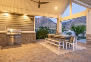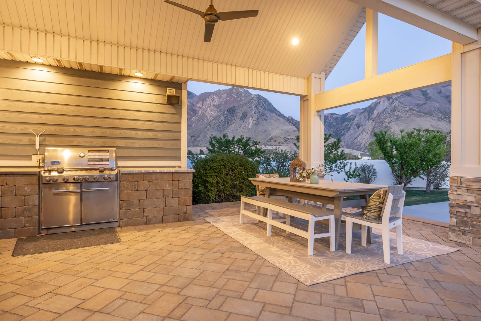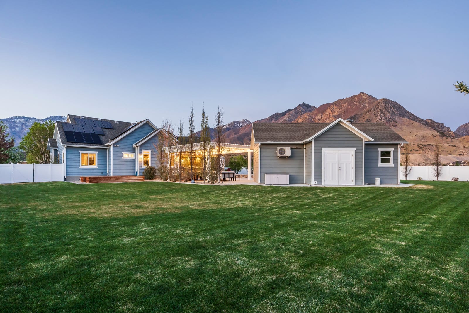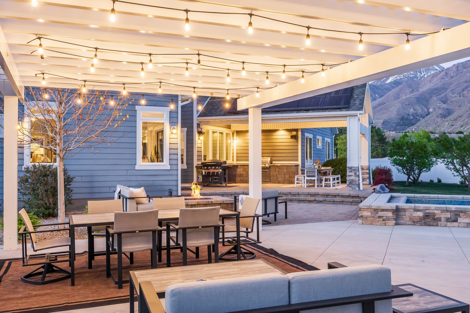 Beautiful custom Craftsman Rambler in the heart of Highland. Nestled in a quiet, desirable neighborhood with no HOA, this property features a spacious and thoughtfully designed floor plan with abundant natural light throughout. The main level boasts an open-concept living area, ideal for both everyday living and entertaining, along with a well-appointed kitchen featuring ample cabinetry, generous counter space, a buffet island and modern finishes. The primary suite provides a relaxing retreat with a private ensuite bathroom. Downstairs, you'll find additional bedrooms, bathroom, home theater and plenty of storage. The home also includes a fully separated basement apartment-ideal for rental income, guests, or multi-generational living. Step outside to your private backyard oasis featuring a chlorine sport pool complete with a basketball hoop and volleyball setup-perfect for summer fun and entertaining. Enjoy an in-ground hot tub, pergola, and fully equipped outdoor kitchen, creating the ultimate space for relaxing and hosting. A detached pool house enhances the experience with its own bathroom, shower, and a dedicated golf simulator room for year-round enjoyment. The yard is further complemented by mature fruit trees, including apple, peach, plum, and cherry. Still plenty of grassy space to throw a football or to kick a soccer ball. Additional highlights include solar panels for improved energy efficiency and long-term savings, as well as built-in "Everlights" holiday lighting for effortless year-round ambiance and curb appeal. Conveniently located in a cul-de-sac, near the mouth of American Fork Canyon, parks, top-rated schools, shopping, and dining, this home offers both tranquility and accessibility.