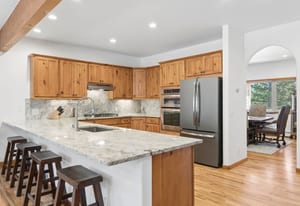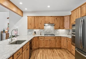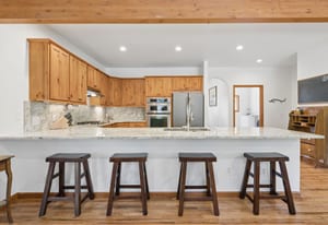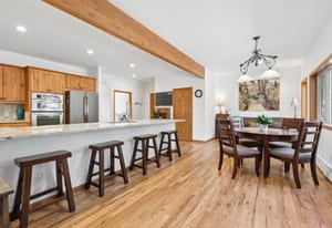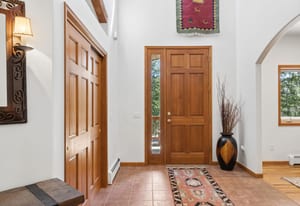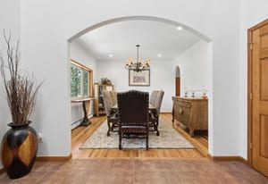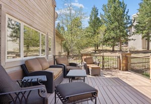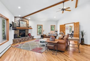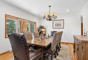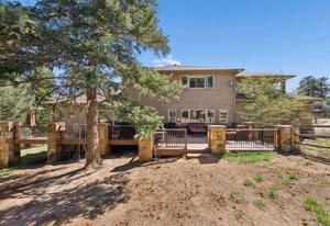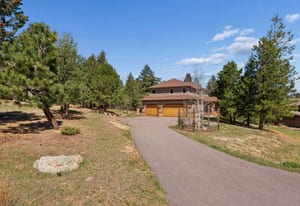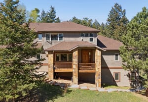 Nestled in one of North Evergreen’s favorable enclaves, The Promontory at Soda Creek offers an exceptional opportunity to experience elevated mountain living with everyday convenience. Set on a level, partially fenced lot, this property delivers a special combination of usability, privacy, and natural beauty. The thoughtfully designed open floor plan showcases exposed beams, graceful archways, and abundant natural light, creating a warm and tastefully curated ambiance. The main level features a spacious great room with a focal point fireplace, an inviting dining area, and a private office—ideal for both productive workdays and relaxed living. The kitchen is both functional and stylish, featuring a large center island, abundant counter space, eat-in dining area, and a comfortable lounge area —perfectly suited for entertaining or daily living. An expansive deck extends the living space outdoors, offering generous seating areas and access to a usable, level yard—ideal for recreation, gatherings, or simply enjoying the peaceful surroundings. Upstairs, three generous sized bedrooms include a well appointed primary suite with vaulted ceilings, gas fireplace, and dual walk-in closets. The ensuite bath provides a private retreat, while the secondary bedrooms share a convenient, dual-access full bath. The lower level with additional exterior, separate entrance enhances flexibility with a spacious family room, guest bedroom, and full bath. A secondary kitchen space and dedicated washer and dryer create an ideal setup for guests, multigenerational living, or private accommodations. The South facing, level driveway with bonus parking turn around spaces provided easy in/out access. With close proximity to Evergreen Recreation Center, hiking/biking trails, parks, schools, hundreds of acres open space—and convenient access to Denver—this home offers a great blend of comfort, versatility, and the very best of Evergreen living.