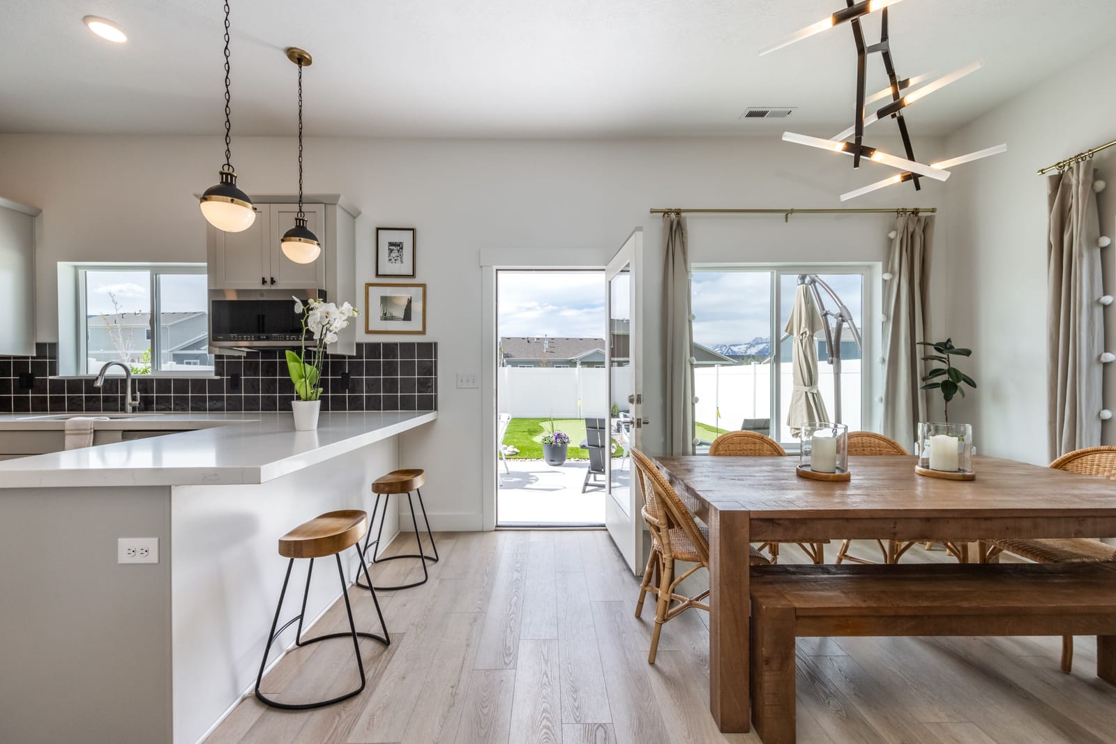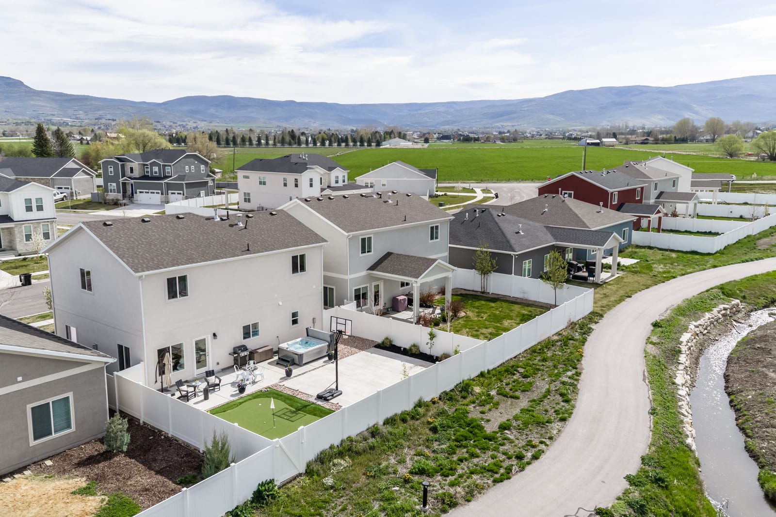 Set within Heber City’s coveted Brookside neighborhood, this thoughtfully designed home represents exceptional value with the balance of modern living and everyday ease. Clean-lined interiors meet a resort-style backyard and panoramic views of Mount Timpanogos and the Wasatch Range. Backing directly to community open space, the setting feels both expansive and private, with no rear