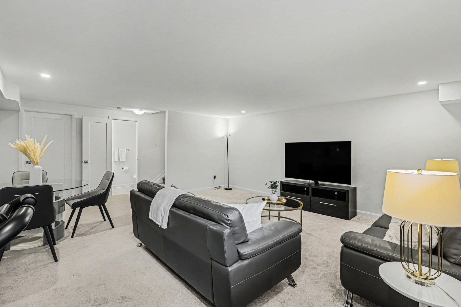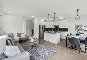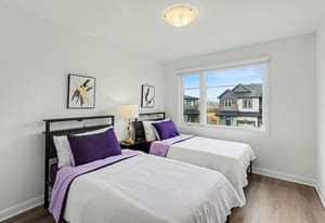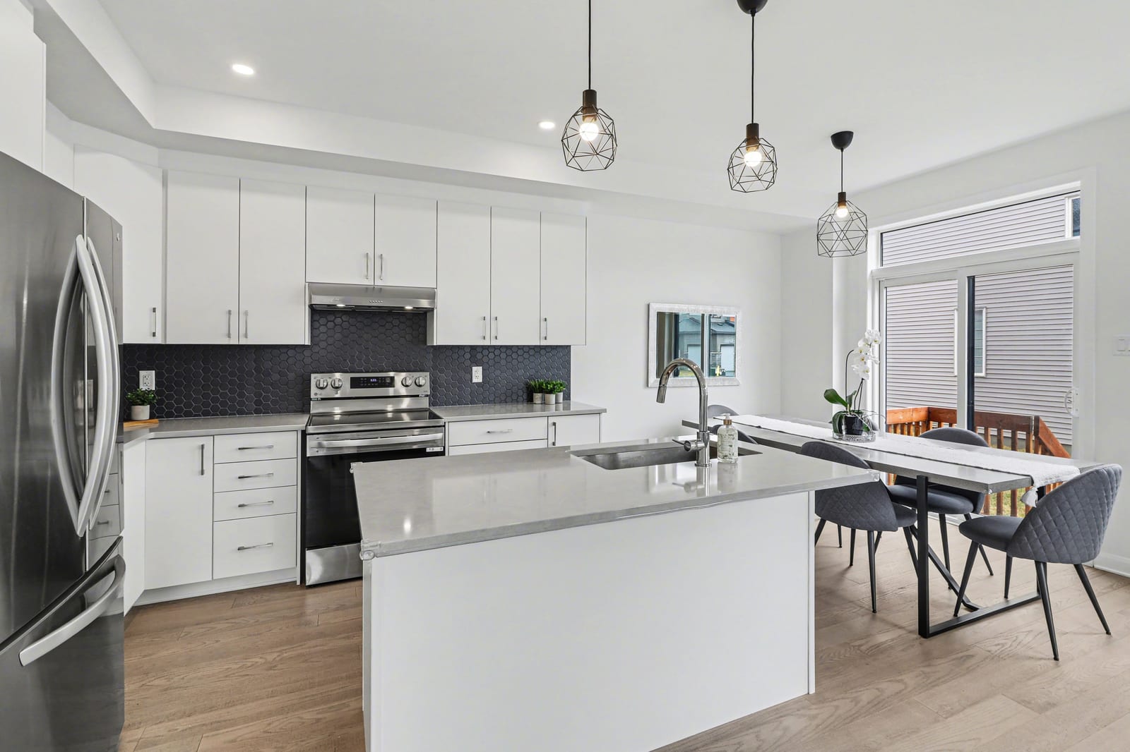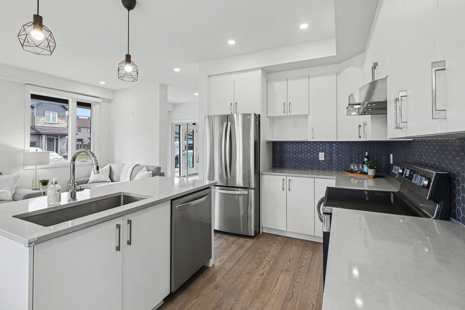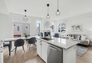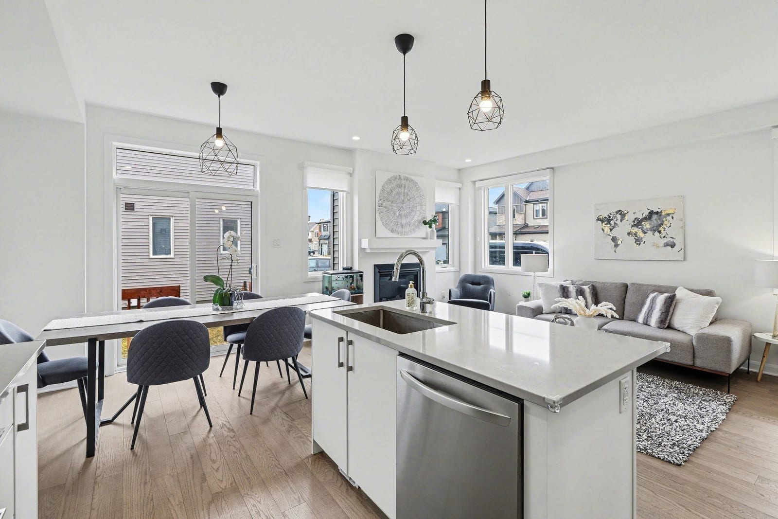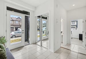 Corner unit with ideal south-west exposure, offering a bright, light-filled interior that is rarely found. Built in 2024, this upgraded end-unit townhouse features 2,218 sq ft of functional living space. The home offers a smart layout with a main floor corner room - ideal for a home office or guest space - plus 4 spacious bedrooms upstairs. Hardwood runs throughout the main level and bedrooms, with custom blinds on most windows.The main floor features 9' ceilings, pot lights, a cozy gas fireplace, and a modern kitchen with quartz countertops. Upstairs includes 4 well appointed bedrooms, including a bright primary with walk-in closet and ensuite with quarz counters and natural light, plus convenient second-floor laundry. The finished basement adds extra living space with a large window for natural light and a rare builder-upgraded powder room as well as storage space. Located in a growing, family-friendly neighbourhood with many amenities around the corner good walkability to nearby grocery, shops, services, parks, and everyday amenities along Tenth Line Road and Innes Road, plus easy access to transit and major routes.