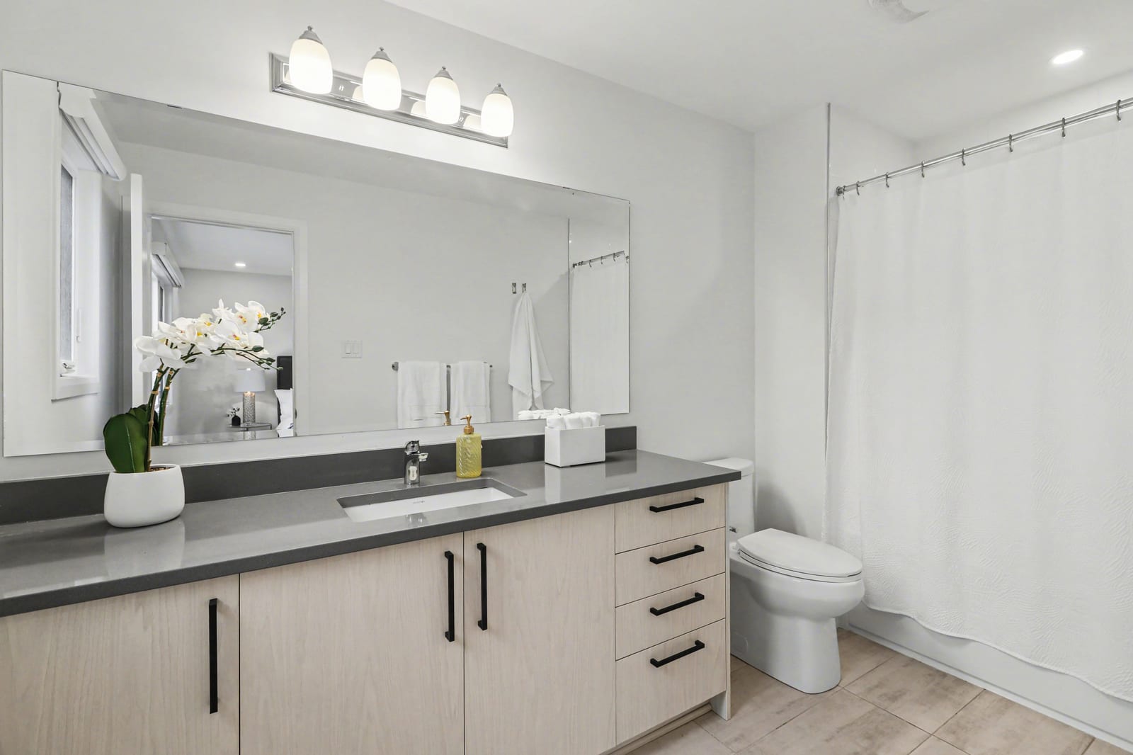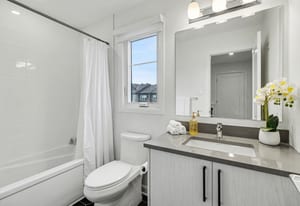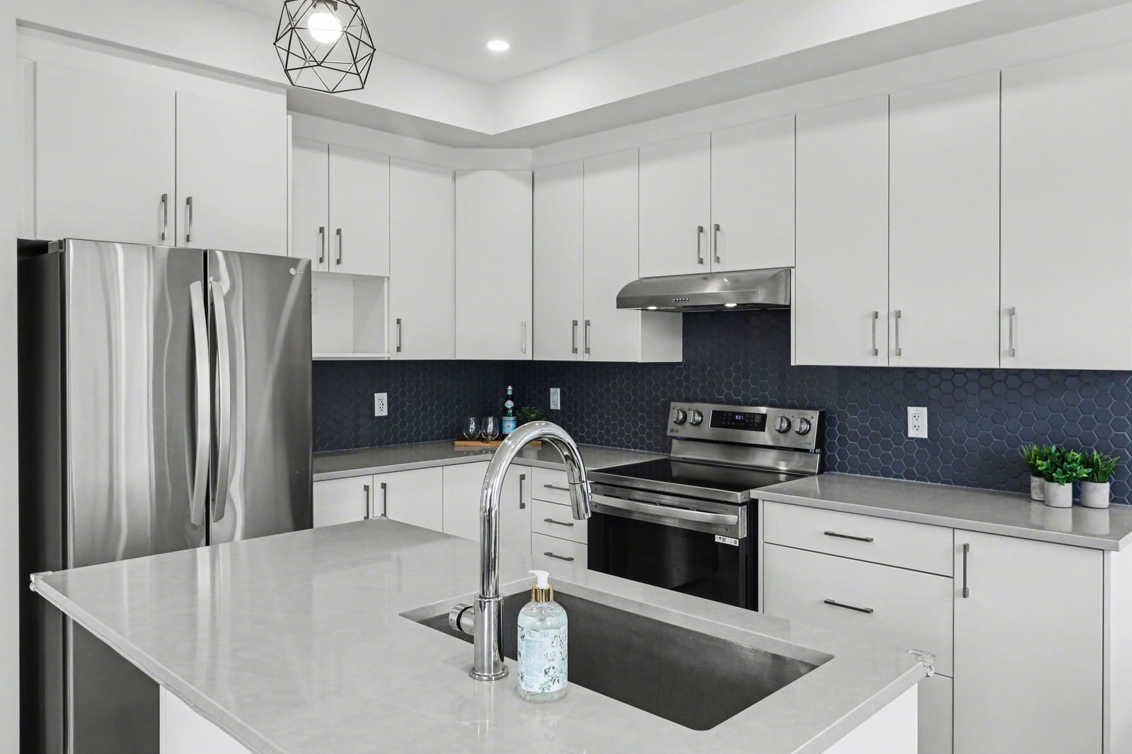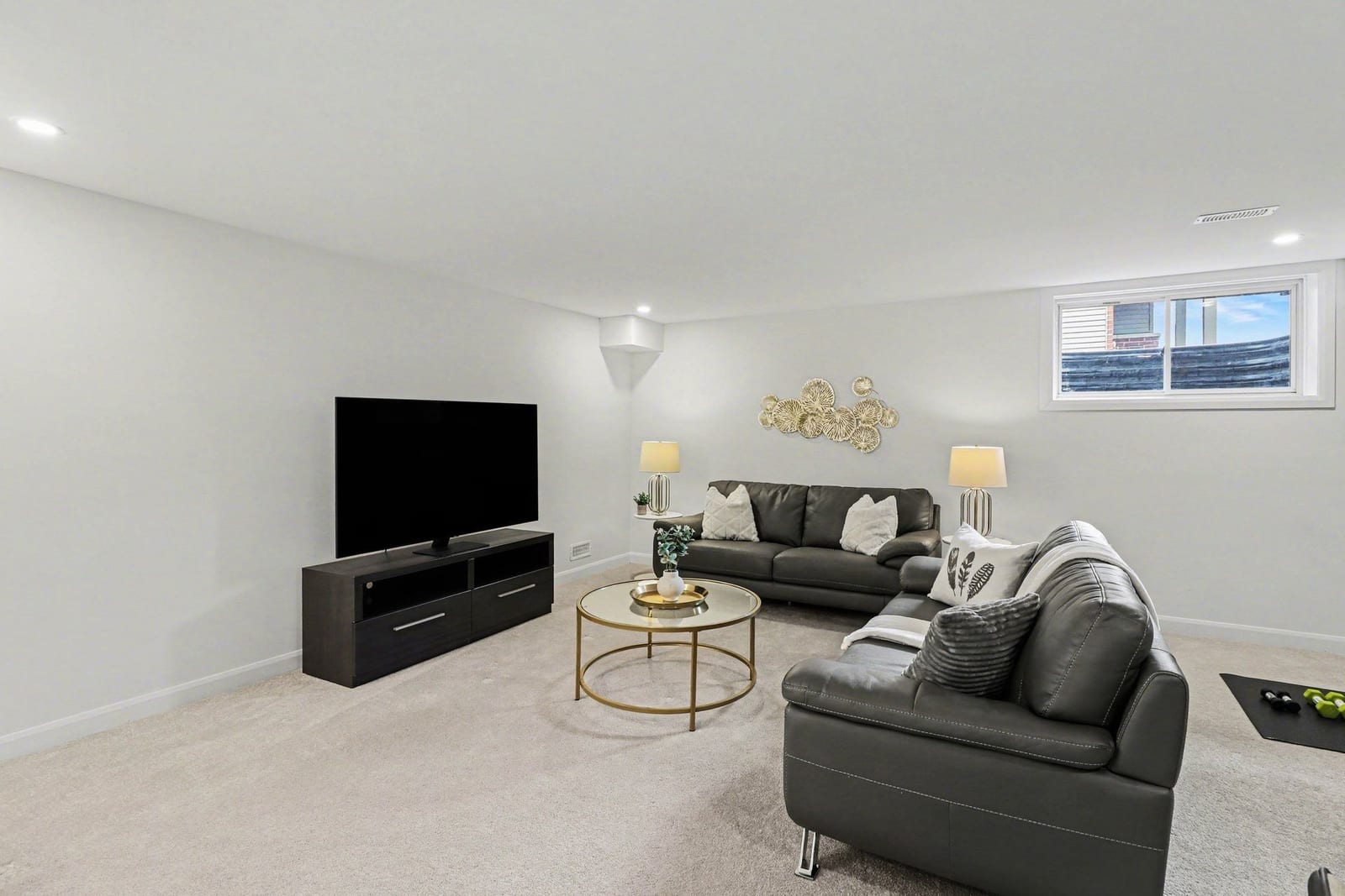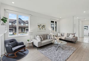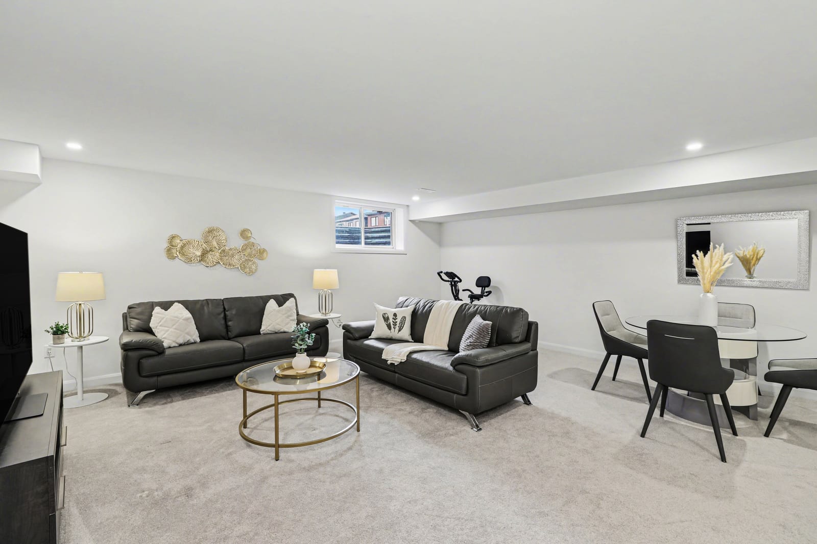 Corner unit with ideal south-west exposure, offering a bright, light-filled interior that is rarely found. Built in 2024, this upgraded end-unit townhouse features 2,218 sq ft of functional living space. The home offers a smart layout with a main floor corner room - ideal for a home office or guest space - plus 4 spacious bedrooms upstairs. Hardwood runs throughout the main level and bedrooms, with custom blinds on most windows.The main floor features 9' ceilings, pot lights, a cozy gas fireplace, and a modern kitchen with quartz countertops. Upstairs includes 4 well appointed bedrooms, including a bright primary with walk-in closet and ensuite with quarz counters and natural light, plus convenient second-floor laundry. The finished basement adds extra living space with a large window for natural light and a rare builder-upgraded powder room as well as storage space. Located in a growing, family-friendly neighbourhood with many amenities around the corner good walkability to nearby grocery, shops, services, parks, and everyday amenities along Tenth Line Road and Innes Road, plus easy access to transit and major routes.