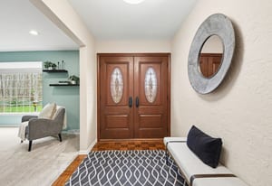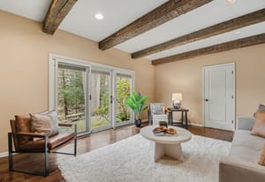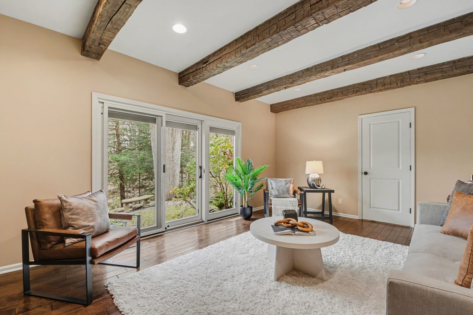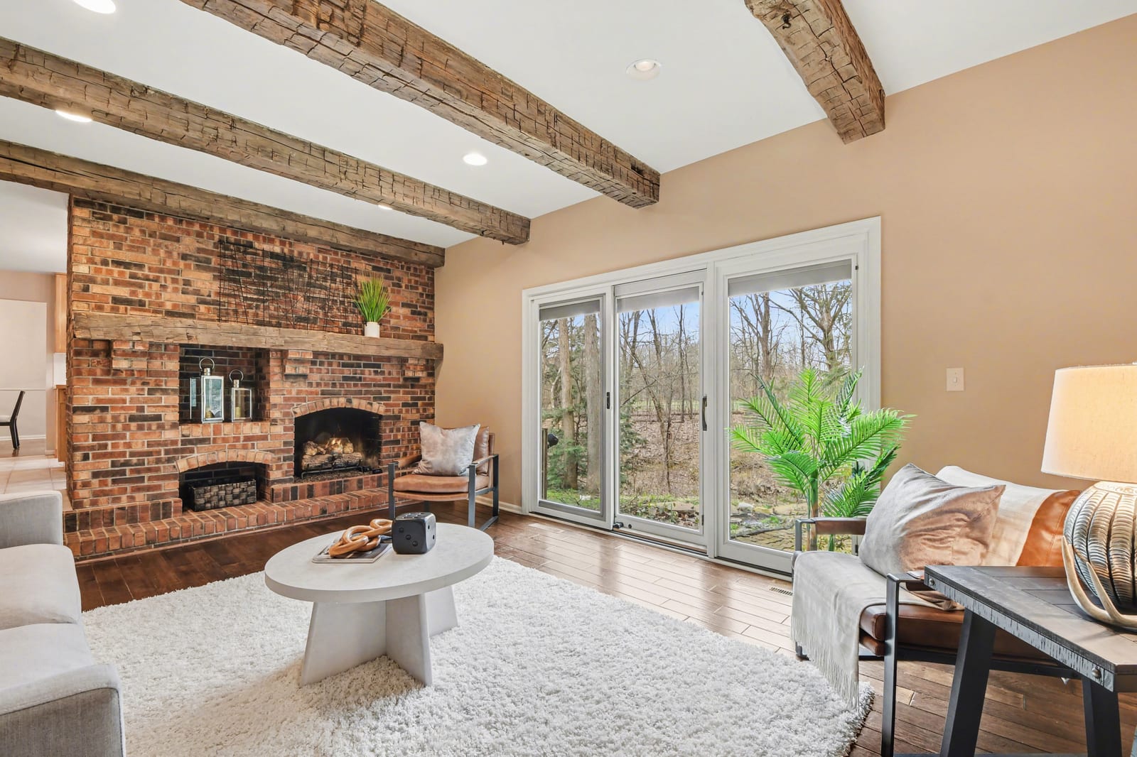 Rare opportunity to own a truly unique property in Hudsonville on 2.36 wooded acres with Rush Creek flowing through the backyard and direct access to Rush Creek Park. This is not your typical subdivision setting. The property offers a private, park like feel with trails, wildlife, and beautiful views in every direction. This well maintained walkout ranch offers over 2,800 finished square feet, plus two large enclosed sun porches (approx. 35x7 each) stacked one above the other overlooking the backyard and creek. These spaces provide year round enjoyment and some of the best views in the home. The main floor features two separate living areas, including a spacious living room with large picture window and a cozy family room with fireplace and wood beam accents. The kitchen offers warm wood cabinetry, center island, built in desk area, and generous pantry storage. There are three bedrooms on the main level, including a primary suite with private bath and direct access to the upper sun