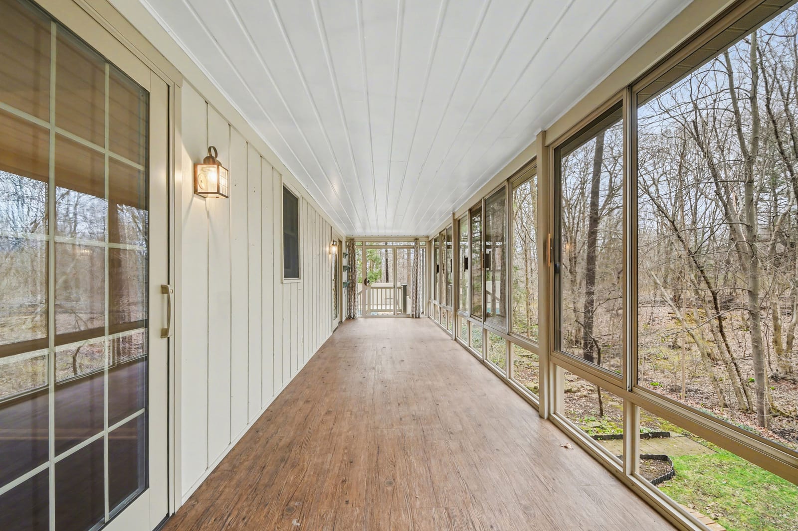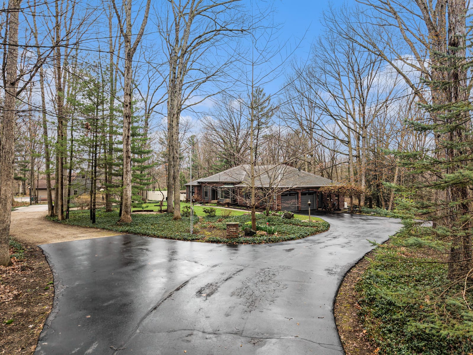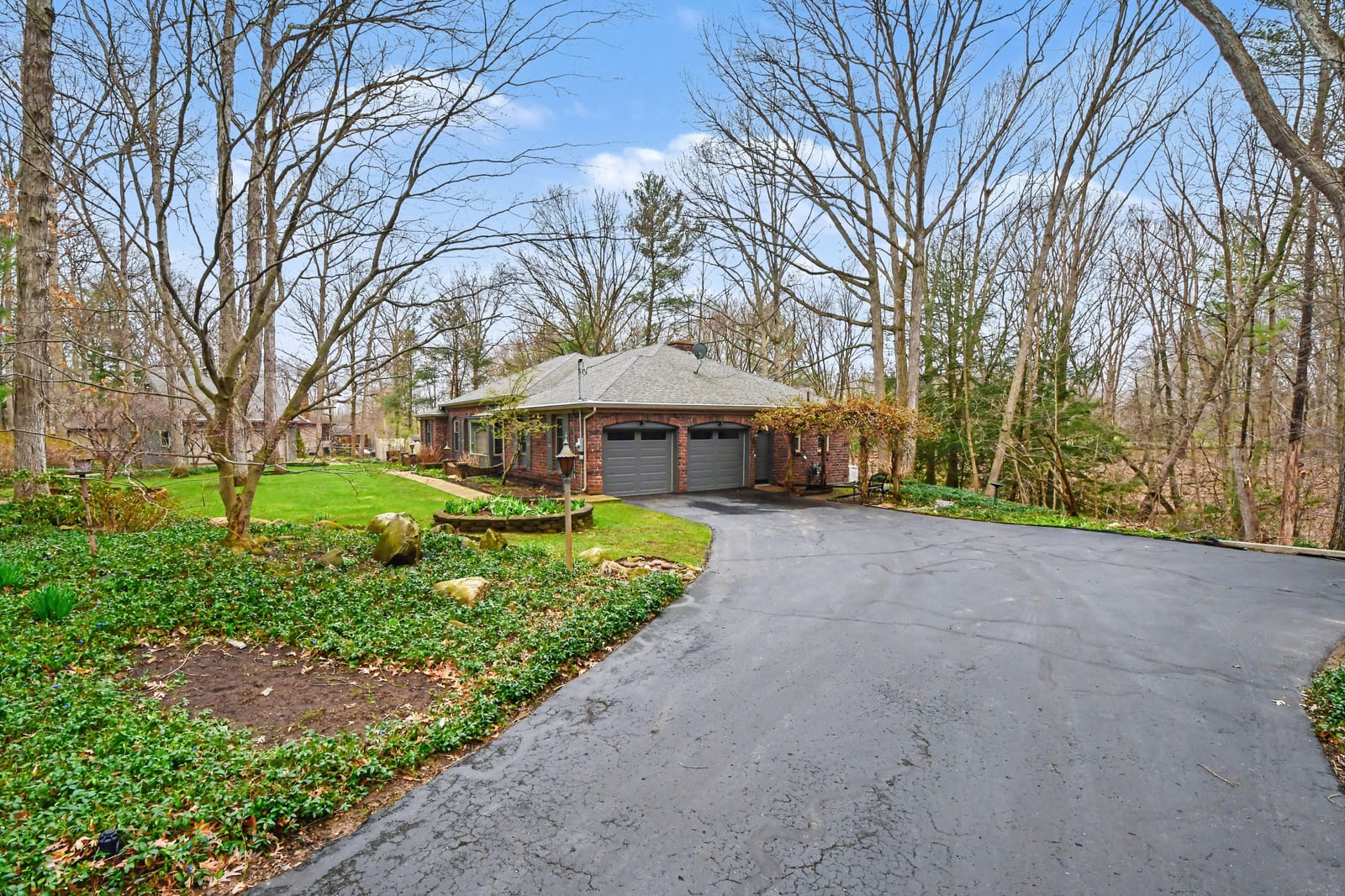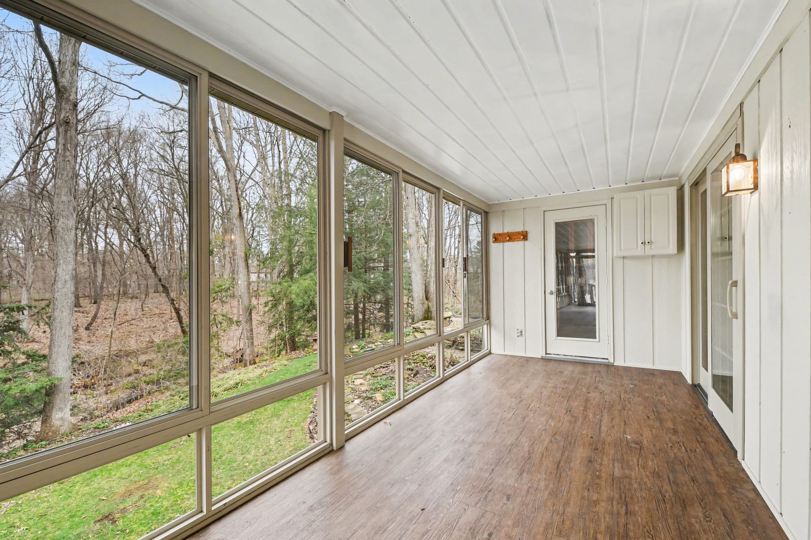 sun porch. Main floor laundry adds convenience.The finished walkout lower level includes a large family room with fireplace, bedroom, fully remodeled bathroom, access to the lower sun porch, and abundant storage space.Outside, the setting continues to impress with a heated inground pool, expansive patio area, and mature trees throughout the property. A large cement pad provides additional parking for a camper or boat.A major bonus is the 24x25 second garage with pull down stairs to a large loft ...