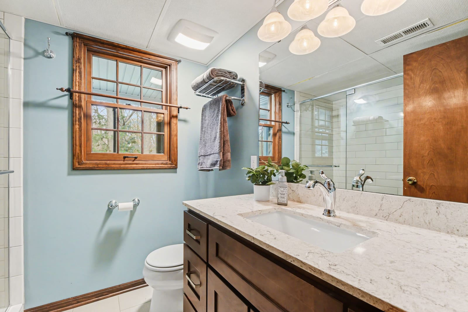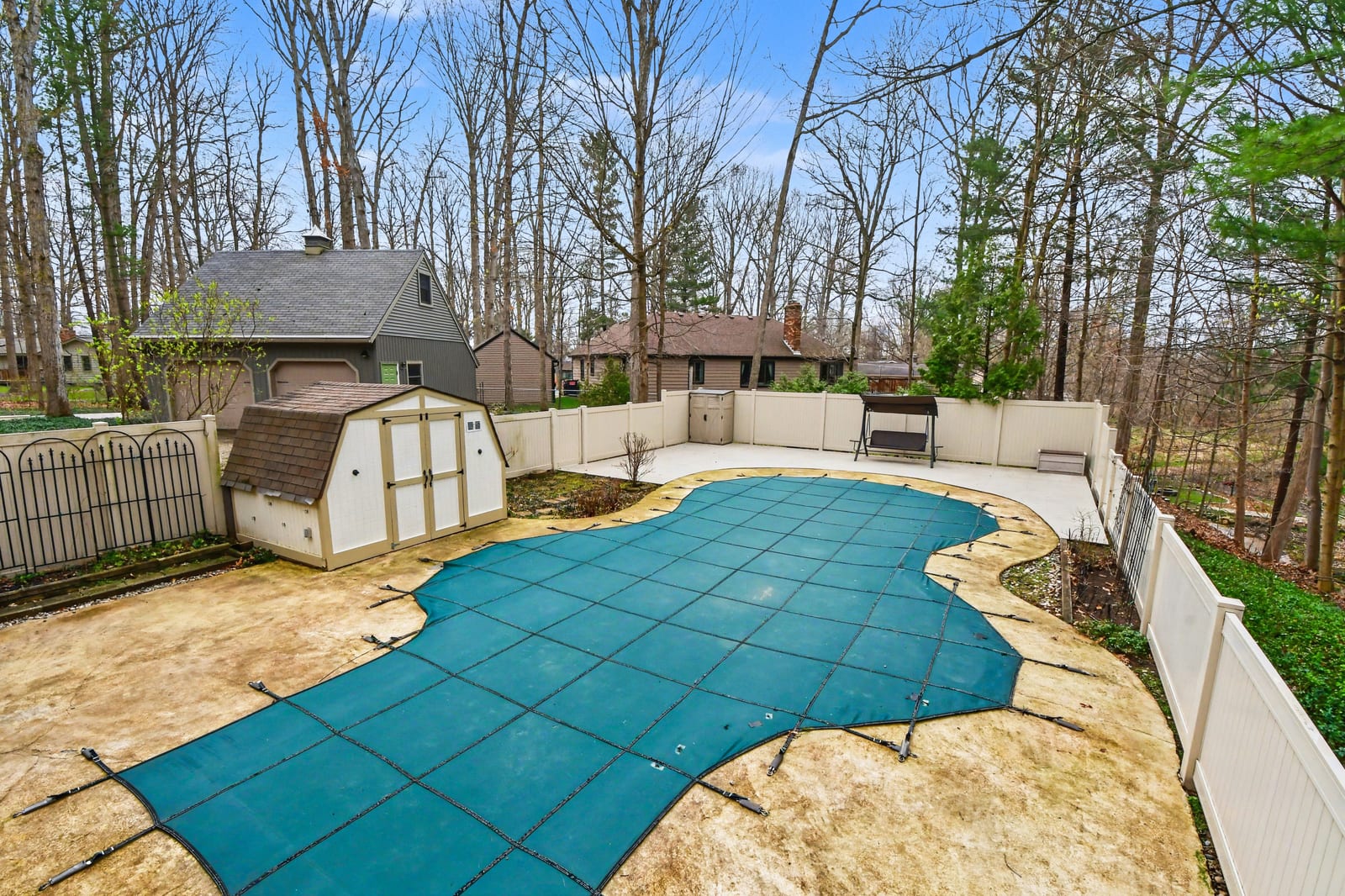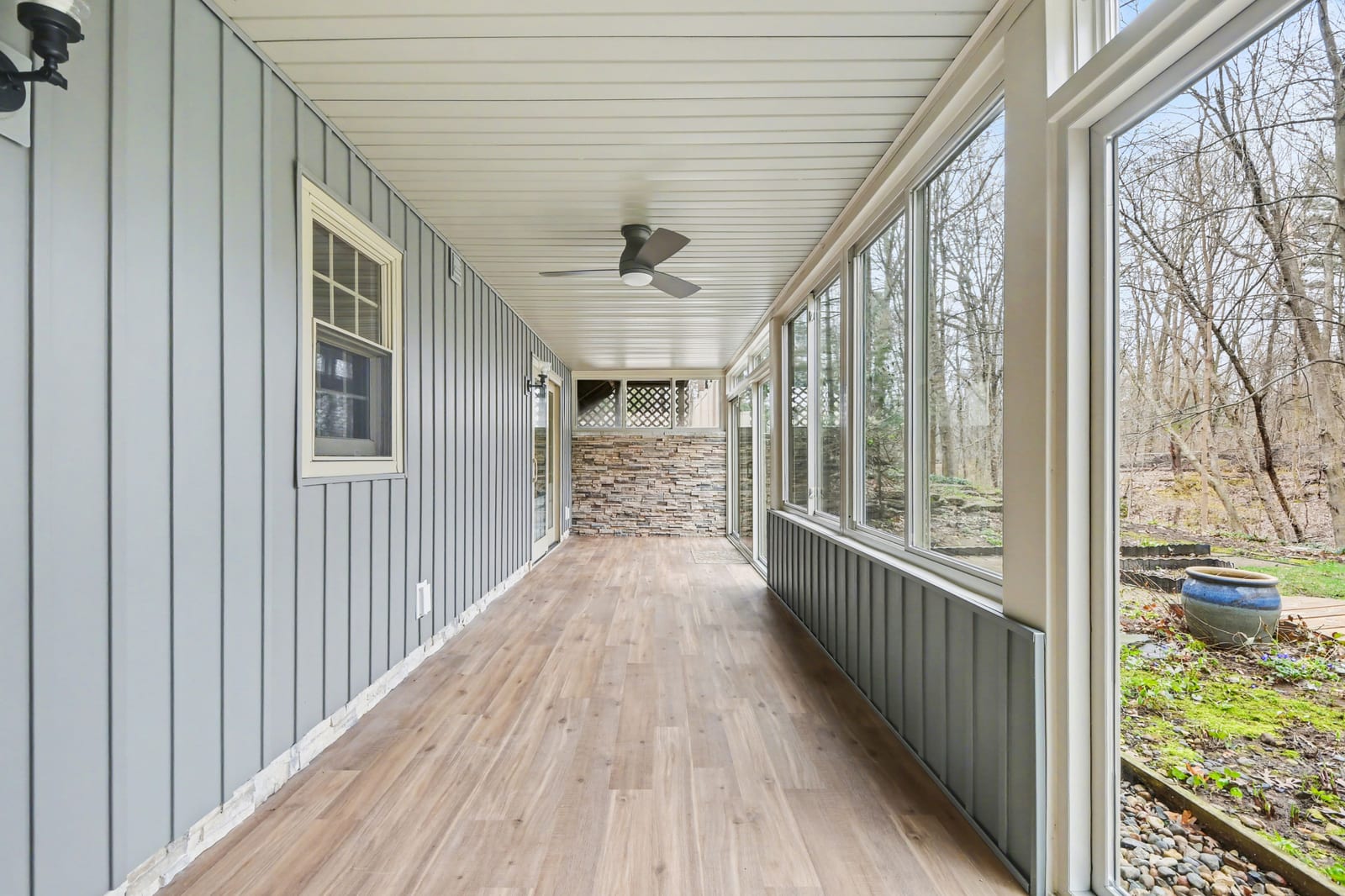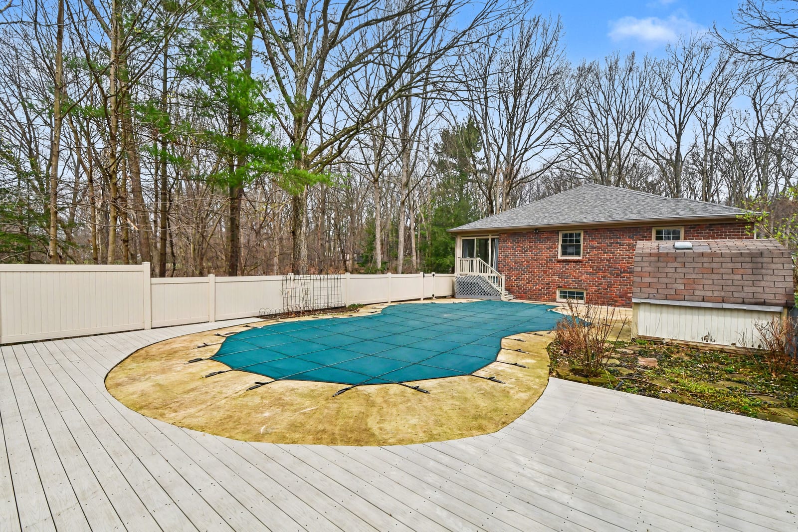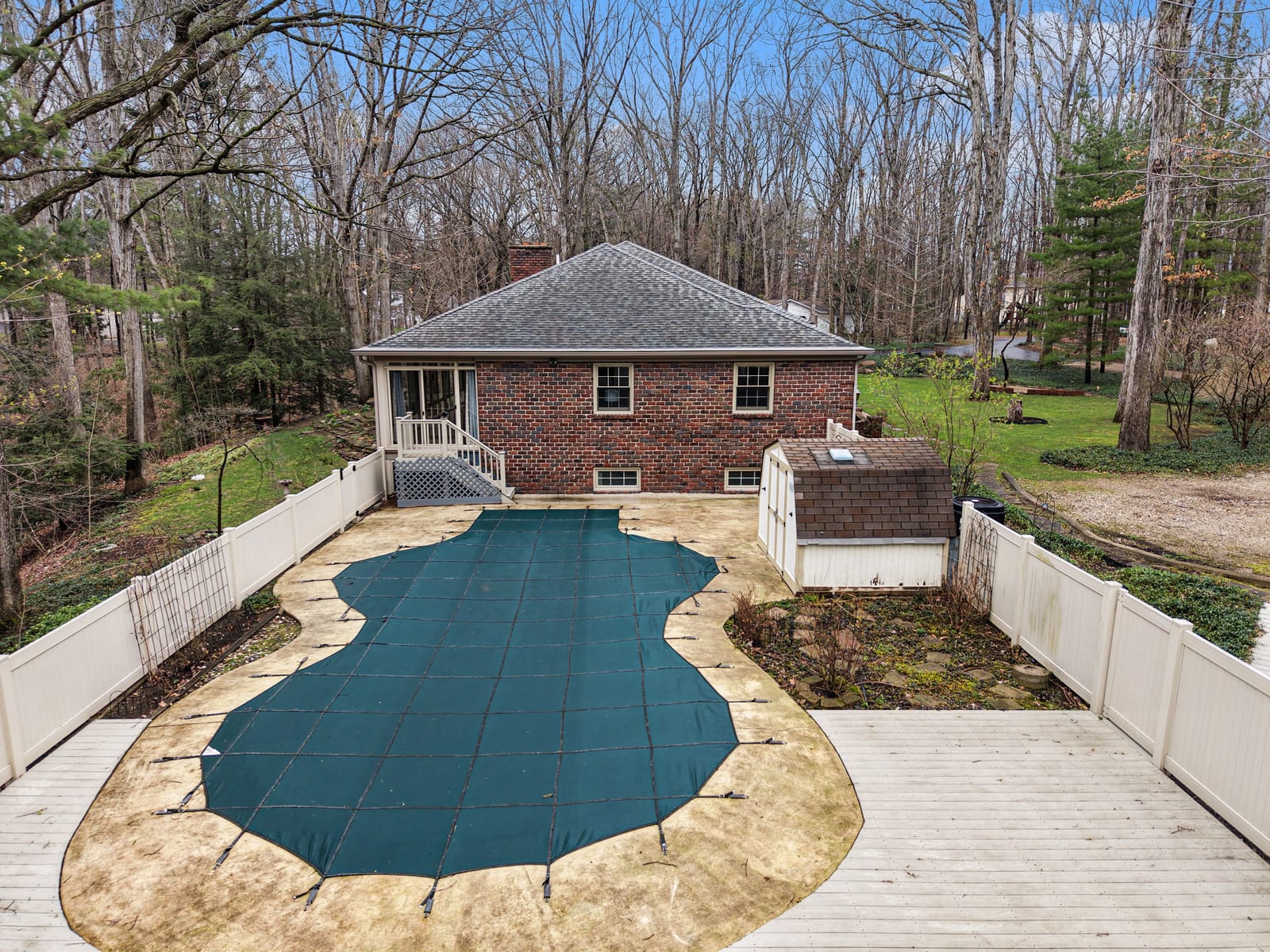 sun porch. Main floor laundry adds convenience.The finished walkout lower level includes a large family room with fireplace, bedroom, fully remodeled bathroom, access to the lower sun porch, and abundant storage space.Outside, the setting continues to impress with a heated inground pool, expansive patio area, and mature trees throughout the property. A large cement pad provides additional parking for a camper or boat.A major bonus is the 24x25 second garage with pull down stairs to a large loft ...
