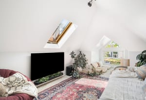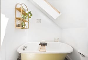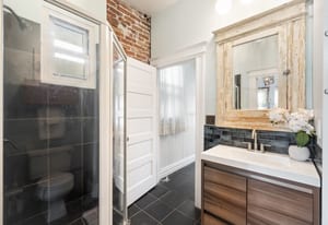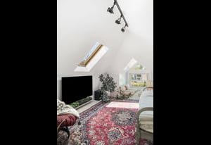 Upstairs, the spacious and unique loft adds personality and flexibility. The built-in desk plus a hang-out zone or even another bedroom complete with a swanky bathroom featuring a clawfoot tub, it feels like a tucked-away retreat you didn’t know you needed.