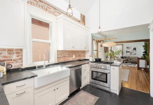 The renovated kitchen strikes the perfect balance of style and function, offering a fresh, inviting space to cook, gather and linger a little longer, while still honoring the home’s historic roots with the original ladder to the loft space - a true one of-a-kind, swoon worthy detail.
