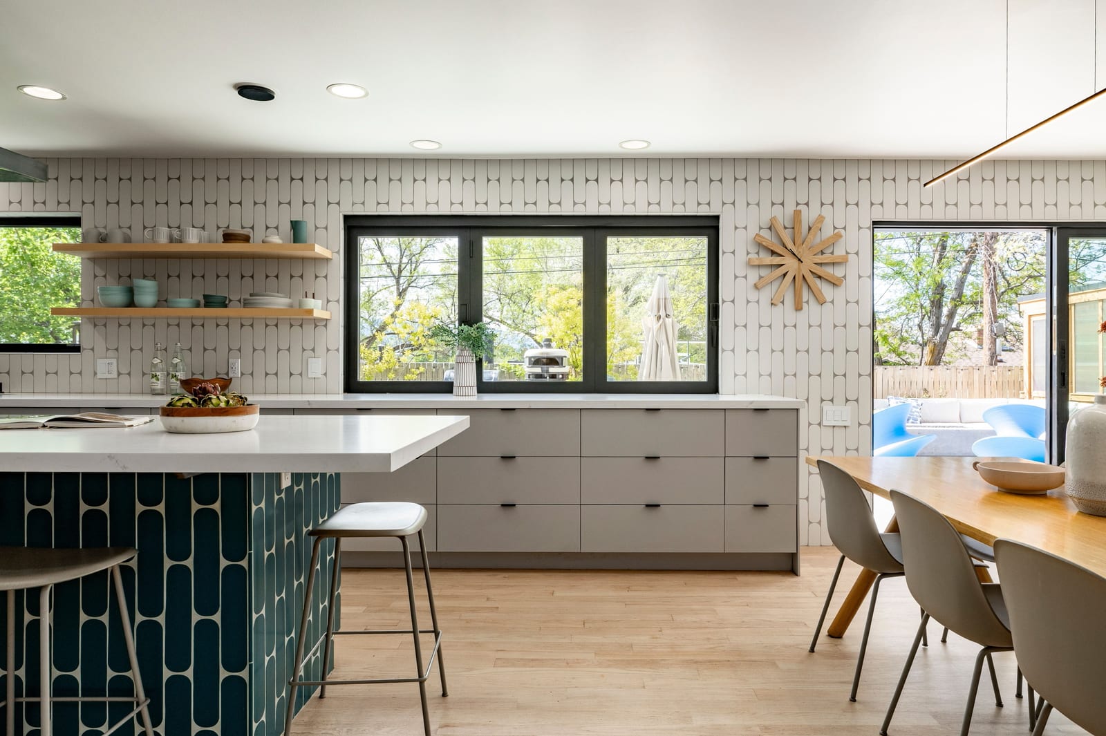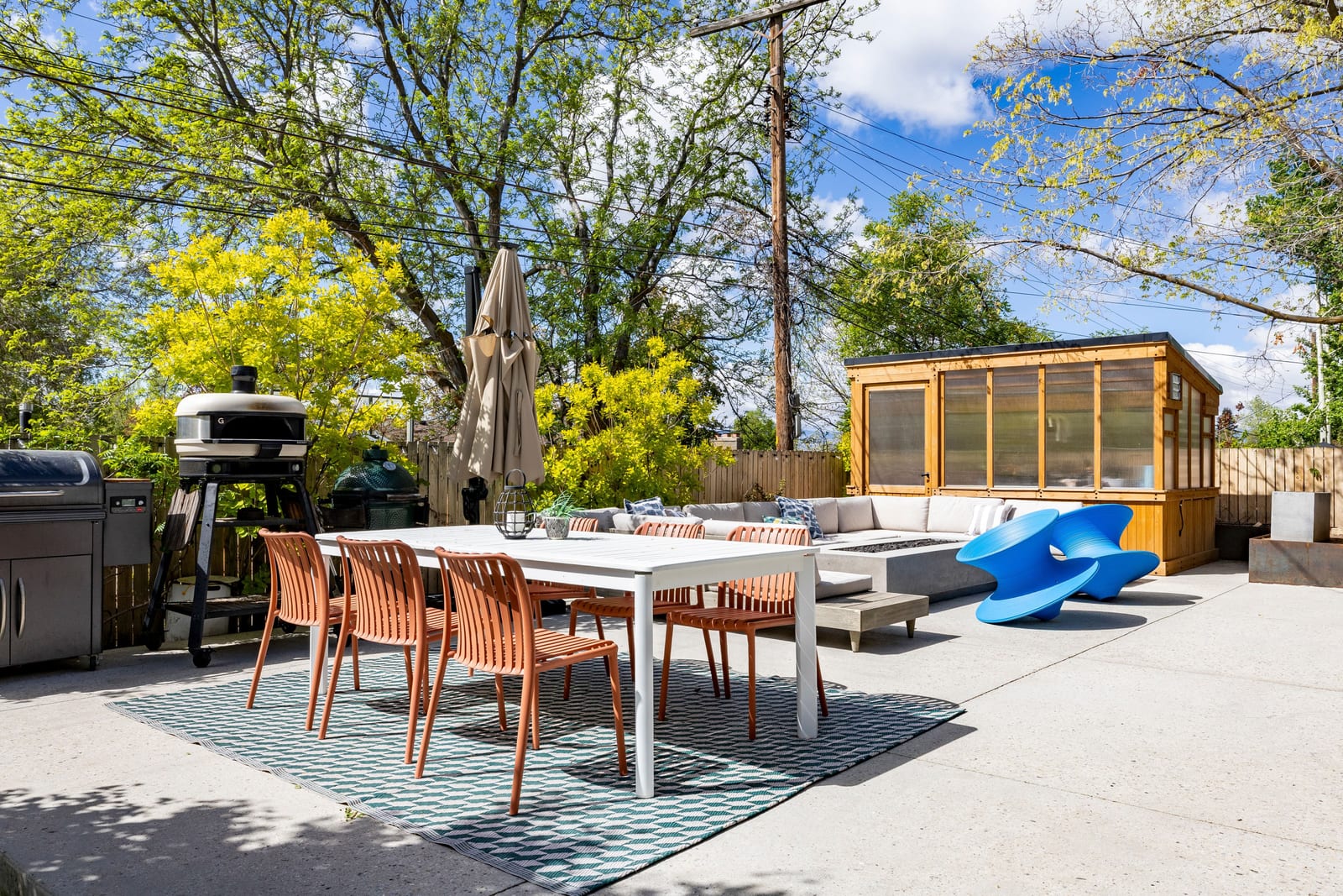 Introducing a reimagined Mid-Century rambler along Browning Avenue in Salt Lake City’s tree-lined El Rey Park neighborhood. Renovated inside and out, this home reflects a thoughtful layout with refined, modern finishes that complement its sound architectural roots. A striking six-foot linear gas fireplace set into a vertical wood accent wall anchors the main living space. The open-concept design unites the semi-formal dining area, kitchen and family room in a way that feels both elevated and livable. The gourmet kitchen is beautifully appointed with BOXI custom cabinetry, Oasis quartz countertops, a large island with seating for four, a Miele induction cooktop and double wall ovens, a 48-inch Dacor refrigerator, and a built-in pantry with additional storage and a butler’s pantry ideal for a coffee or prep station. The adjacent family room offers generous space to gather, with additional custom cabinetry, a framed TV feature, and direct access to the backyard, which features a new open aggregate concrete patio space. The main level includes three bedrooms, highlighted by a spacious primary suite with dual closets, double vanity, soaking tub, and Euro glass shower, along with two additional bedrooms, built-ins, and a conveniently located laundry area. The lower level expands the home’s versatility with three additional bedrooms, (one currently configured as a gym), a three-quarter bathroom, two family rooms, and abundant storage including a mechanical room and secure storage area. Outdoor living is equally compelling, featuring a large patio, firepit, and swim spa hot tub, creating an ideal setting for entertaining or relaxing. A greenhouse adds charm and functionality for gardening enthusiasts. Located just moments from neighborhood favorites including Harmons Emigration Market, Emigration Café, Nomad East, Jolley’s, and Wasatch Dog Park, with close proximity to downtown Salt Lake City, the University of Utah, and nearby foothill trails, this home offers a rare blend of design, comfort, and access to the very best of the area.