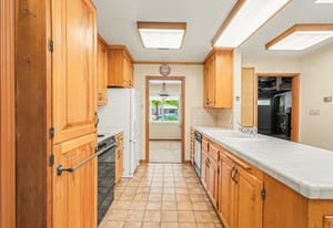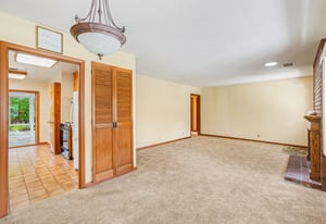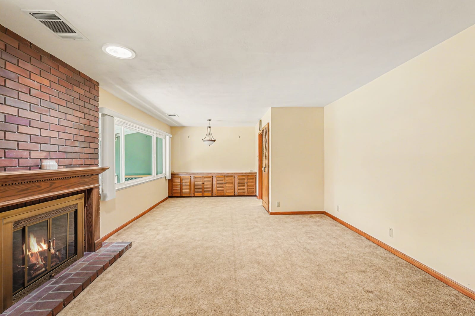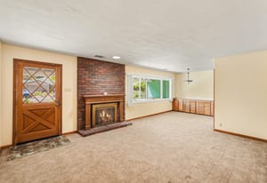 Inside, the home features dual-pane windows, a kitchen skylight, and tubular skylights that bring in added natural light. The functional layout offers a comfortable flow between the living and dining spaces, anchored by a classic fireplace. An additional 162 square foot sunroom provides a flexible bonus space.