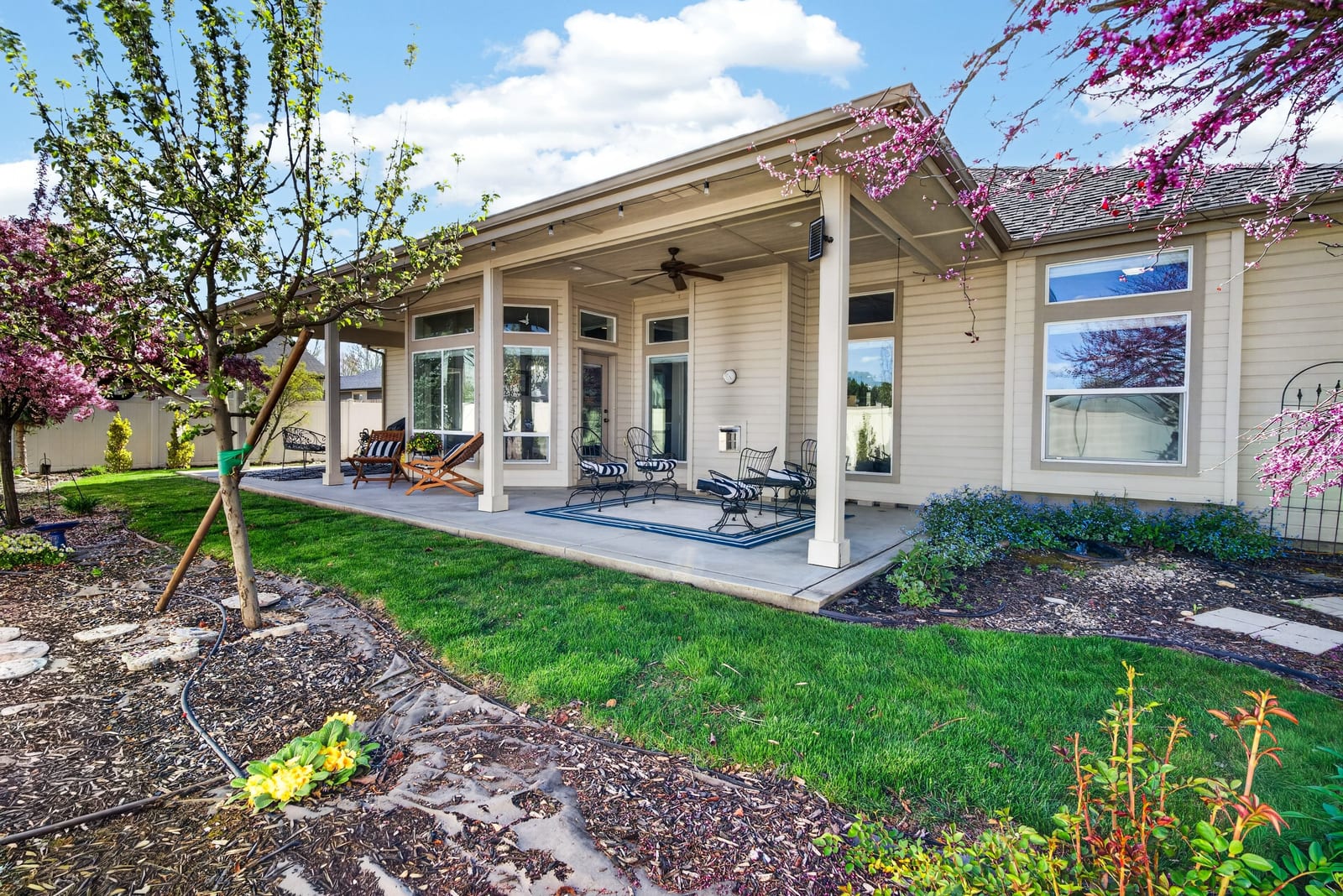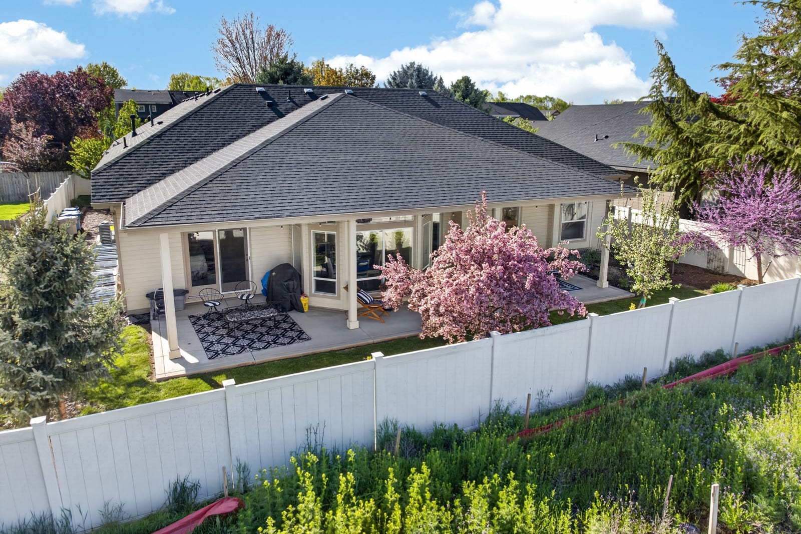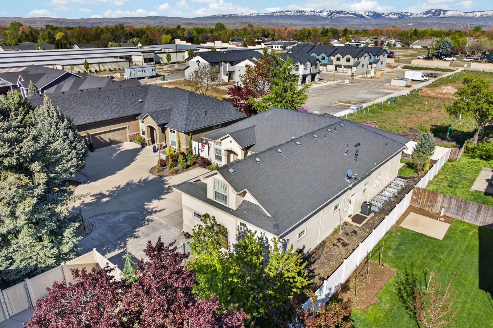 Tucked away on a private lot in a highly desirable Boise location, this beautifully updated home offers the perfect blend of comfort, functionality, and timeless style. Abundant windows and skylights fill the home with natural light. Built by Flaherty Custom Homes and Energy Star Certified, the thoughtfully designed layout features convenient single-level living with a split-bedroom floor plan for added privacy. The upstairs bonus suite provides the ideal space for a guest retreat, home office, or additional bedroom. Designed for modern living, the flexible floor plan easily accommodates both everyday life and entertaining. Recent updates, include refreshed bathrooms, new flooring, and fresh interior paint. Quality features enhance the home at every turn, including Hunter Douglas Silhouette blinds, classic plantation shutters, a central vacuum system, and a water softener with reverse osmosis at the kitchen sink. Major systems have been upgraded for peace of mind with a newer furnace and water heater, plus a brand-new AC in 2025. Step outside to a serene, private patio and enjoy the mature landscaping with fruit and flowering trees. Extended parking offers added flexibility, with room to create dedicated RV parking. Ideally located near shopping, dining, and healthcare, this exceptional property combines privacy, thoughtful upgrades, and versatile living—ready to fit your lifestyle.