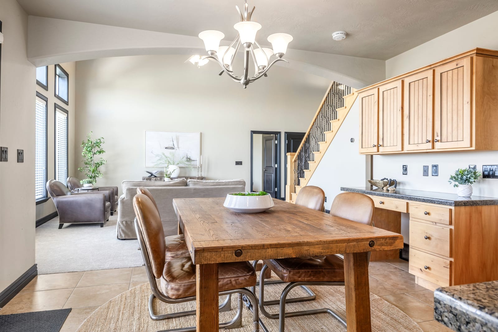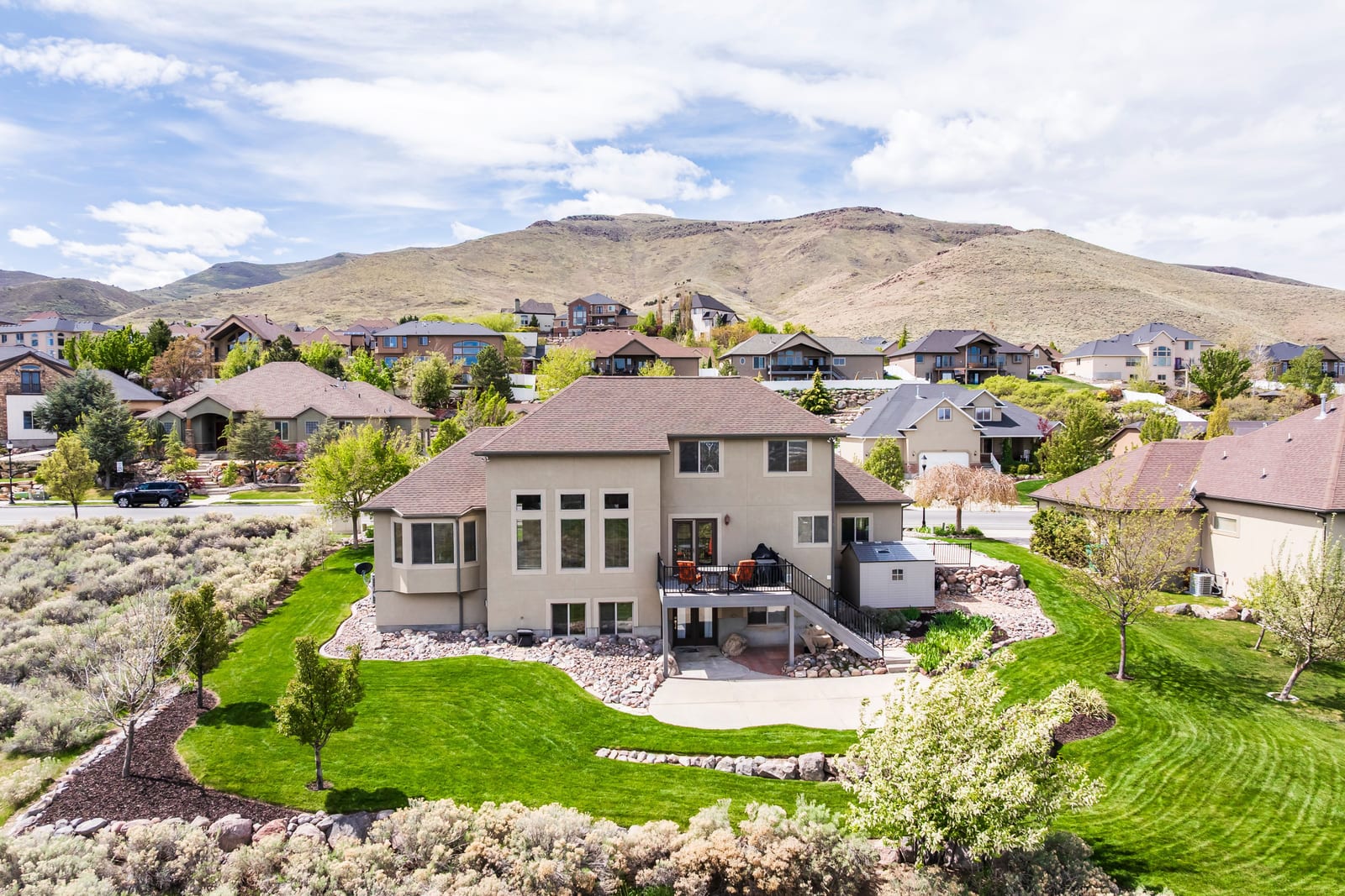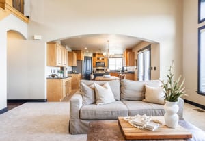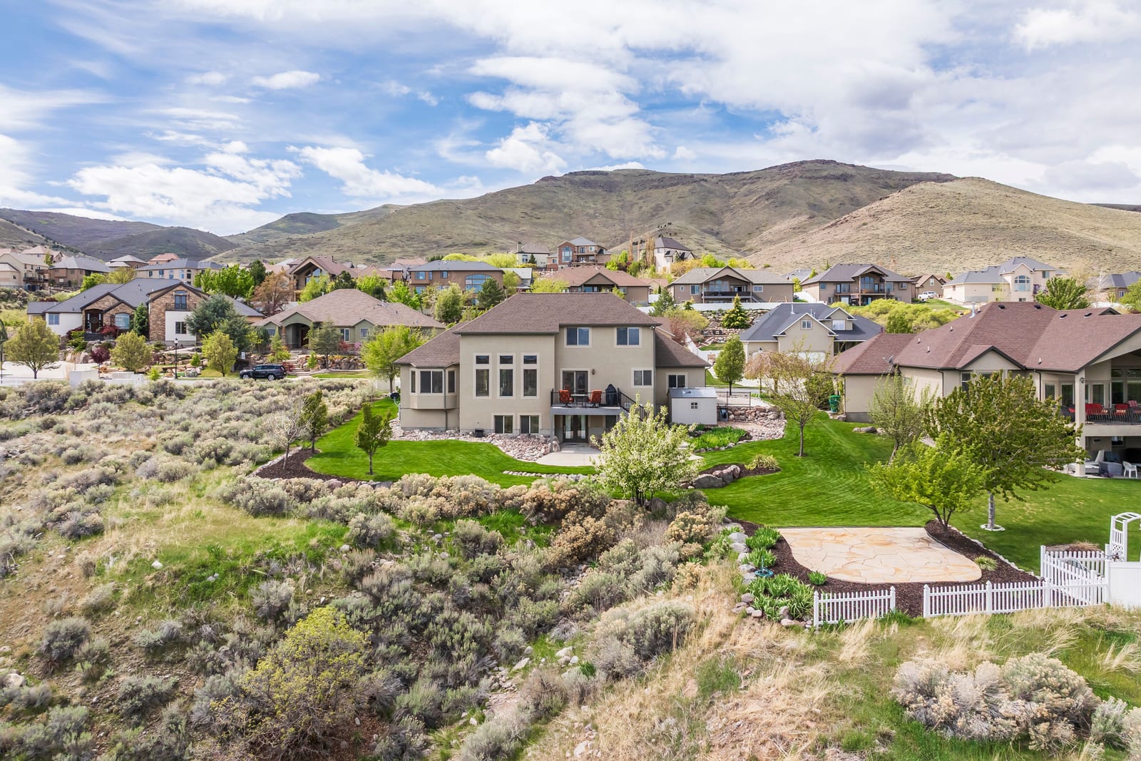 Welcome home to 5338 Emmeline Drive, where soaring vaulted ceilings and expansive windows create a light-filled interior, perfectly framing the sweeping mountain views. The main level is thoughtfully designed for both everyday living and entertaining, featuring an open-concept layout that seamlessly connects the living room, kitchen, and dining area. Step onto the deck to enjoy the morning sun or dining in the evening. The main-floor primary suite offers a private retreat, complete with a beautifully renovated bathroom with a walk-in shower and a separate soaking tub, plus a spacious walk-in closet. Upstairs you will find two additional bedrooms, a full bath, and a versatile loft providing flexible living space perfect for a home office, lounge, or creative studio. The walk-out lower level expands the home’s possibilities with two additional bedrooms, a generous family room, semi-formal dining space, another laundry area and a kitchenette making it ideal for guests or multigenerational living. Additional features include a dedicated workout area and a cold storage room. Convenience meets luxury with main-level laundry and carefully curated upgrades throughout, including a reverse osmosis water system, new carpet and newly painted Martin garage doors. Additional highlights include RV parking, a utility sink in the garage, a new roof (2025), and HVAC system (2021). Outdoors, the property offers exceptional privacy with no neighbors on three sides. Enjoy a beautifully landscaped yard with a flagstone patio, lush lawn, perennial gardens with blooming irises, and a plum tree. Wildlife sightings, including deer, enhance the serene, natural setting. Located just half a block from Herriman’s extensive trail network, this home offers immediate access to miles of hiking and mountain biking - bringing together luxury living and outdoor lifestyle in one exceptional property.