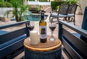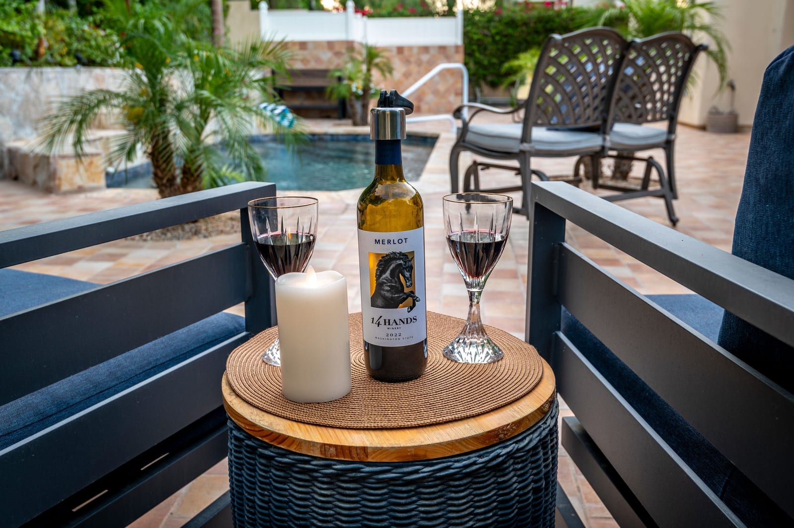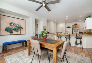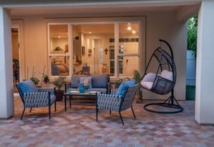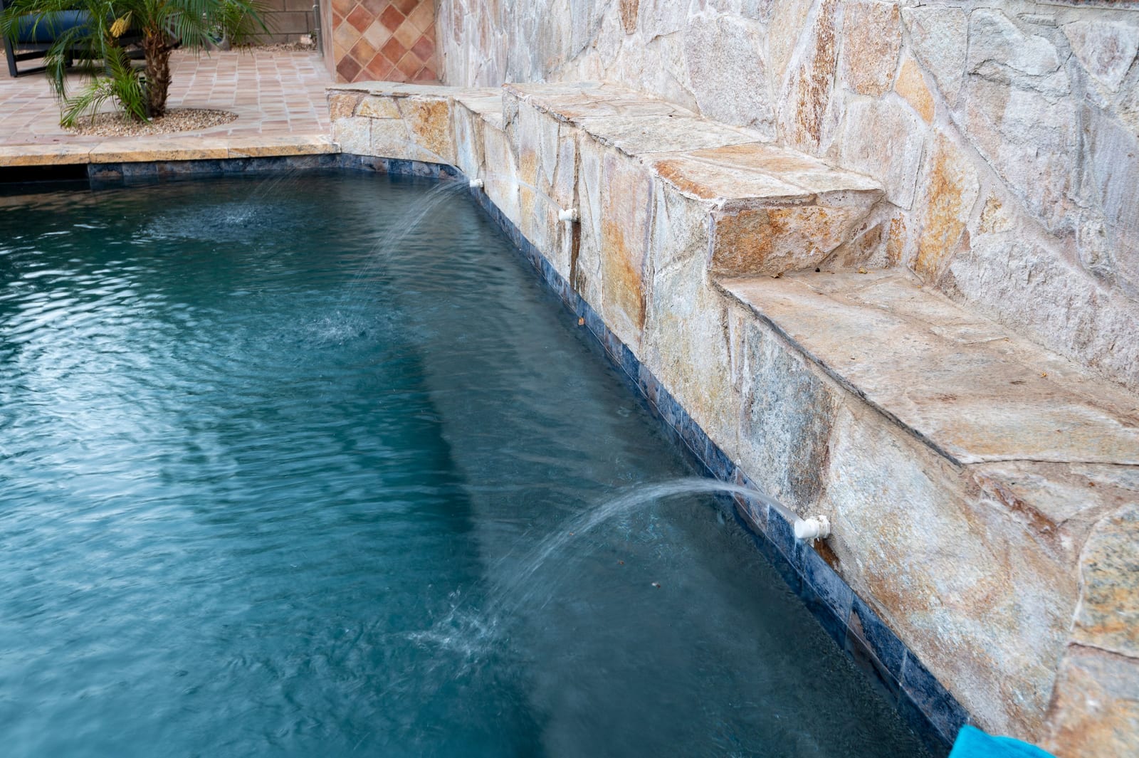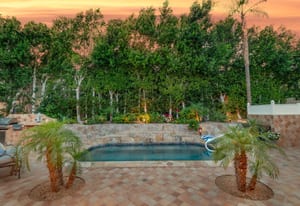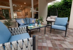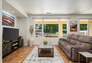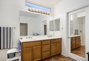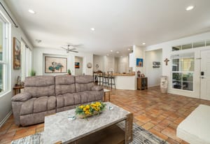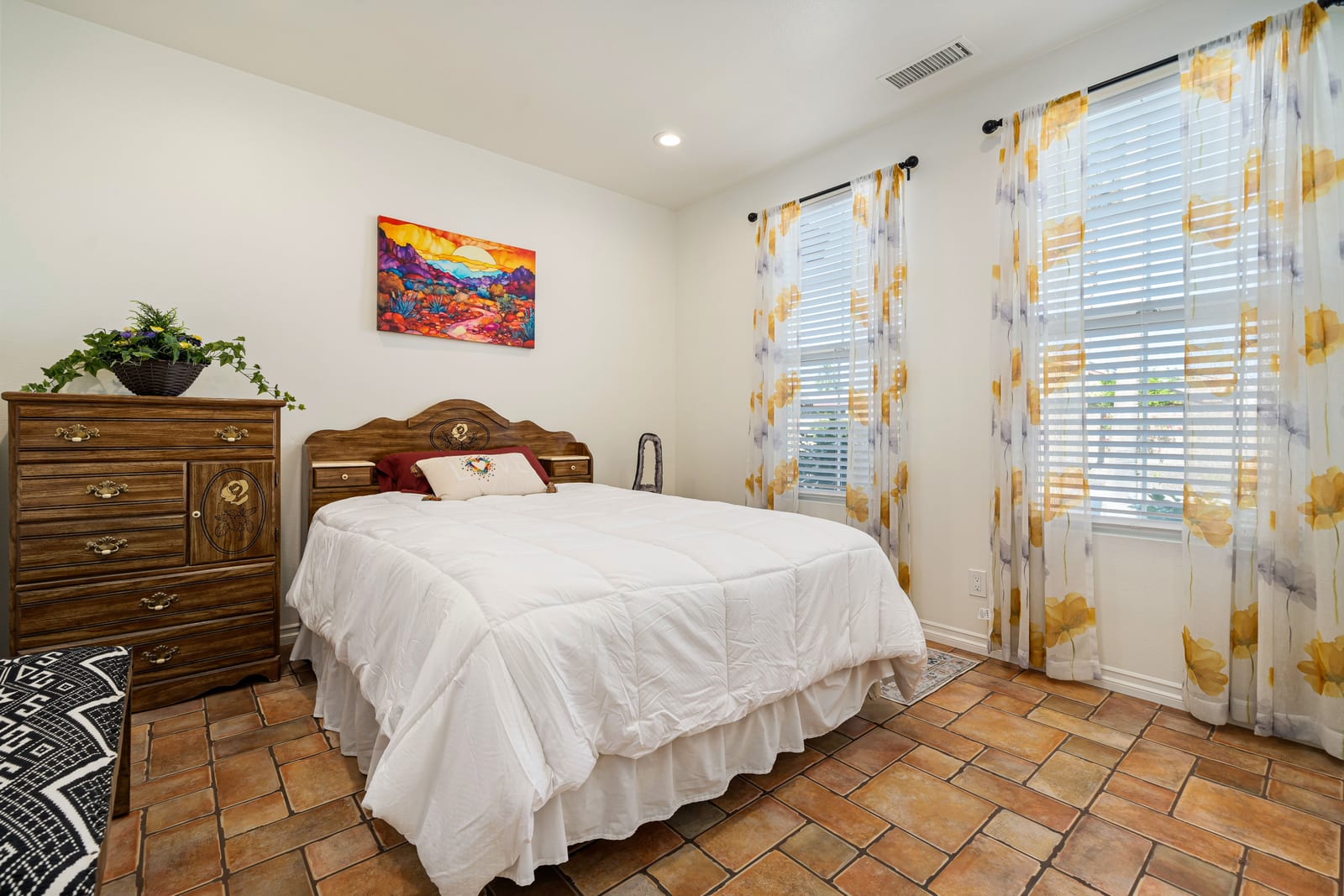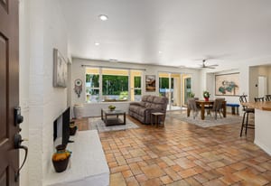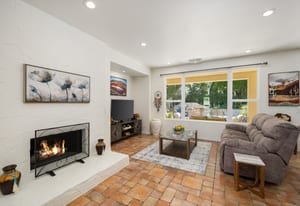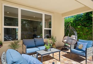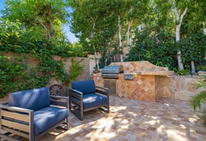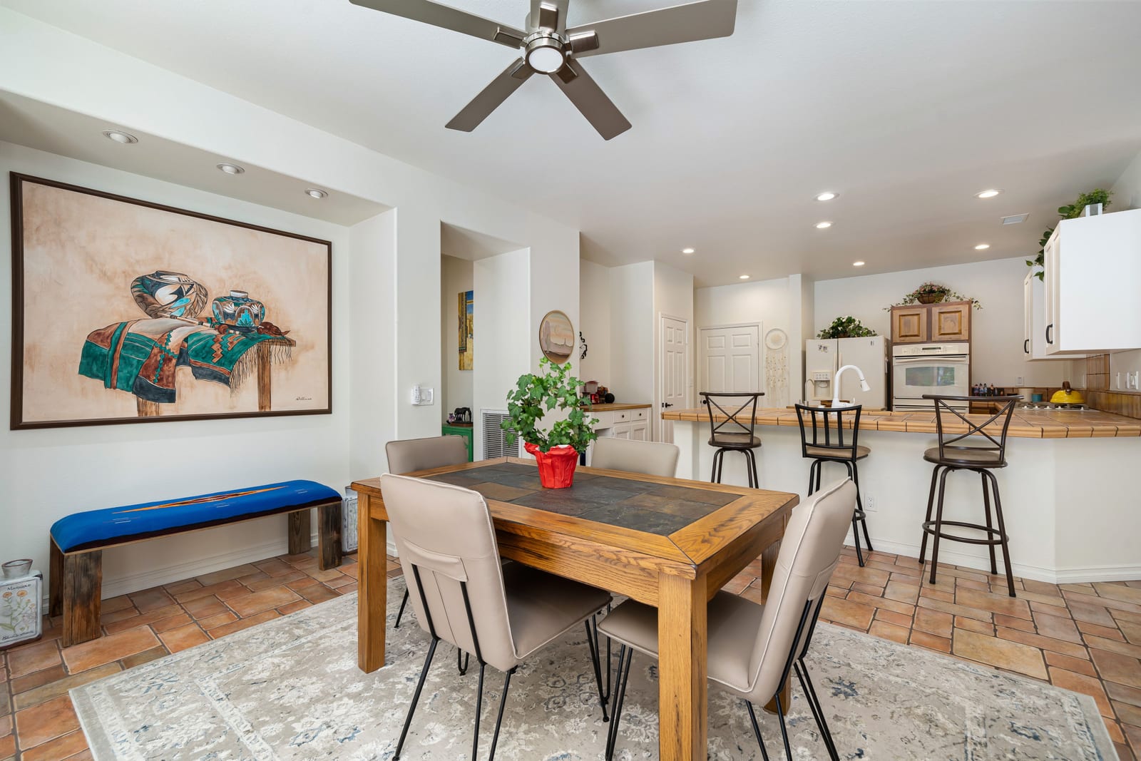Located at the Trilogy Golf Club at La Quinta, this Oasis model pool/spa home with 1,580 square feet, 2-bedrooms and 2 baths draw from the rich heritage of American Southwestern and Mediterranean interior design, with a fresh contemporary flair. Modern energy saving appliances and interior home systems keep the home comfortable and cost efficient year-round and include a new HVAC system, ceiling fans, tankless water heater, dishwasher, and Culligan reverse osmosis filtration system. Outdoors, the saltwater pool/spa with soothing jets is resurfaced with blue pebble-tec and has new pumps. The lush backyard landscape is kept green and vibrant with a new irrigation system, and pets love the low-maintenance, forever grass along the side yards. As the sun sets and darkness descends the spa shimmers an ethereal blue, and flowers, feathery palms and tall ficus trees glow from a variety of ground spots and uplights. The home is bright and airy with tall ceilings, and large windows and sliders that bring in the beauty of the backyard spa, expansive patio and exquisite landscape. Inside, earthy colored tile floors are counterbalanced with creamy white walls, a white floor to ceiling stone and raised hearth gas log fireplace. Ceiling spotlights in the great room and dining area nooks show off your cherished works of art and furnishings. The kitchen is beautifully designed for ease of cooking and entertaining with views and easy access to all dining areas. The kitchen is fitted with quality solid wood lower cabinets, tile countertops and backsplash punctuated with new clean white soft-close cabinets. A center workspace and handsome custom-made wood coffee bar adds to the comfort and pleasures of the home. The primary bedroom suite is spacious with a bay window overlooking the pool and yard. The roomy bath features double sinks, a walk-in shower and walk-in closet. A separate guest bedroom on the opposite side of the home has a mirrored sliding closet, and a full bath nearby. This stunning outdoor living space is a luxurious private oasis with large sunken jetted spa, three fountains, an expansive patio and mini palms. A professional outdoor barbecue station is the dream of every outdoor chef. The garage is extra-large with durable and easy to clean and tile flooring and fits 2-cars and a golf cart. Need additional workspace? The garage is retrofitted with existing duct work to add air conditioning and heat.