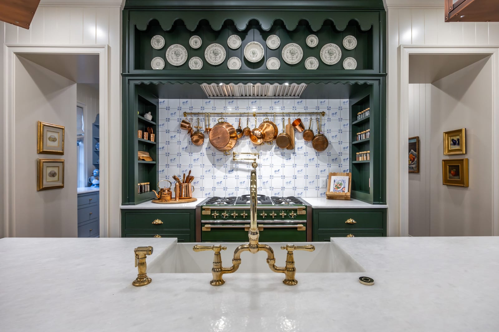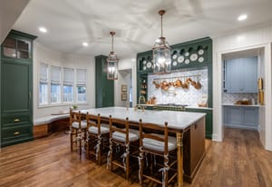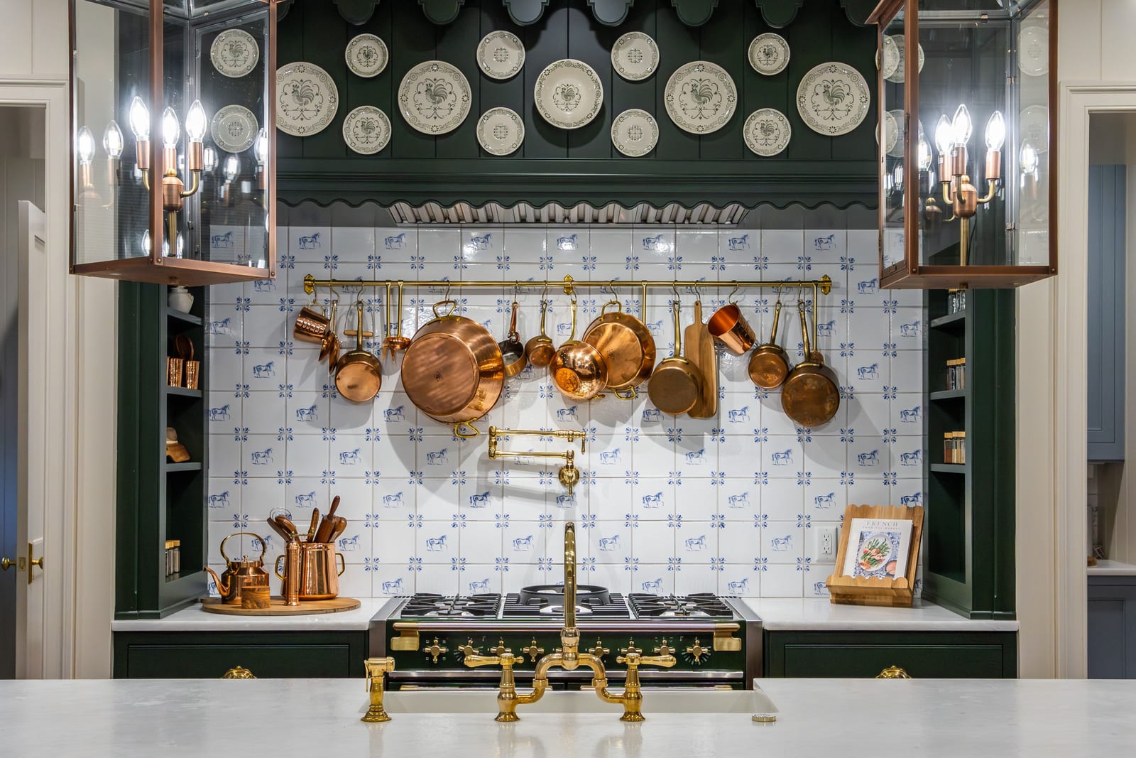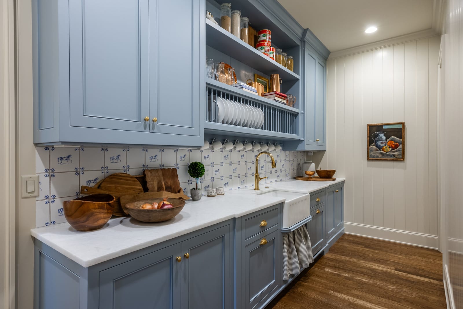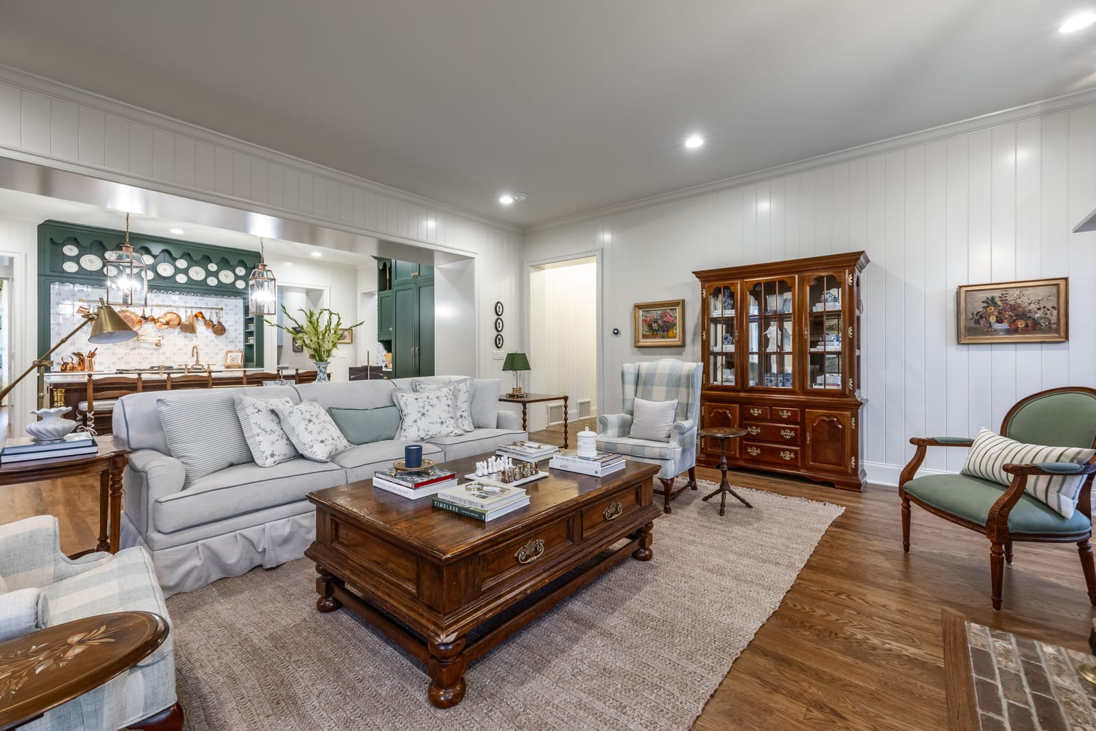 Inside, the home is warm, layered, and effortlessly functional. The kitchen serves as the heart of the home, with rich cabinetry, intricate millwork, warm wood tones, and a statement backsplash that anchors the space. The butler’s pantry offers both beauty and utility, ideal for hosting or keeping daily life beautifully organized. Throughout the home, custom built-ins add character and purpose.