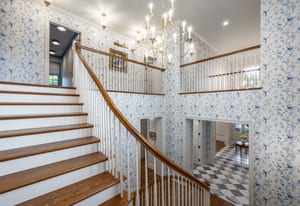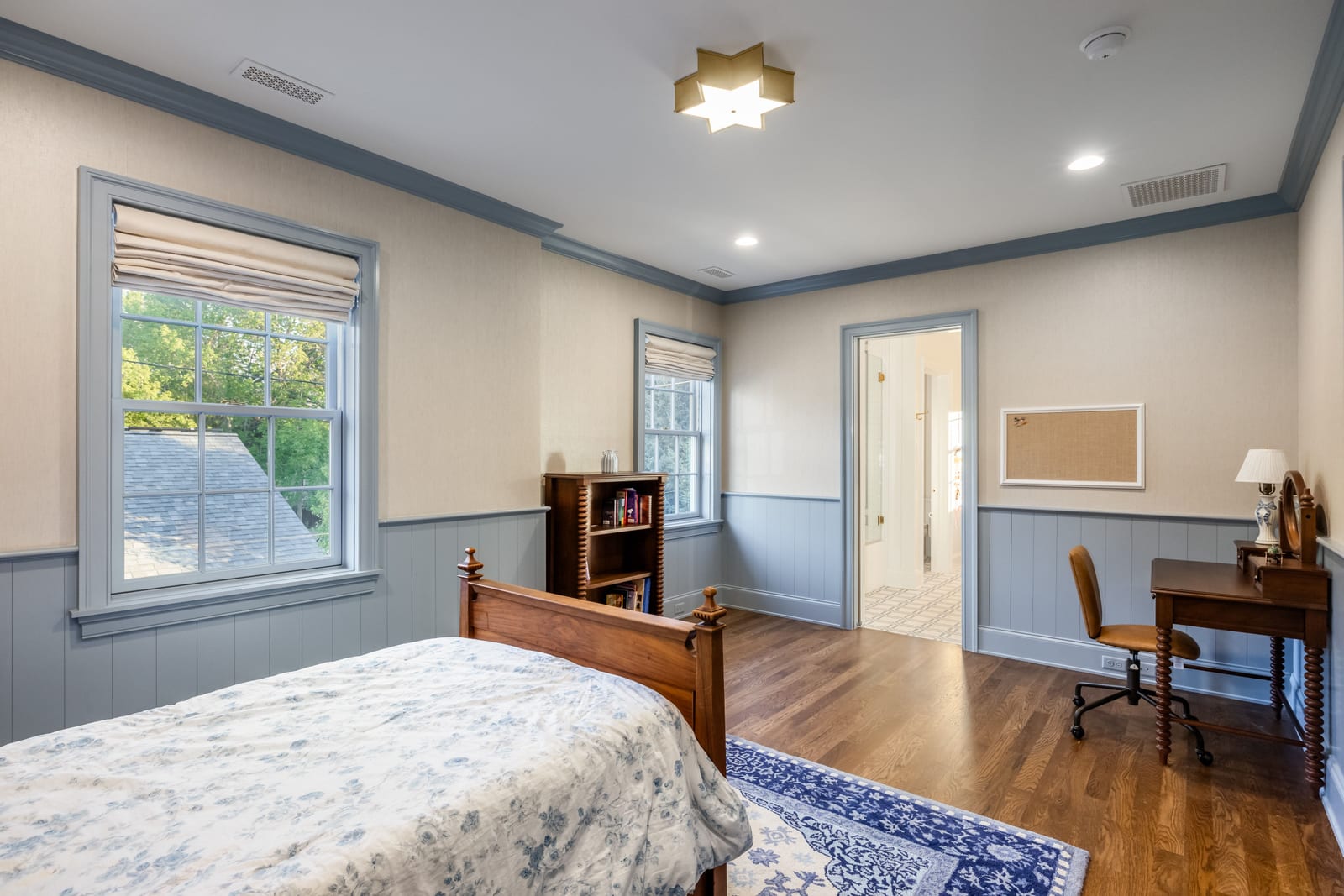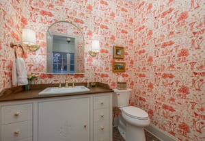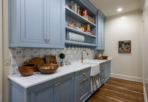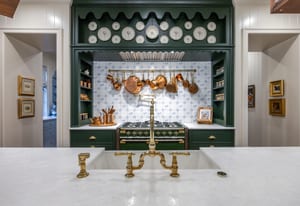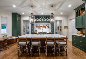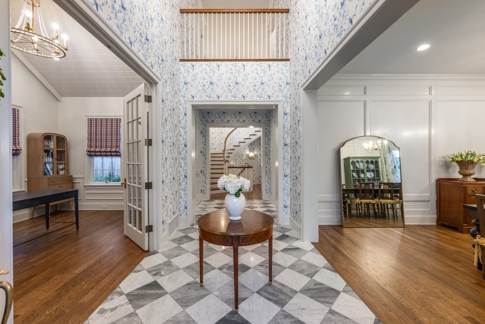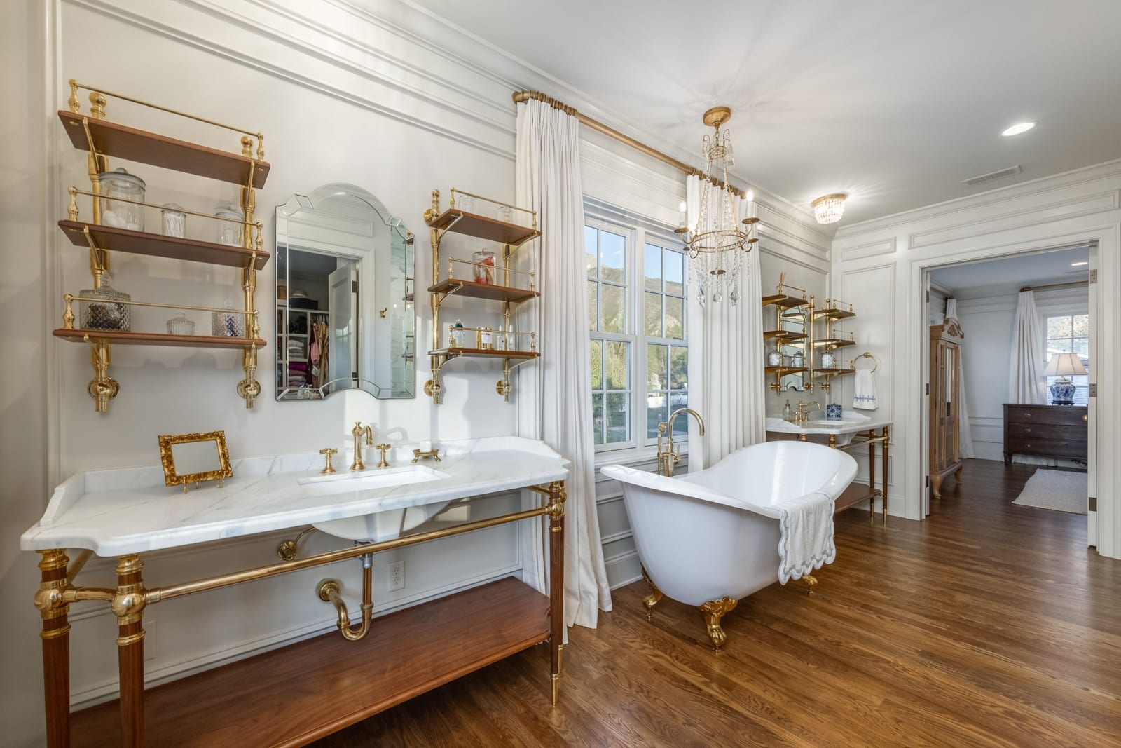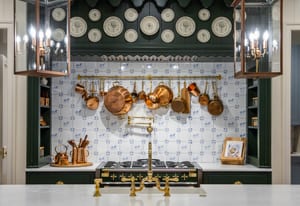 Inside, the home is warm, layered, and effortlessly functional. The kitchen serves as the heart of the home, with rich cabinetry, intricate millwork, warm wood tones, and a statement backsplash that anchors the space. The butler’s pantry offers both beauty and utility, ideal for hosting or keeping daily life beautifully organized. Throughout the home, custom built-ins add character and purpose.