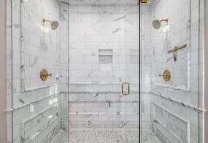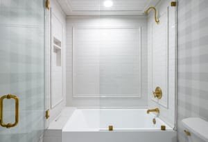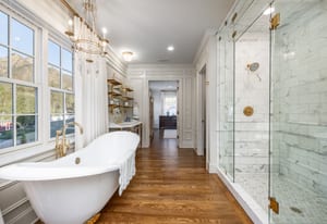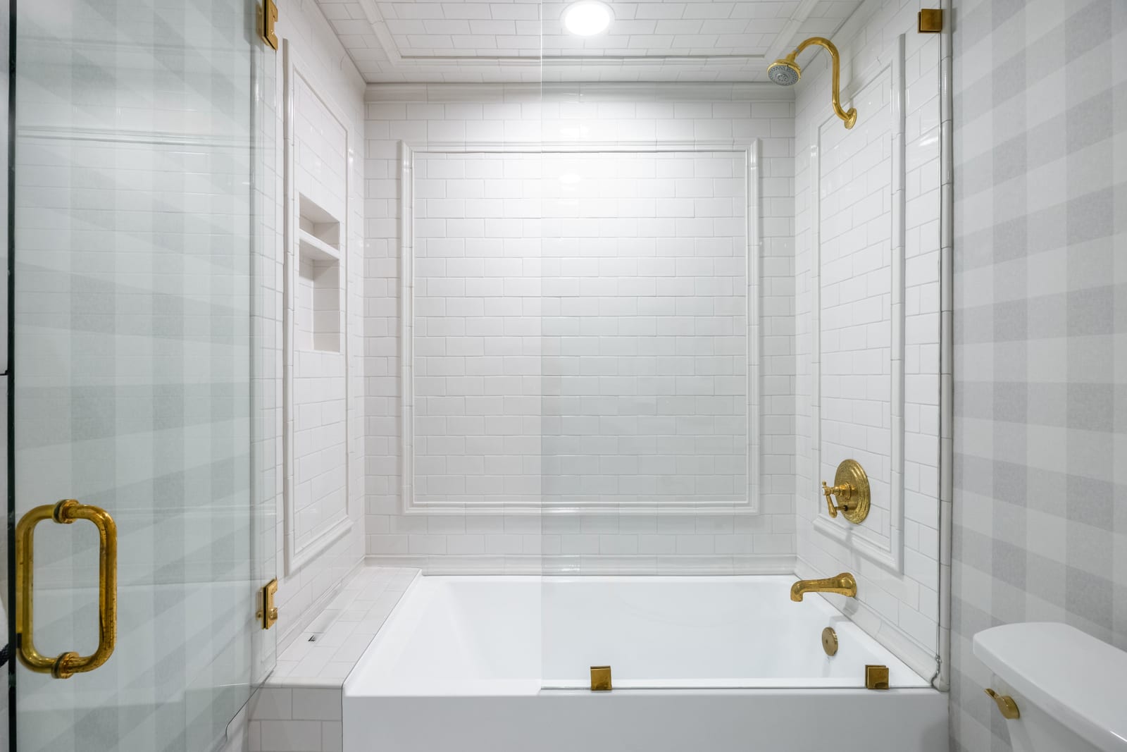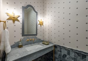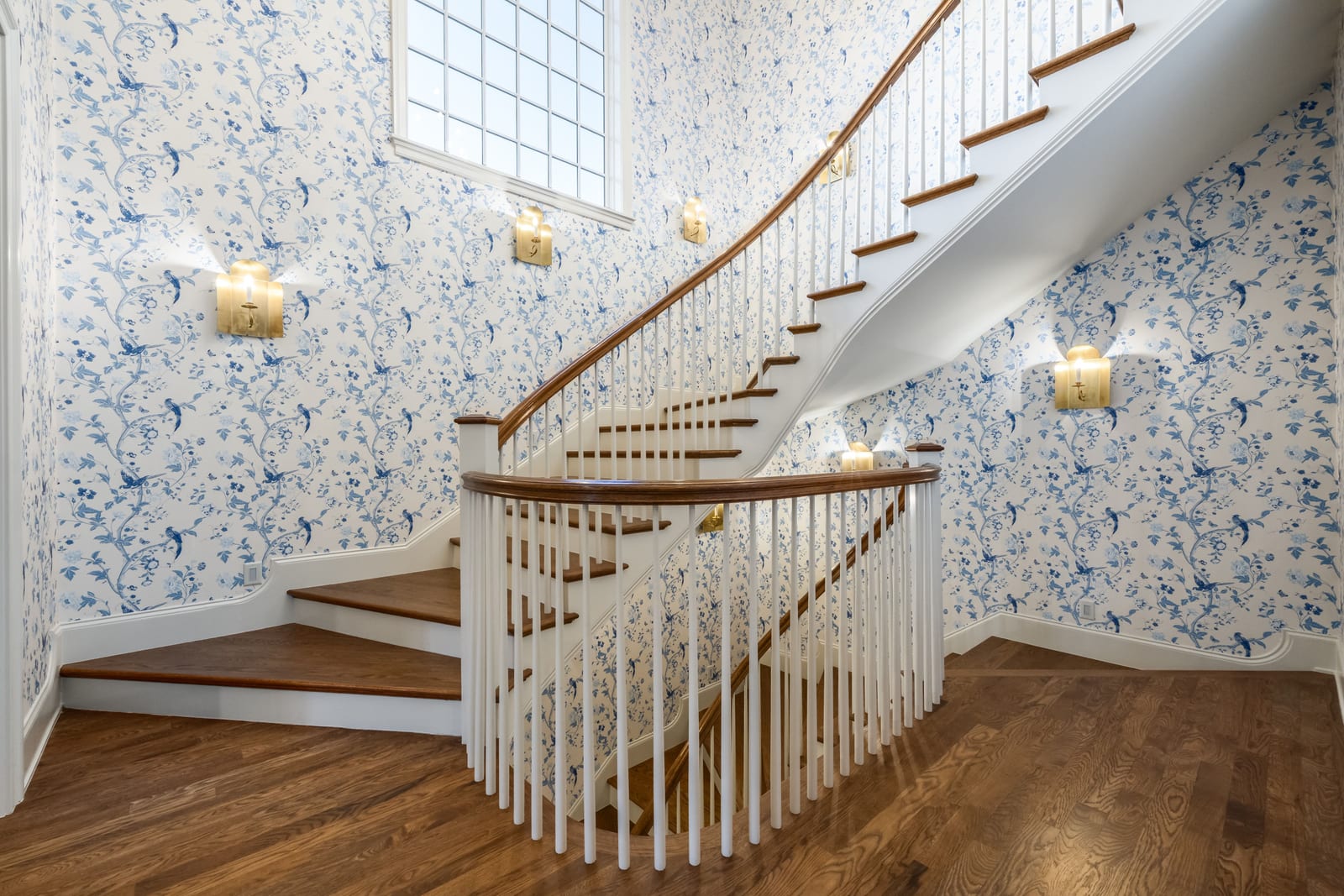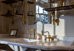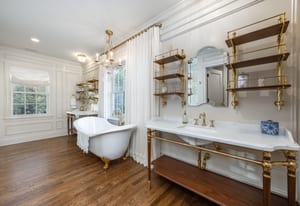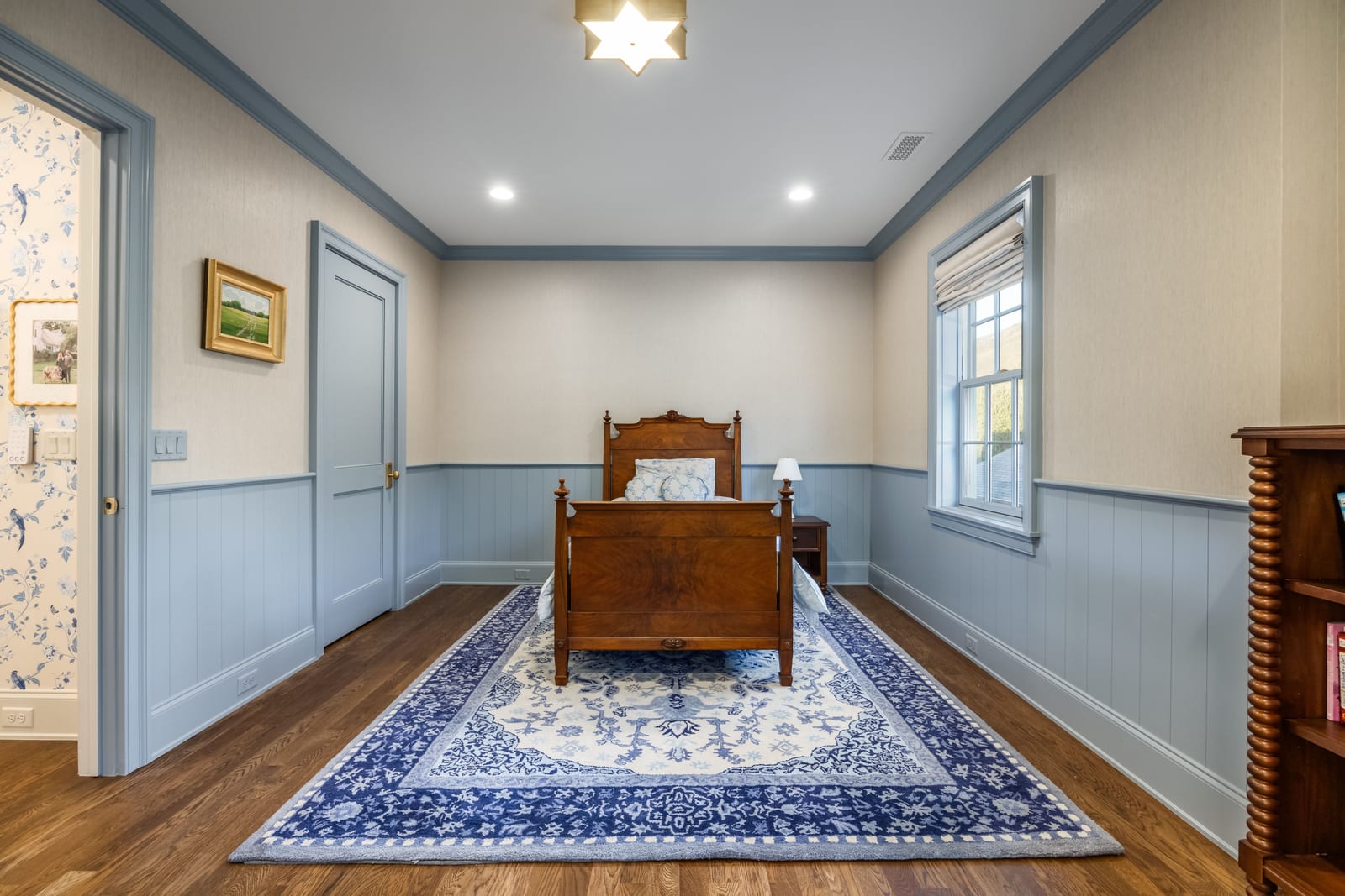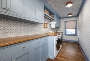 A soft, cohesive palette paired with timeless finishes—brass hardware, custom moldings, and curated lighting—creates a sense of quiet luxury and continuity from room to room.