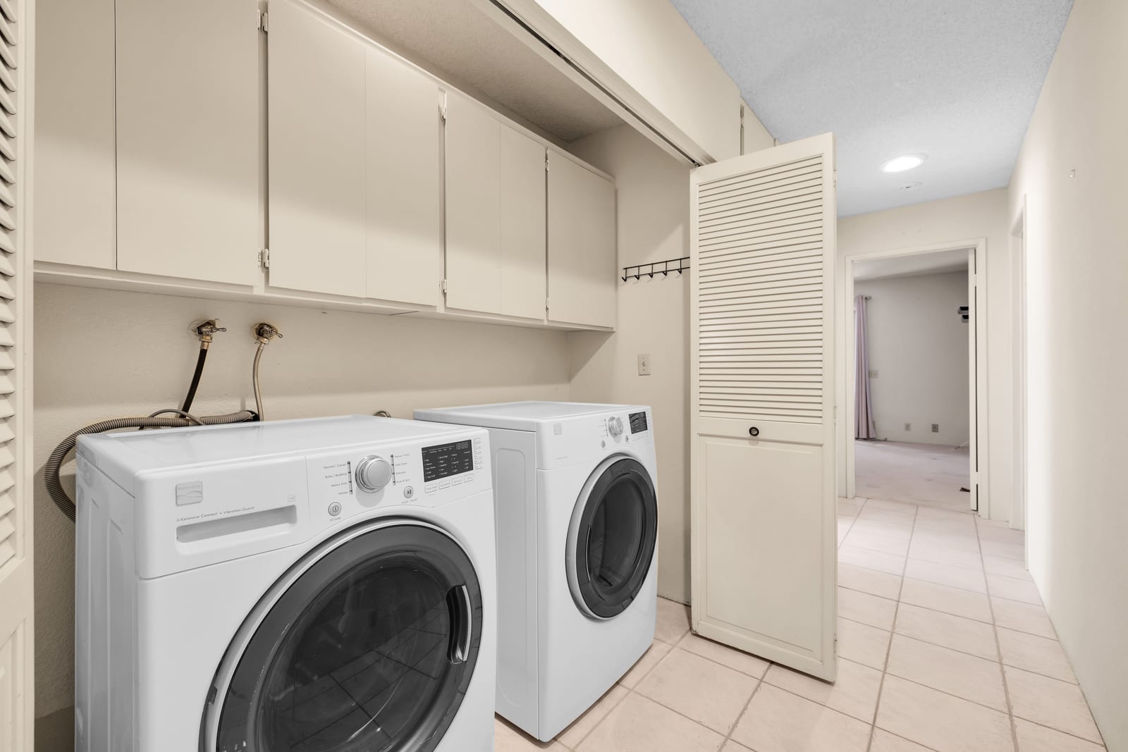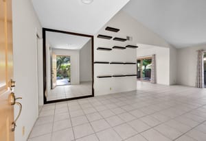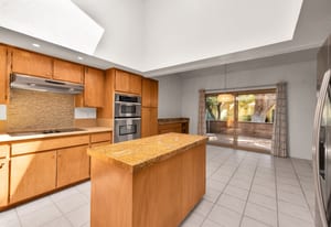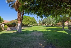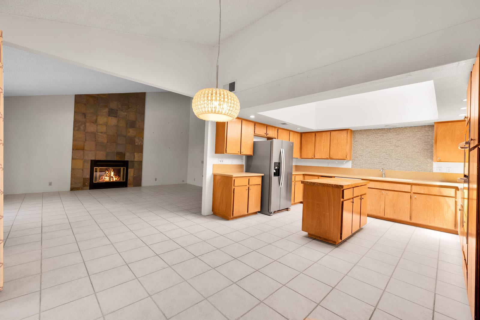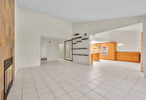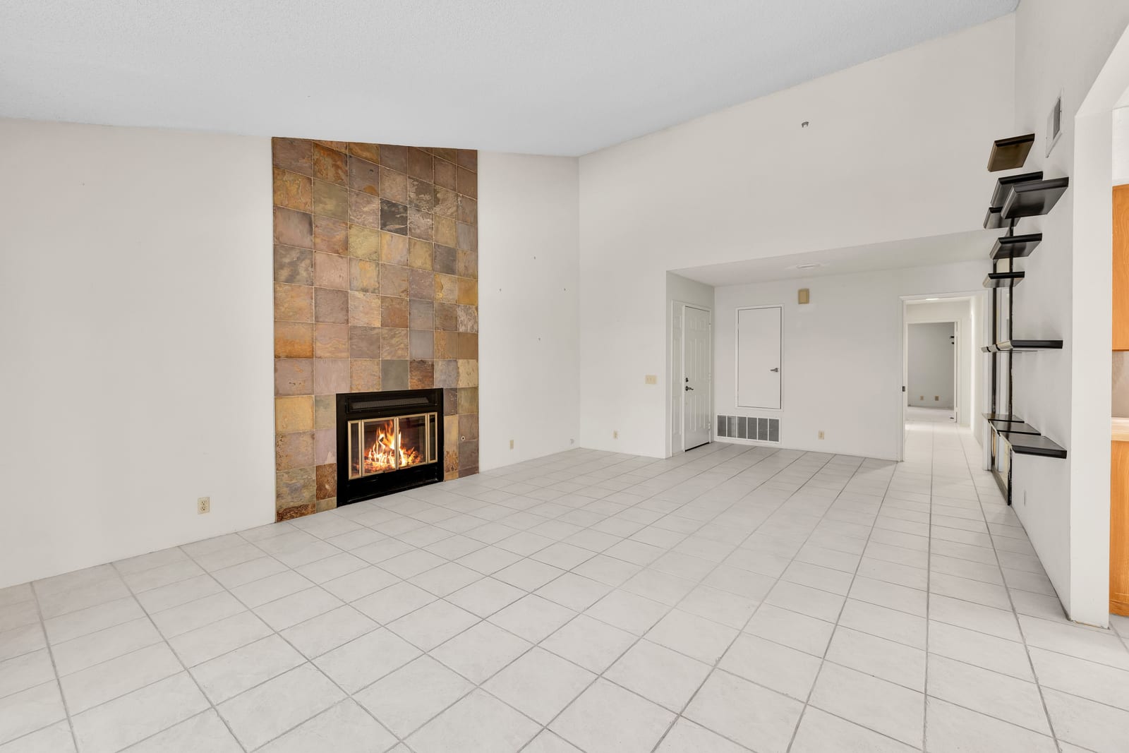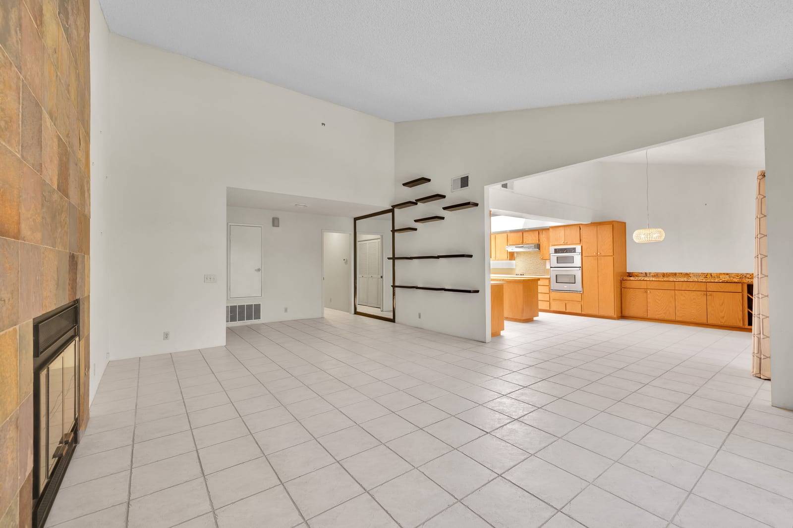 Welcome to Palm Springs Country Cluban iconic gated community designed by renowned mid-century architect William F. Cody where timeless design meets resort-style living. This 2-bedroom, 2-bath end-unit condo offers approximately 1,538 sq ft of interior space and is ideally located in Phase 5, one of the most desirable sections of the community. Being an end unit, it provides added privacy, abundant natural light, and convenient proximity to parking. The home features two spacious private patios, a rare and highly desirable setup. Enjoy stunning San Jacinto Mountain views from the west-facing patio, while the second patio opens to lush garden surroundings creating the perfect indoor-outdoor desert lifestyle. Inside, you will find soaring vaulted ceilings, a gas fireplace with tile surround, and an open-concept living space filled with natural light. The kitchen offers mid-century inspired design elements, including an island, wood cabinetry, stainless steel appliances, and a skylight that brightens the space throughout the day. Large sliding doors from both the living room and kitchen create seamless access to the patios. The primary suite is generously sized with direct patio access, mountain views, dual vanities, and a walk-in closet. A spacious guest bedroom also features patio access, complemented by a well-sized guest bath. Additional features include an in-unit washer and dryer with newer appliances. Palm Springs Country Club offers resort-style amenities, including beautifully landscaped grounds, a sparkling saltwater pool, spa, and included services such as cable, internet, water, and trash, all within a peaceful, well-maintained gated setting. This is a successor trust sale and presents a fantastic fixer opportunity to customize and add value within a historically significant mid-century community. With solid bones, a desirable layout, and an unbeatable setting, this unit is ready for your vision. Bring your ideas and make it your own, opportunities like this are rare, and the property is being sold as-is, where-is.