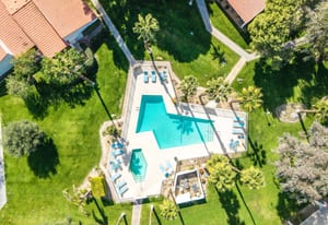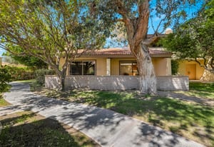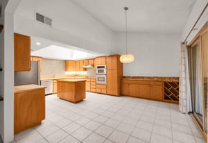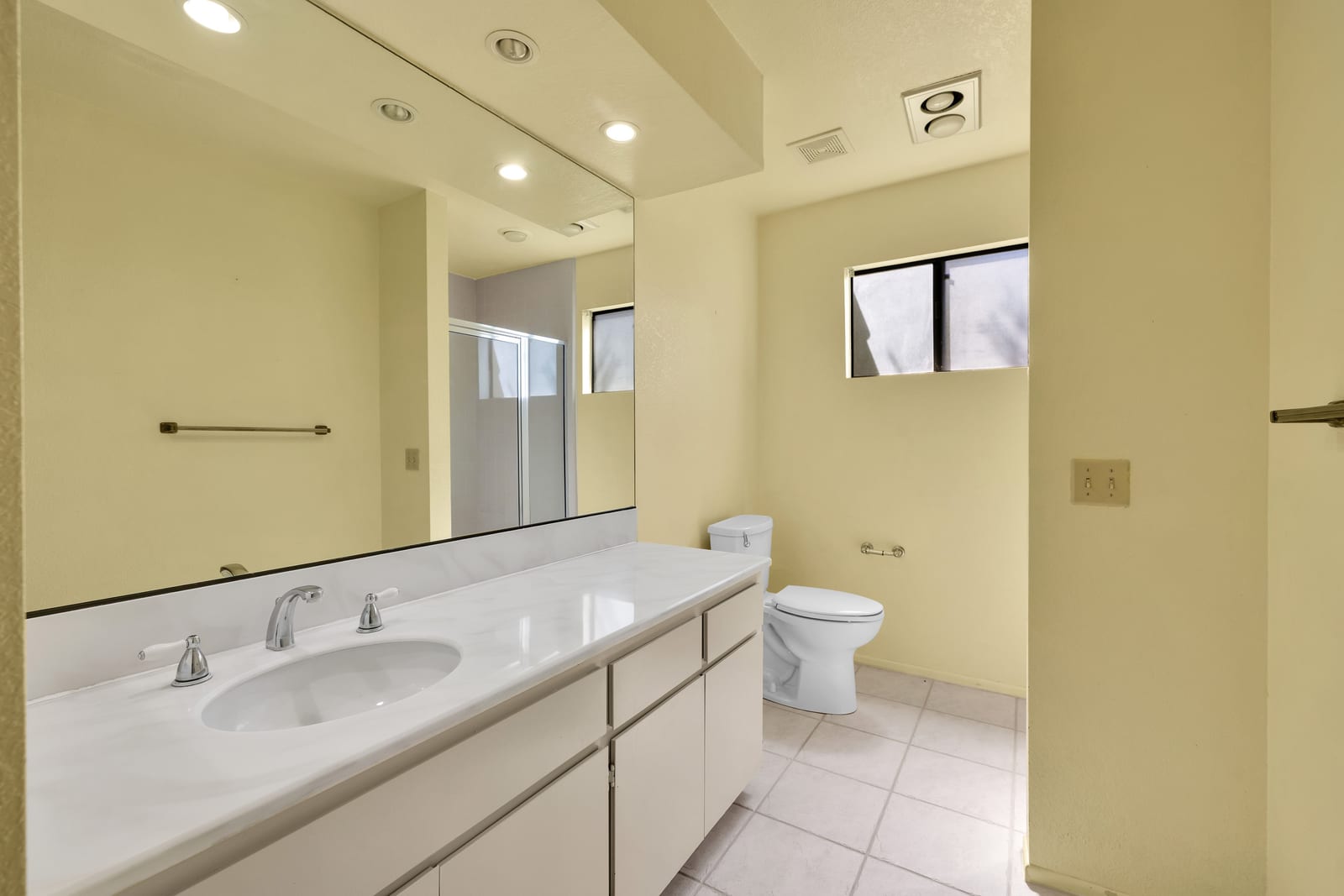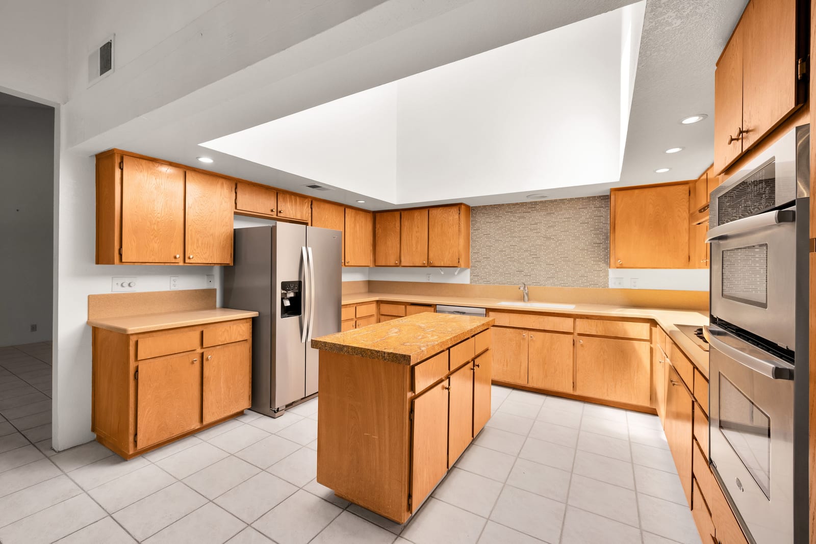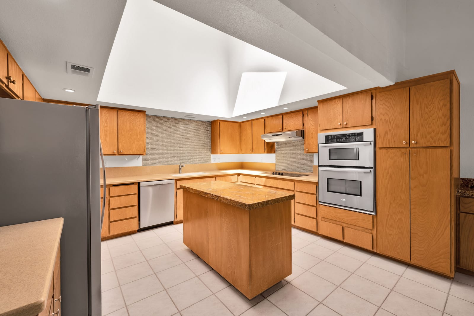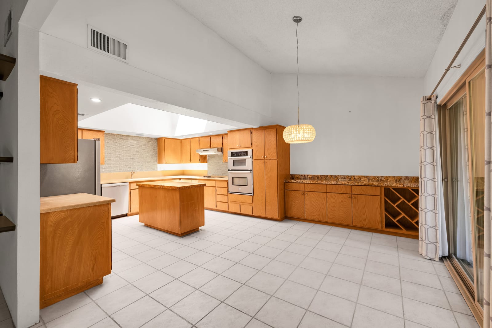Welcome to Palm Springs Country Cluban iconic gated community designed by renowned mid-century architect William F. Cody where timeless design meets resort-style living. This 2-bedroom, 2-bath end-unit condo offers approximately 1,538 sq ft of interior space and is ideally located in Phase 5, one of the most desirable sections of the community. Being an end unit, it provides added privacy, abundant natural light, and convenient proximity to parking. The home features two spacious private patios, a rare and highly desirable setup. Enjoy stunning San Jacinto Mountain views from the west-facing patio, while the second patio opens to lush garden surroundings creating the perfect indoor-outdoor desert lifestyle. Inside, you will find soaring vaulted ceilings, a gas fireplace with tile surround, and an open-concept living space filled with natural light. The kitchen offers mid-century inspired design elements, including an island, wood cabinetry, stainless steel appliances, and a skylight that brightens the space throughout the day. Large sliding doors from both the living room and kitchen create seamless access to the patios. The primary suite is generously sized with direct patio access, mountain views, dual vanities, and a walk-in closet. A spacious guest bedroom also features patio access, complemented by a well-sized guest bath. Additional features include an in-unit washer and dryer with newer appliances. Palm Springs Country Club offers resort-style amenities, including beautifully landscaped grounds, a sparkling saltwater pool, spa, and included services such as cable, internet, water, and trash, all within a peaceful, well-maintained gated setting. This is a successor trust sale and presents a fantastic fixer opportunity to customize and add value within a historically significant mid-century community. With solid bones, a desirable layout, and an unbeatable setting, this unit is ready for your vision. Bring your ideas and make it your own, opportunities like this are rare, and the property is being sold as-is, where-is.