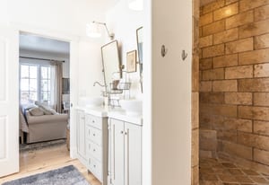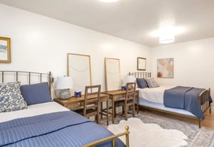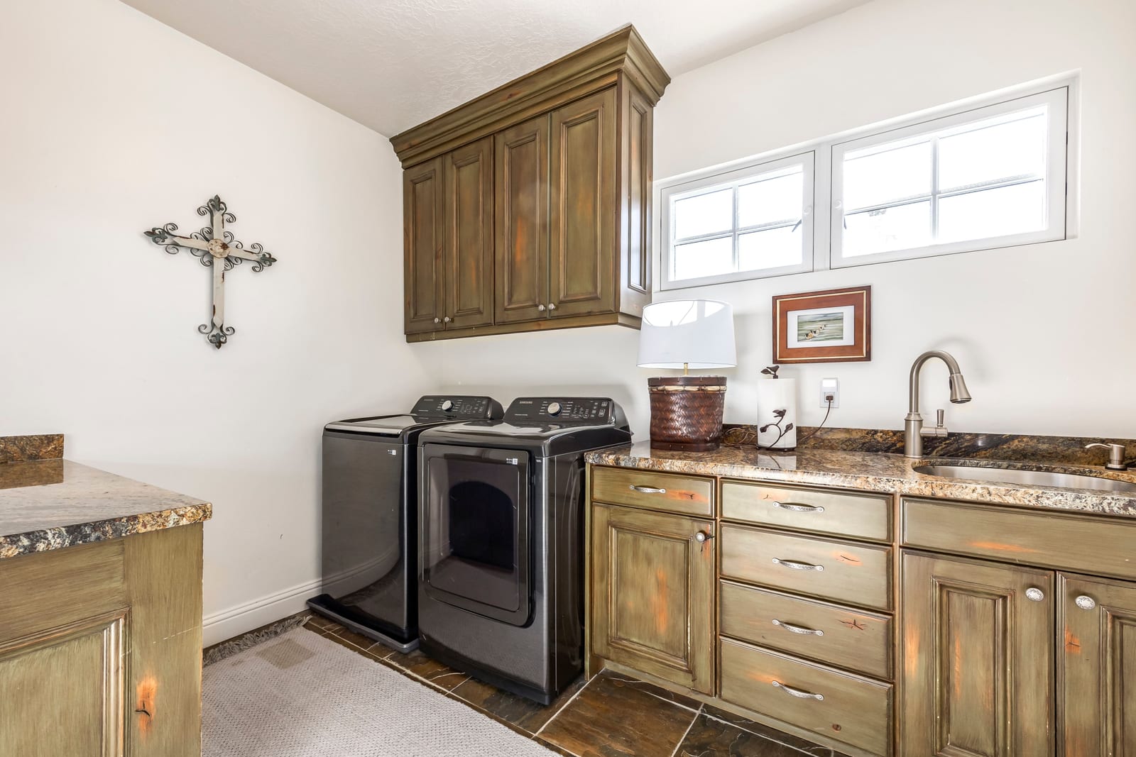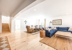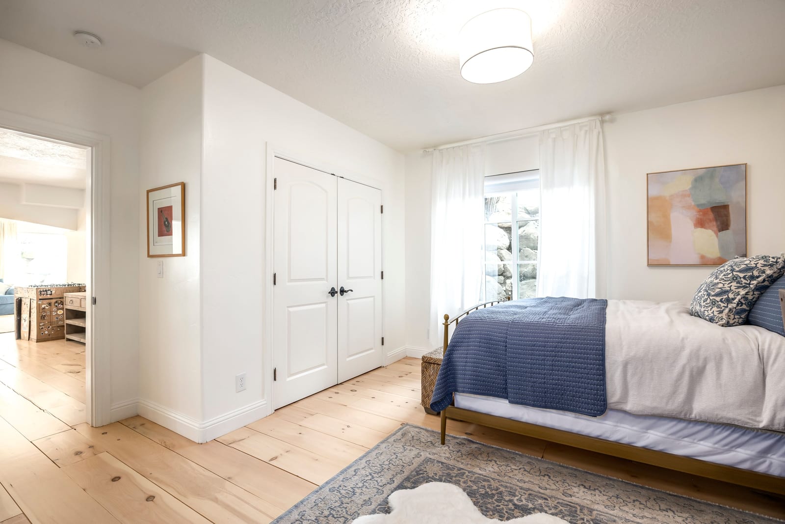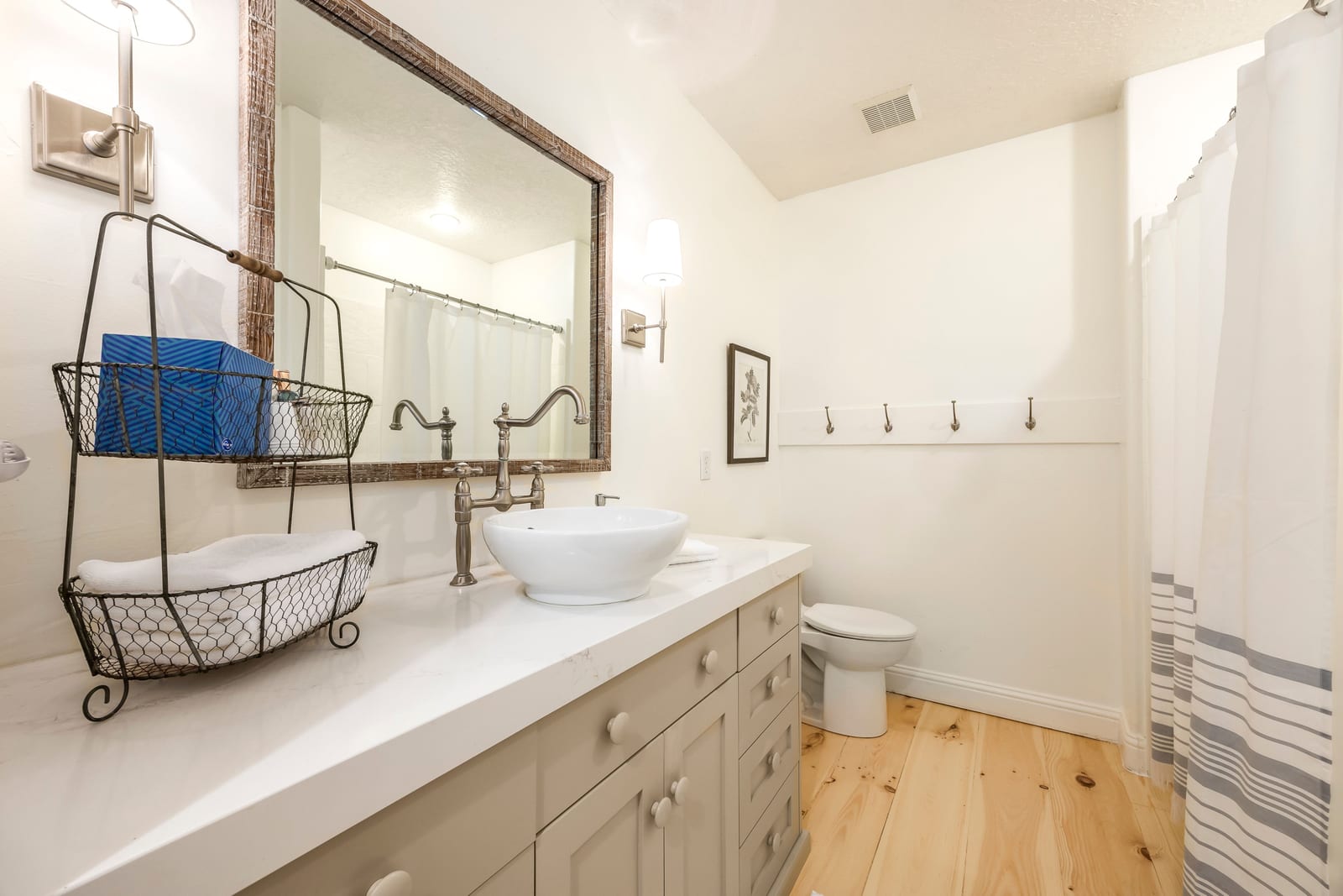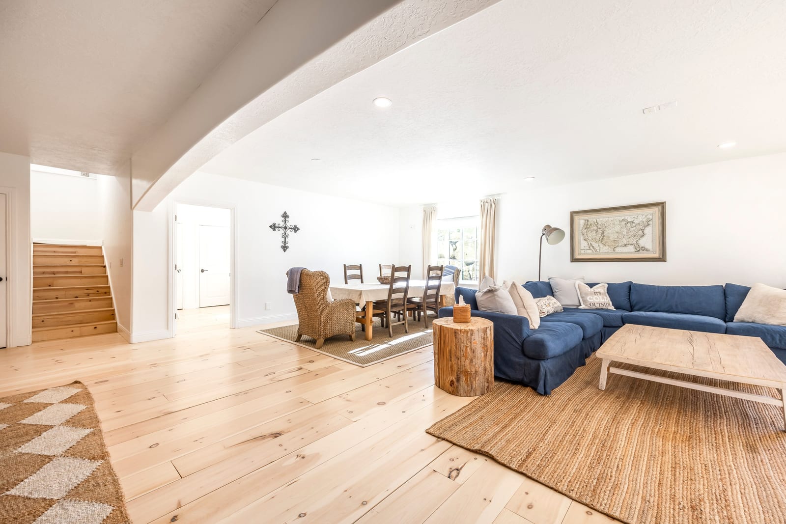 Open and spacious floor plan with vaulted ceilings and lots of windows for natural light. The family room and master bedroom open to the back deck with outdoor living amenities. The modern custom designed kitchen with upgraded appliances are perfect for private meals or entertaining guests. The first floor master suite has lots of closet space and an elegant bath. There is also a guest bedroom and bath on the main level. The lower level has radiant floor heat making it comfortable for kids and guests with a spacious family room, workout area, and 3 more bedrooms.