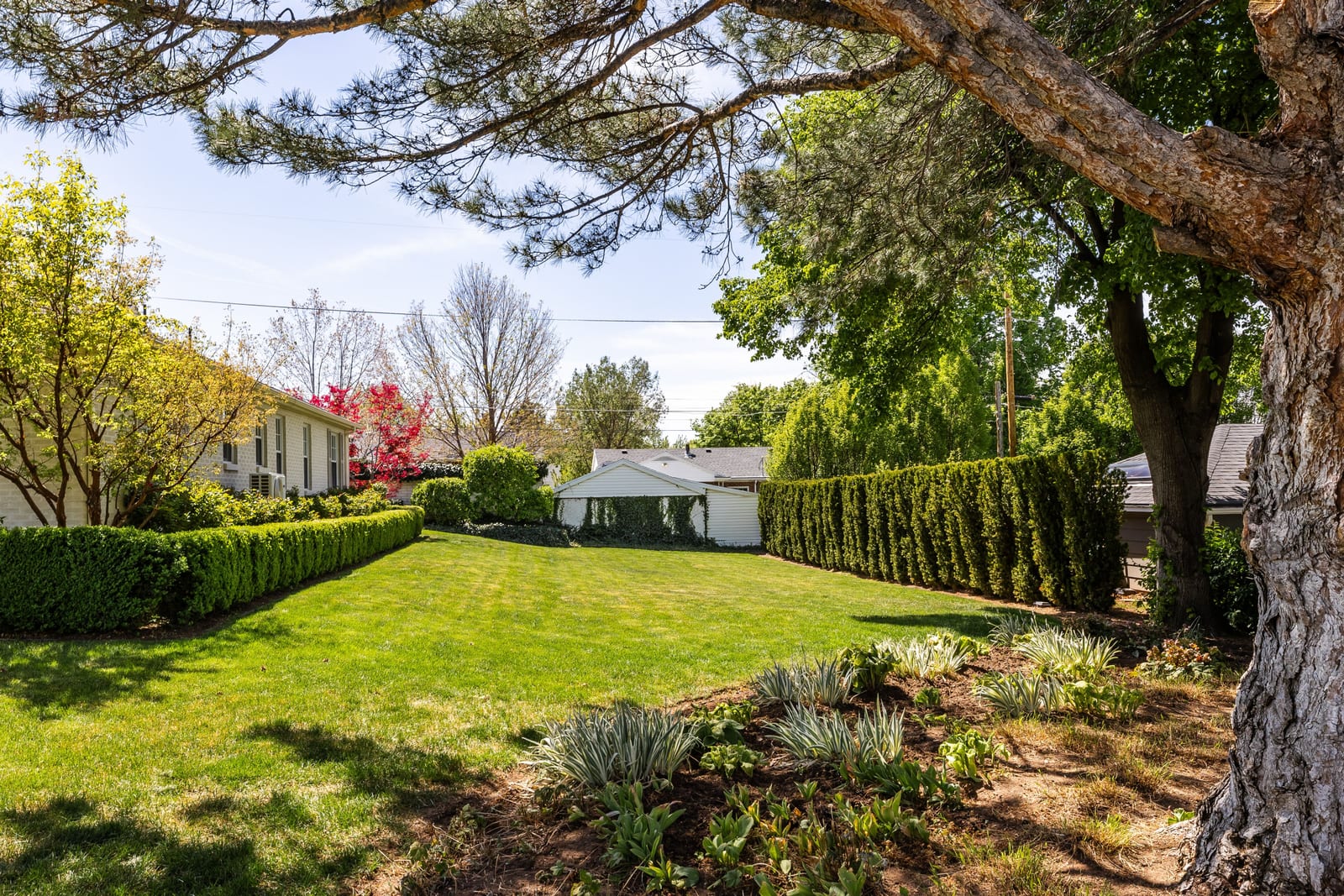 Located along a charming street in Salt Lake City’s Country Club neighborhood, this exceptional two-story residence sits on a beautifully sized .25-acre parcel, offering a thoughtful blend of space, character and modern updates. Upon entry, the home's interior reveals a warm and inviting atmosphere. The front sitting room is filled with natural light and features large windows, custom built-in cabinetry and a gas fireplace. The main level flows seamlessly into a kitchen dining area and a newly updated kitchen appointed with custom cherry cabinetry and granite countertops. Just beyond, a formal dining and sitting area with a second gas fireplace opens to a covered rear patio, creating an ideal setting for both everyday living and entertaining. This level also includes two bedrooms, one with an ensuite bath, an additional full bathroom, along with a dedicated office featuring custom desk and shelving.