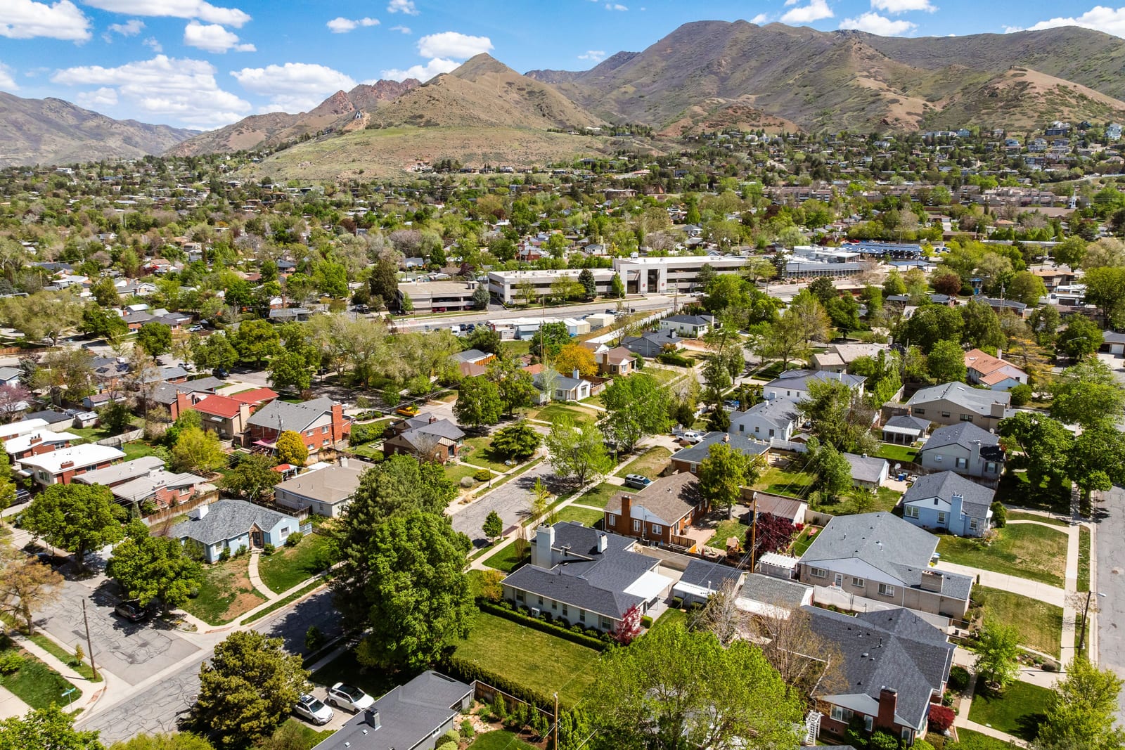 Upstairs, the primary suite offers a private retreat complete with a sitting area and fireplace, a three-quarter bath with double vanity, and a spacious walk-in closet. The lower level expands the home’s versatility with a large family room featuring built-in cabinetry and bar, an additional family room, laundry area, two bedrooms, and a three-quarter bathroom. Outdoors, the covered patio and expansive side yard provide ample space for recreation, entertaining or quiet relaxation. Located in a highly walkable neighborhood with convenient freeway access, this home presents a rare opportunity to enjoy both comfort and connectivity in one of Salt Lake City’s most established settings.