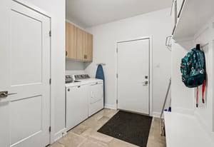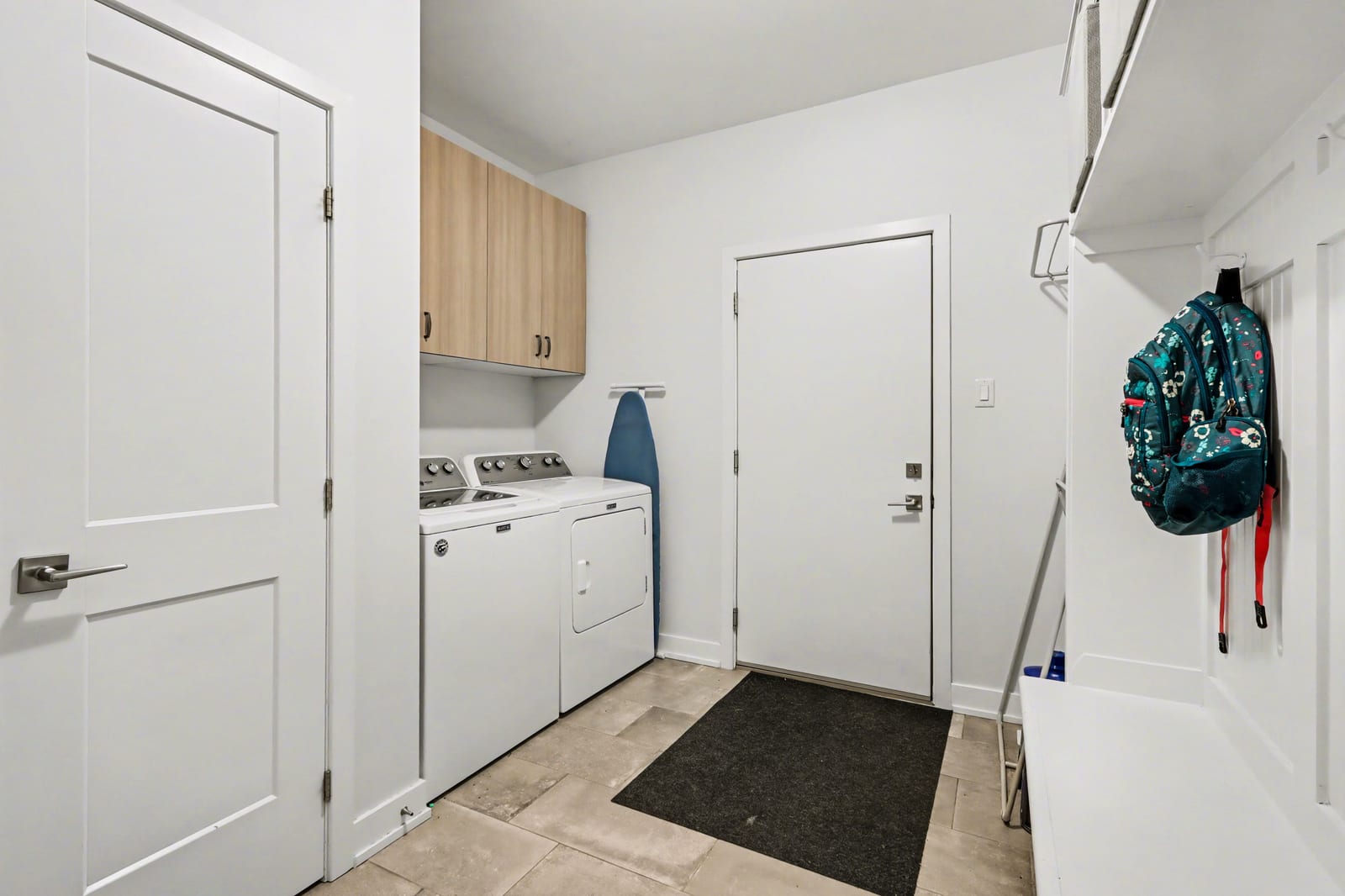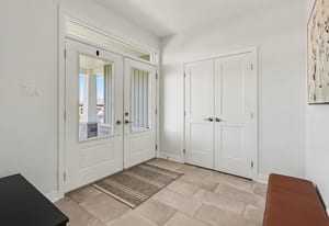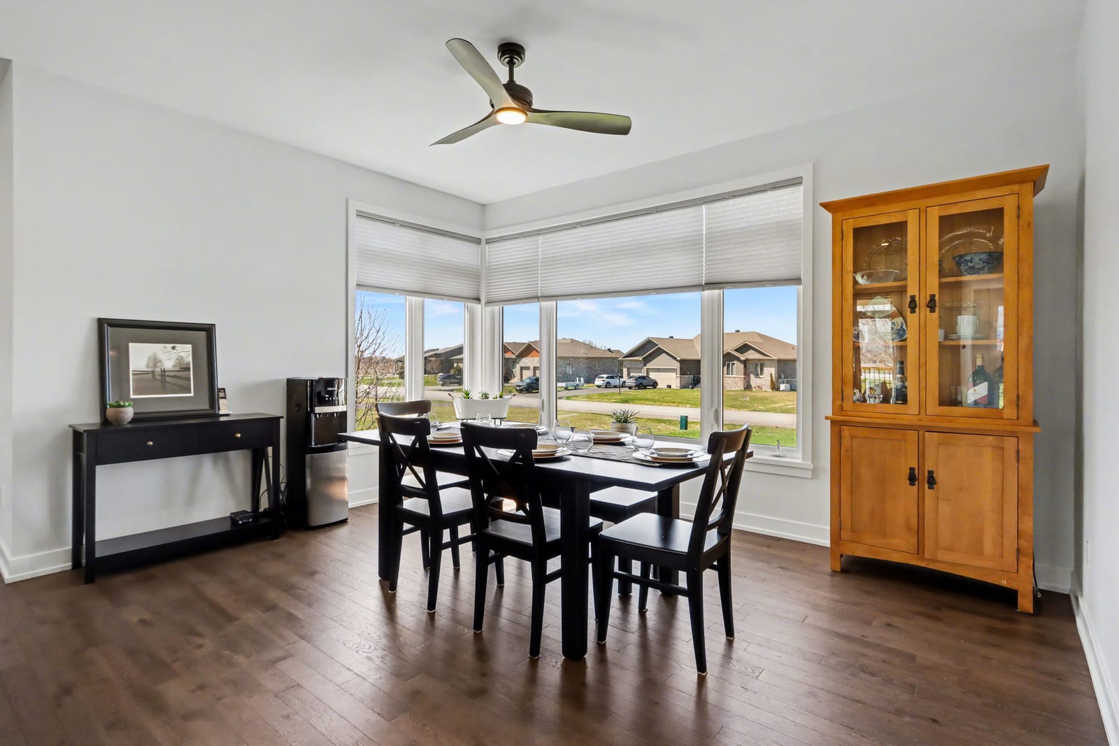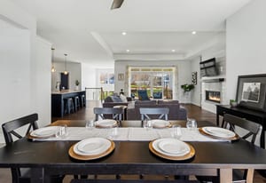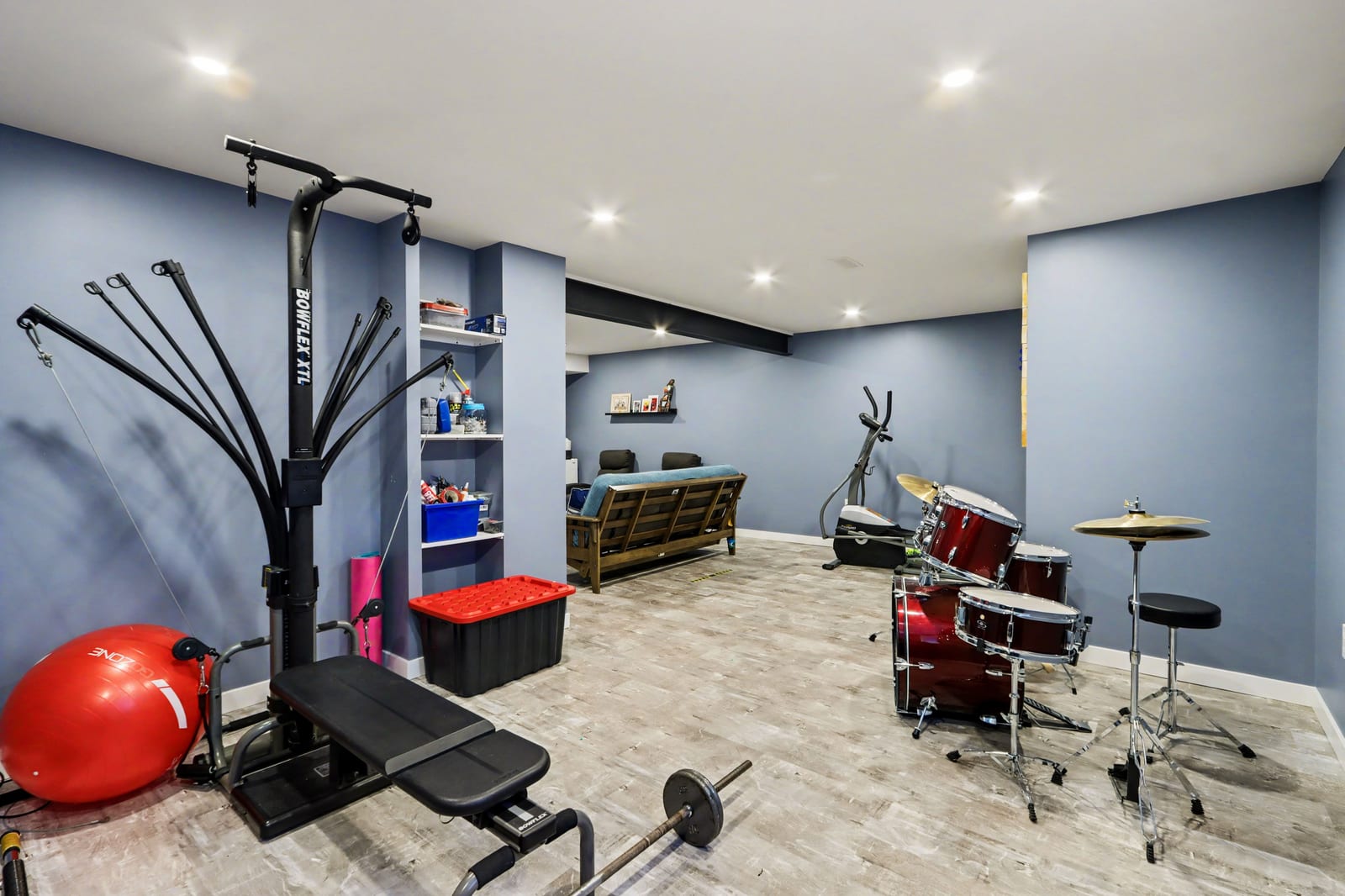 Enjoy elegant hardwood flooring throughout the main floor and impressive 9-foot smooth ceilings. The chef-inspired kitchen is an entertainer’s dream, featuring classic white cabinetry with navy lower cabinets, an oversized island, quartz countertops, tile backsplash, stainless steel appliances, and a gas stove. A walk-in pantry adds extra convenience, while the open-concept layout seamlessly connects the kitchen to the dining and living areas.