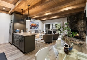 This beautifully remodeled low-elevation condo offers an "above and beyond" transformation in a location that puts the best of Incline Village at your fingertips. Positioned for easy access to town, beaches, and IVGID amenities, this 3-bedroom retreat has been meticulously updated with a focus on quality and comfort. The open living area oriented to the south features high beamed ceilings and stone fireplace, creating an inviting space that flows naturally into the expanded kitchen. New Milgard windows and glass sliders bring in natural light and lead out to an expansive paver patio, complete with a gas fire pit and hot tub. The primary suite is a true retreat with an enlarged bath and ...