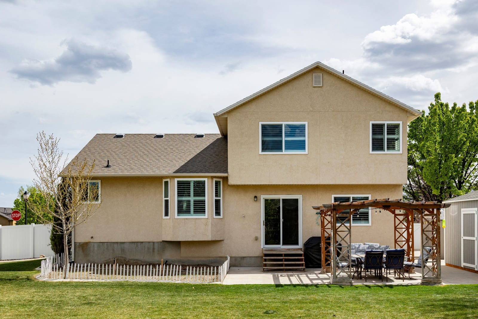 Newly remodeled, better-than-new 2-Story home in the heart of Herriman, offering the perfect blend of comfort, space, and modern living. Situated in a desirable neighborhood with no HOA, this property features an open and inviting floor plan filled with natural light and thoughtful upgrades throughout. The spacious kitchen is designed for both everyday living and entertaining, complete with ample cabinetry, generous counter space, and a seamless flow into the dining and living areas. The main living space provides a warm and welcoming atmosphere, ideal for gathering with family and friends. Retreat to the well-appointed primary suite, featuring a luxurious en-suite bathroom with a Euro glass shower and a freestanding tub, along with a large walk-in closet. Additional bedrooms offer flexibility for family, guests, or a home office setup. A dedicated home gym adds even more functionality, providing the perfect space to stay active without leaving home. Step outside to enjoy a large, fully fenced backyard complete with RV parking, two sheds, and a gazebo-perfect for relaxing, entertaining, or creating your own outdoor oasis. Whether it's summer barbecues or quiet evenings under the stars, this yard offers privacy and plenty of space to enjoy. Located with a park directly across the street and close to schools, shopping, and outdoor recreation, this home combines suburban tranquility with everyday convenience. Don't miss your opportunity to make this exceptional, better-than-new property your next home.