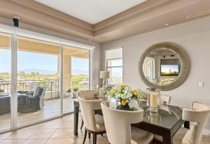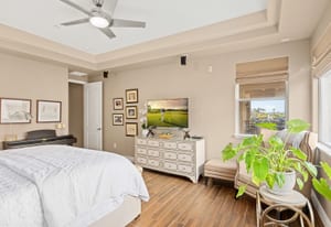 Wake each morning to serene golf course views from your expansive covered patio—an inviting setting for sunrise coffee or evening cocktails as the sun melts behind the mountains. This beautifully refined 3-BR residence spans 2,042 s/ft and offers 2 full baths and 1 half bath, thoughtfully designed to live like a single-story. Privately positioned on the 2nd floor, the home features direct elevator access that opens into the residence, creating a sense of arrival and exclusivity. The open-concept living space is both elegant and inviting, centered around a fireplace that adds warmth and ambiance. Generous living areas, well-proportioned bedrooms, and seamless indoor-outdoor flow make this home...