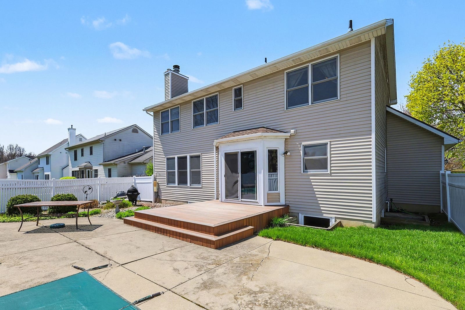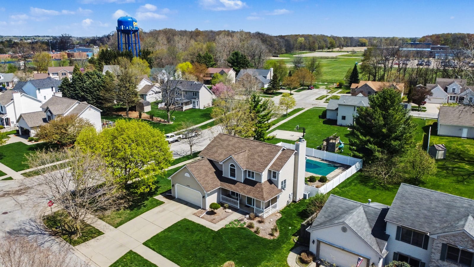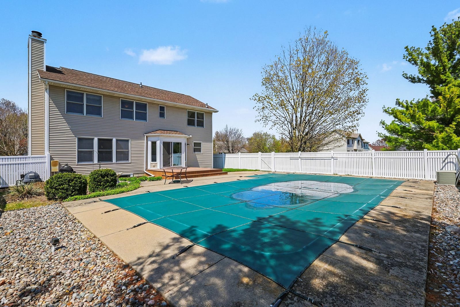 Welcome to this 4-bedroom, 2.5-bath home in DeWitt offering a functional layout and well-designed living spaces. A two-story foyer creates an open and inviting entry. The main level features a formal dining room and a spacious living room with a gas fireplace and crown molding. The open-concept design connects the living room to the informal dining area and kitchen, providing a versatile layout. The kitchen includes oak cabinetry, a center island, and pantry for additional storage. A half bath and main floor laundry room add convenience. Upstairs, you'll find four bedrooms and two full bathrooms. The primary bedroom features cathedral ceilings, a walk-in closet, and a private full bathroom. The finished lower level offers additional space with a recreation room, office, storage areas, and a separate mechanical room. The backyard is fully fenced and includes an in-ground pool, providing outdoor space for a variety of uses.