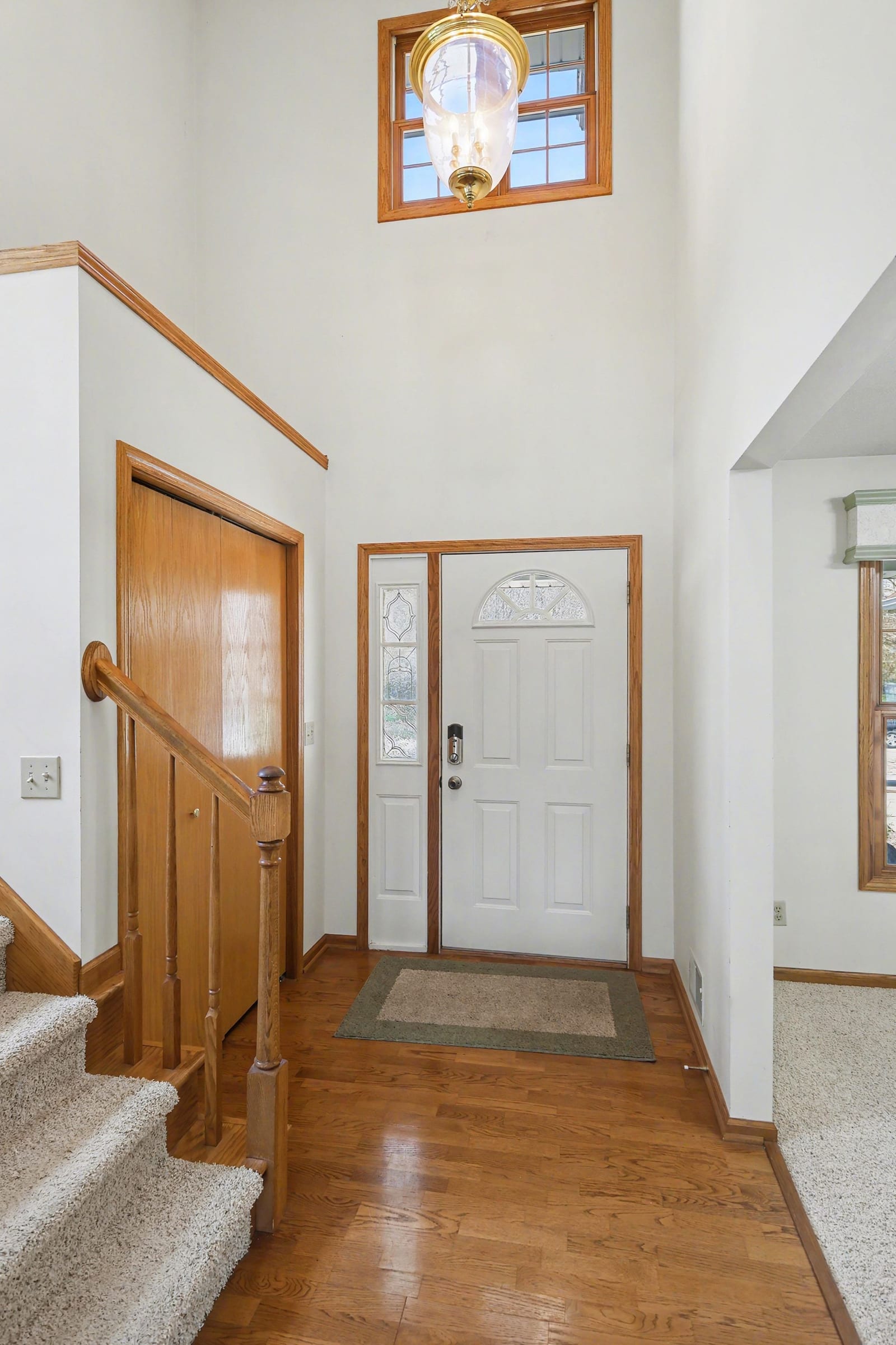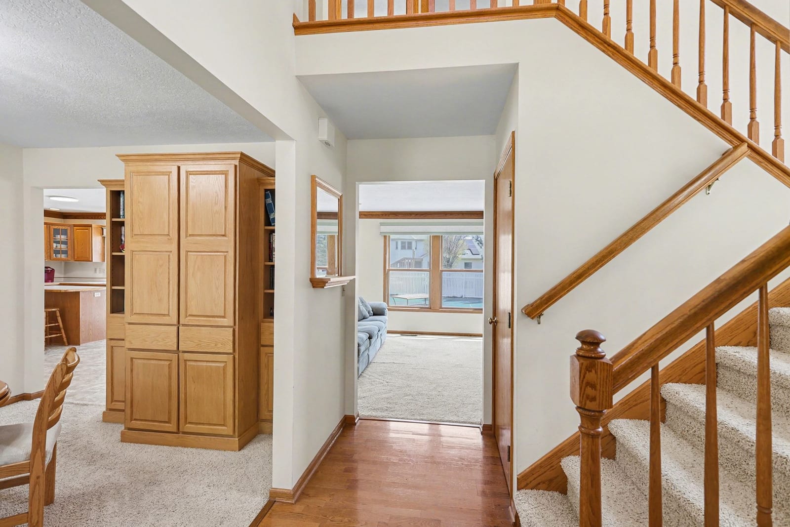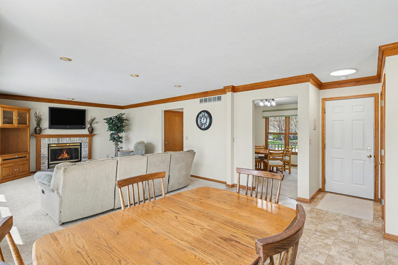 Welcome to this 4-bedroom, 2.5-bath home in DeWitt offering a functional layout and well-designed living spaces. A two-story foyer creates an open and inviting entry. The main level features a formal dining room and a spacious living room with a gas fireplace and crown molding. The open-concept design connects the living room to the informal dining area and kitchen, providing a versatile layout. The kitchen includes oak cabinetry, a center island, and pantry for additional storage. A half bath and main floor laundry room add convenience. Upstairs, you'll find four bedrooms and two full bathrooms. The primary bedroom features cathedral ceilings, a walk-in closet, and a private full bathroom. The finished lower level offers additional space with a recreation room, office, storage areas, and a separate mechanical room. The backyard is fully fenced and includes an in-ground pool, providing outdoor space for a variety of uses.