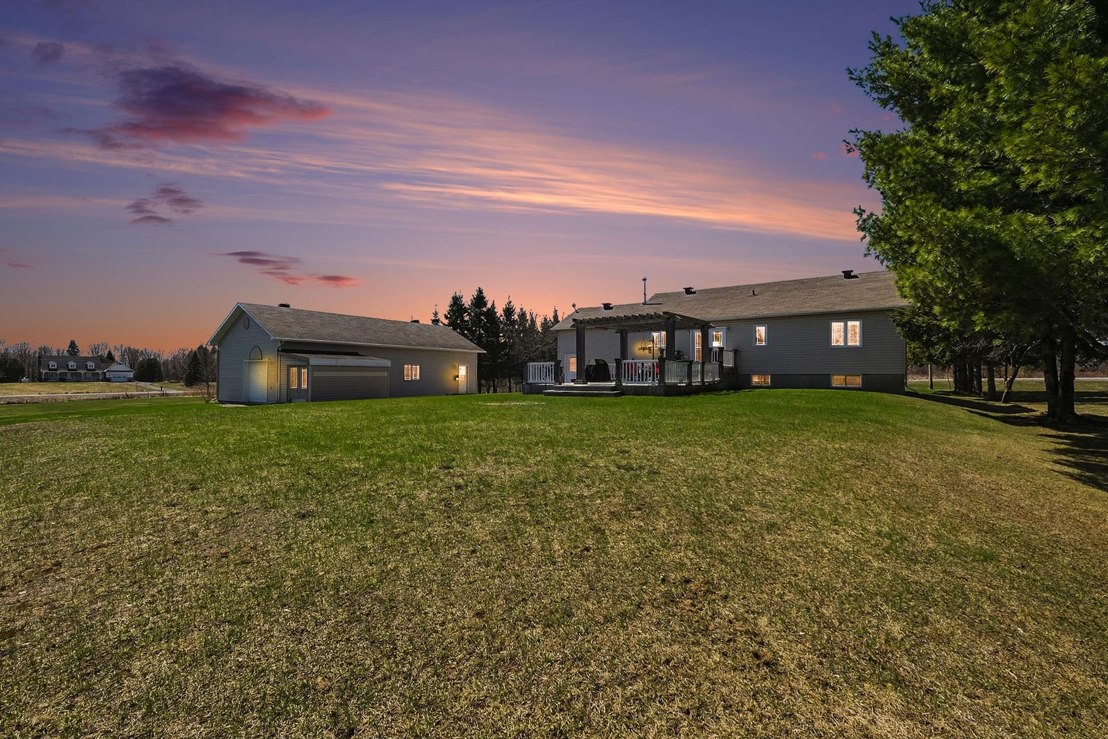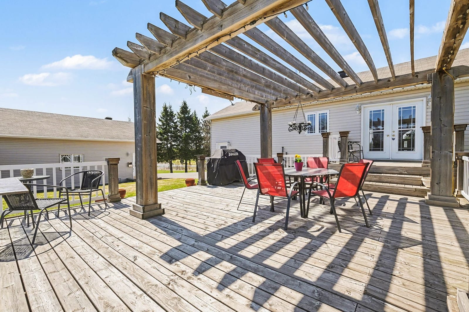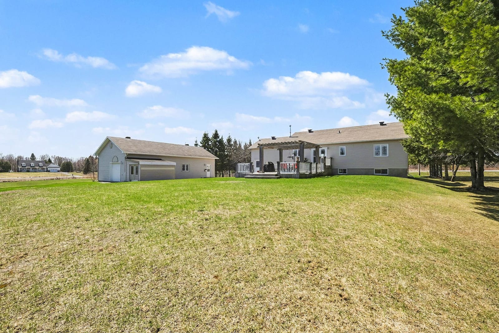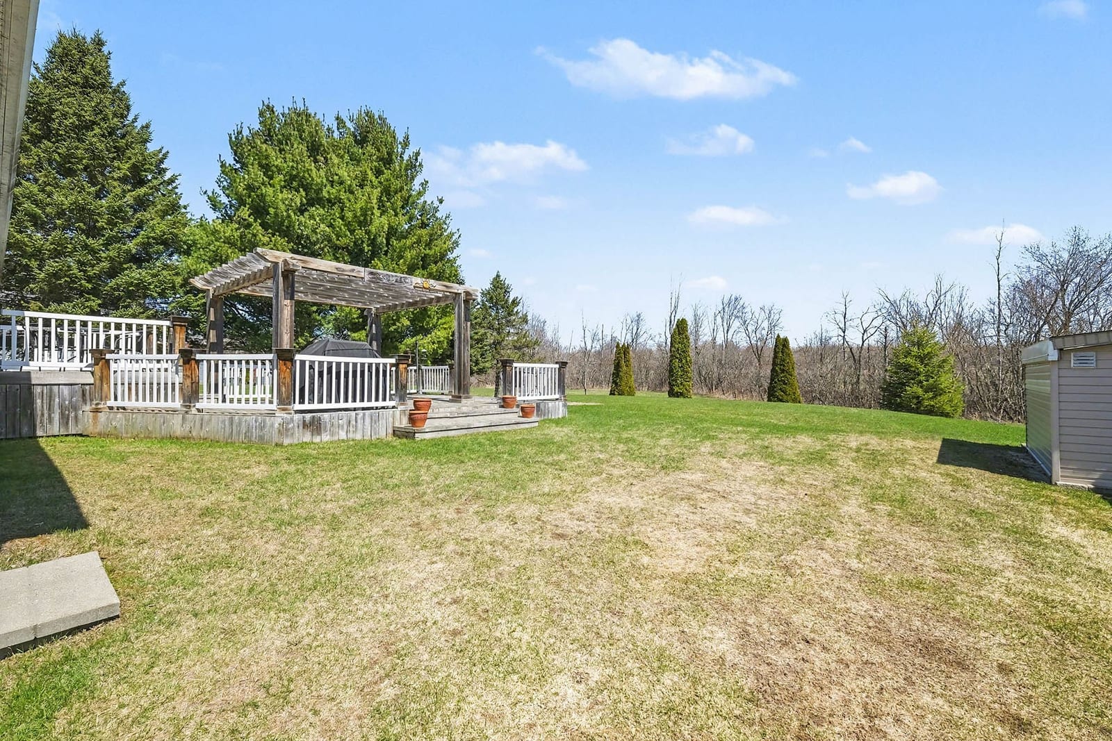 The outdoor setting is equally appealing, with expansive lawn areas, mature trees, open views, and plenty of room to enjoy the peaceful surroundings. The large rear deck offers an inviting space for outdoor dining, relaxing, and entertaining, complete with a pergola that adds character and shade. The backyard provides excellent usable space for children, pets, gardens, or future outdoor plans, while still maintaining a quiet country feel.