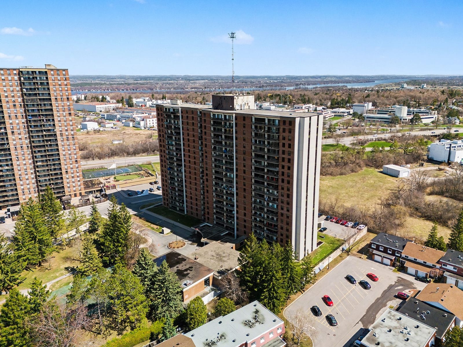 MILLION DOLLAR VIEWS OF THE CITY! Welcome to 665 Bathgate Drive, unit 1801 in the sought after Las Brisas building in Carson Meadows, walking distance to schools, parks, transit, shopping, restatuants, Montfort Hospital, CMHC, NRC, CSIS, CSEC, Blair Road LRT, Gloucester Center and much more, its simply a great location. This west facing apartment boasts UNOBSTRUCTED views of the Gatineau Hills, Parliament Hill and Downtown Ottawa as far as the eye can see...Canada Day fireworks, stunning sunsets and peaceful mountains! This condo is located right in front of the quiet elevator (no need to lug groceries down a long hallway) and offers 2 bedrooms, 1 bathroom, an open concept living room/dining room, galley style kitchen, a walk-in closet off the Primary, 5-piece main bathroom and a 20 foot balcony which is ideal for morning coffee or an after dinner glass of wine. Condo fees are $740/month and include heat, water, underground parking, access to the numerous building amenities - indoor pool, sauna, exercise room, library, party room, bike storage, storage locker and tennis courts - and all common areas. Hydro is approximately $55/month. Parking spot #247, Locker #1801 (storage area 7). Well maintained, secured building with many long-term owners.