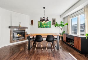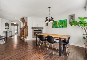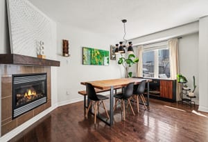 The main floor is bright, functional, and easy to enjoy, featuring a welcoming living space centered around a cozy fireplace, perfect for relaxing or gathering with family and friends. The kitchen offers ample counter space and a breakfast bar, making it ideal for both everyday living and entertaining. The layout is also flexible, allowing the living and dining areas to be easily interchanged to suit your lifestyle, as the current owners have done.